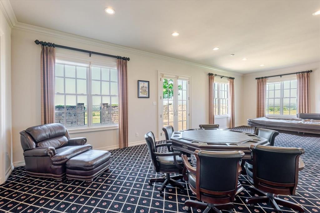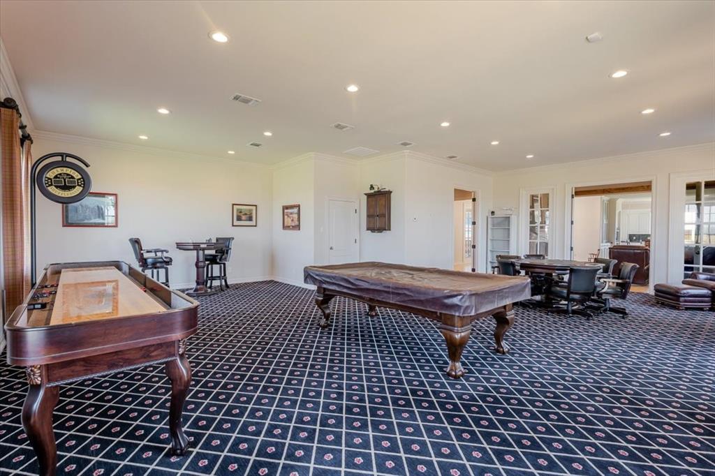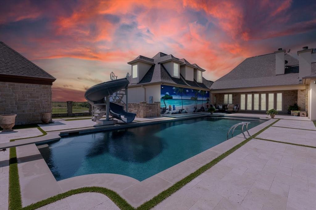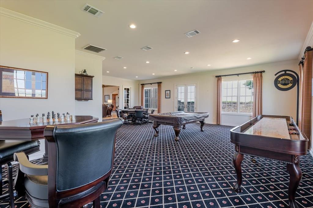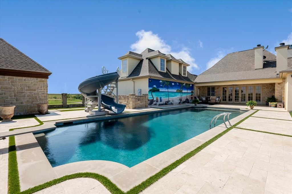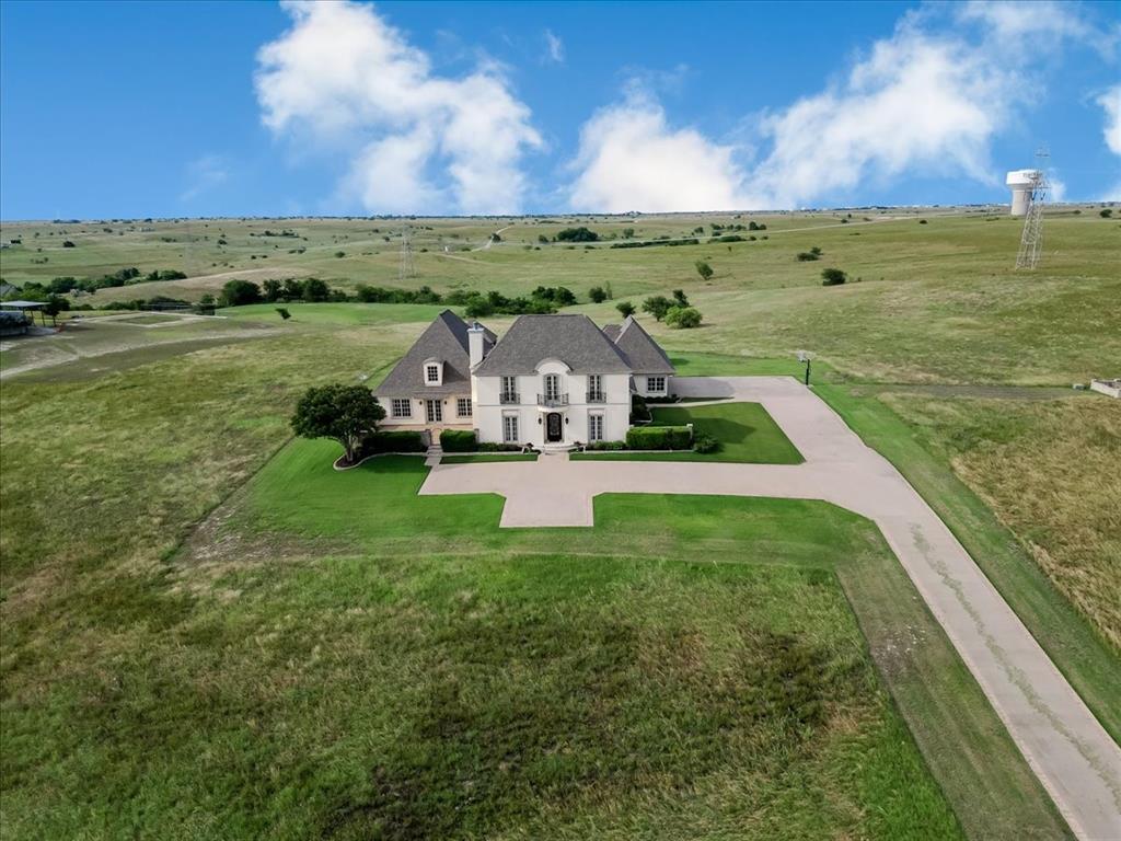 Perched on 10 pristine acres with panoramic 360° views, this breathtaking estate is the pinnacle of luxury living in the Texas countryside. From the moment you arrive, you'll be captivated by the unmatched scenery, refined elegance, and seamless indoor-outdoor flow. Step through the dramatic entryway, where a barrel roll ceiling adorned with mosaic tile sets the tone for the artistry and craftsmanship found throughout the home. Inside, the open-concept gourmet kitchen—complete with top-tier appliances—flows effortlessly into a cozy, inviting den, perfect for relaxed evenings or entertaining guests. The formal dining room, graced with an exquisite chandelier, elevates every meal, while the butler’s pantry offers a seamless connection from kitchen to dining—blending function with style. A spacious game room with hand-selected Persian carpeting invites hours of enjoyment, and the media room provides the perfect escape for movie nights or weekend sports marathons. Double doors lead to a resort-style lanai and covered loggia, overlooking your private, sparkling pool—an ideal setting for Texas sunsets and starlit gatherings. When it’s time to unwind, retreat to the luxurious master suite, featuring elegant Persian carpeting, a spa-inspired ensuite bath, and peaceful views. Three additional oversized bedrooms provide ample comfort for family and guests—bringing the total to 4 spacious bedrooms and 4.5 luxurious baths.