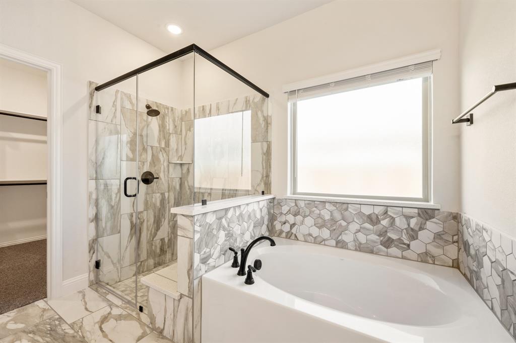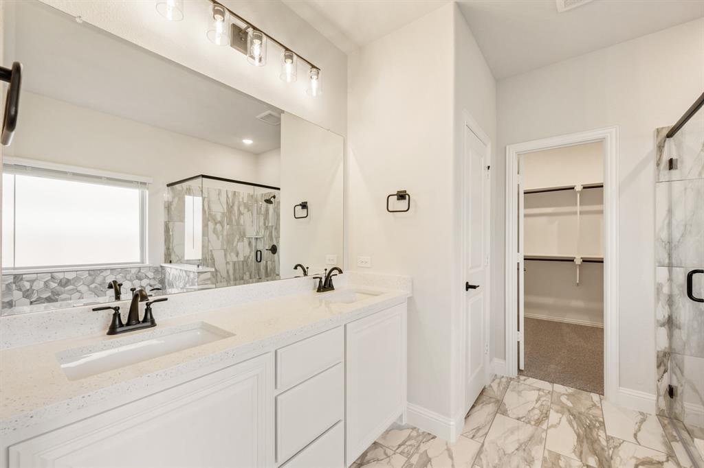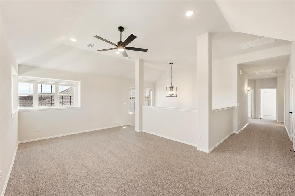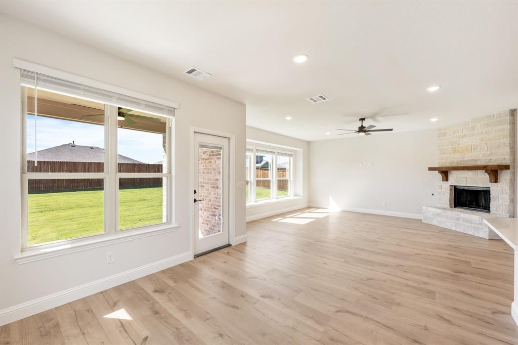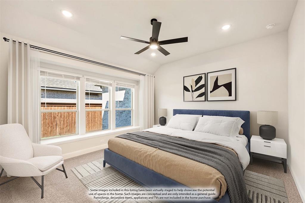 BRAND NEW & NEVER LIVED IN! Construction estimated to be completed October 2025. Bloomfield's Dewberry II plan has space for everyone - even the pets! 4 large bedrooms, 3 full baths, a downstairs powder bath, 2 dining areas, a Game Room, Media Room, and a covered back patio to enjoy your private backyard. Today's top trends can be found throughout like white cabinetry, Level 2 Playa White quartz surfaces, scratch-resistant laminate wood flooring in common areas, a stone-to-ceiling fireplace in the open Family Room, upgraded ivory tile selections in wet areas, and horizontal stair rails. This home features a Texas-sized kitchen with all the storage you could need! It has our largest walk-in pantry, our largest island (with trash pull-out drawer added), deep pot-and-pan drawers, space inside the wood vent hood, and a long wall of cabinets and counterspace. Artisanal-style Marrakesh Zellige tile backsplash adds an elegant accent of muted greens and taupe. Across from the kitchen sits the Primary Suite with an ensuite bath adorned by gold-flecked, marble-look tile. Making daily life simpler, things like the 3-car garage, extra lighting, upgraded carpet, a ceiling fan and gas drop on the patio, a dedicated laundry room, and window seats were all chosen with buyers in mind! Buying with Bloomfield means a full landscaping package, lower utility bills thanks to energy-efficient features, peace of mind with a home warranty, and working with a team that cares. Learn more by visiting our nearby model that's open daily!