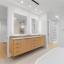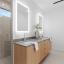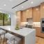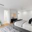 minimalist design ethos. The gourmet kitchen impresses with jumbo quartz waterfall countertops, custom cabinetry,