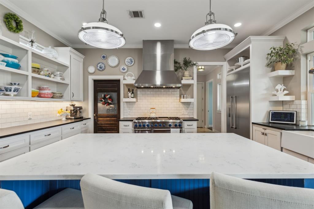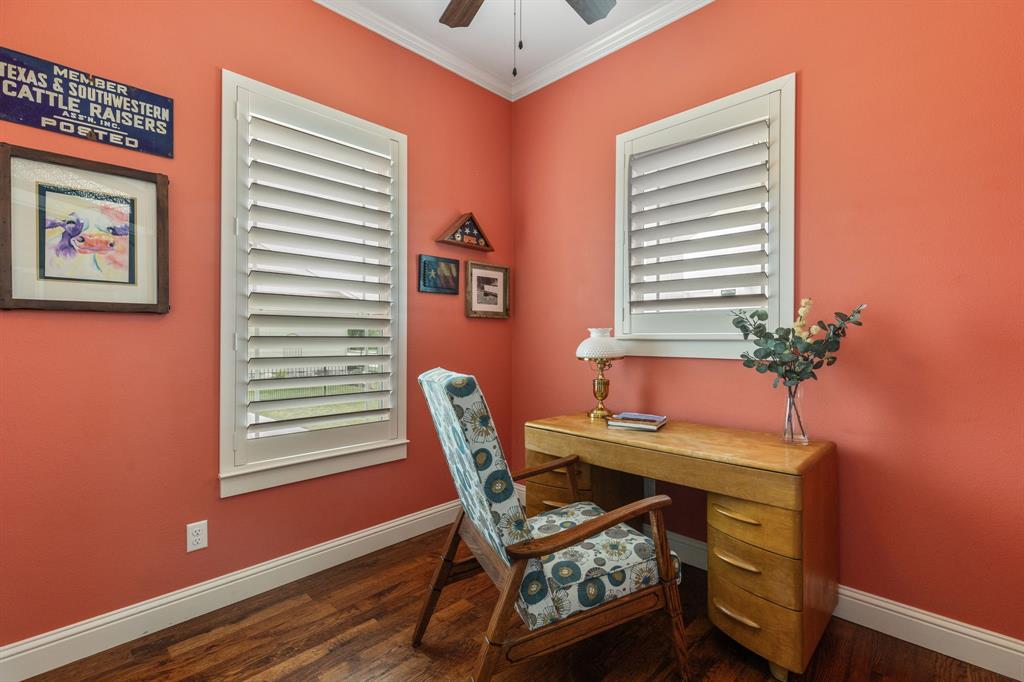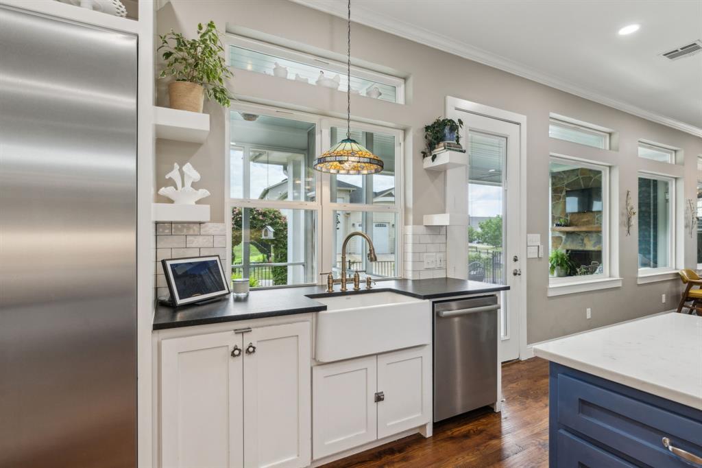 Welcome to 613 Park Place Blvd, a custom Cape Cod Style home in highly sought after Park Place West subdivision. Expertly designed and built by Seldon Custom Homes, this home exemplifies craftsmanship and elegance. From the moment you arrive, you’ll notice the charming “Haint Blue” porch ceilings, the solid Knotty Alder Wood front door, and the exterior operable shutter dogs, all setting the tone for the warm, curated style that continues inside. The heart of the home features hand-scraped hardwood floors, custom plantation shutters, and two stone fireplaces; one with a solid oak mantle handcrafted by Texas Hill Country Furniture. The kitchen is a dream with honed granite countertops, Daltile quartz island, Thermador appliances, antique pantry door from Bangs, and open shelving with bead board accents. A serving window connects to the inviting screened porch with salt-finished floors, custom lighting by a local artist, and 100yr old screen door. Every room tells a story, from antique shiplap in the foyer and salvaged transom glass in the study, to designer wallpaper and vintage light fixtures and hardware in the baths. The master retreat boasts a Kohler freestanding cast-iron tub, Carrara marble counters, and a vintage lucite chandelier. Additional features include a gas log fireplace, outdoor entertaining areas, travertine flooring in baths and laundry, and a spacious side yard perfect for pets or playing with the kids. Upstairs, a spacious landing welcomes you with endless possibilities; a cozy family room, playroom, or creative space. Two generously sized bedrooms are connected by a Jack and Jill bathroom, featuring honed granite countertops, vintage-inspired hardware, and timeless tile work. This is not just a home, it’s a work of art. Been looking for the perfect home in Park Place..look no further!