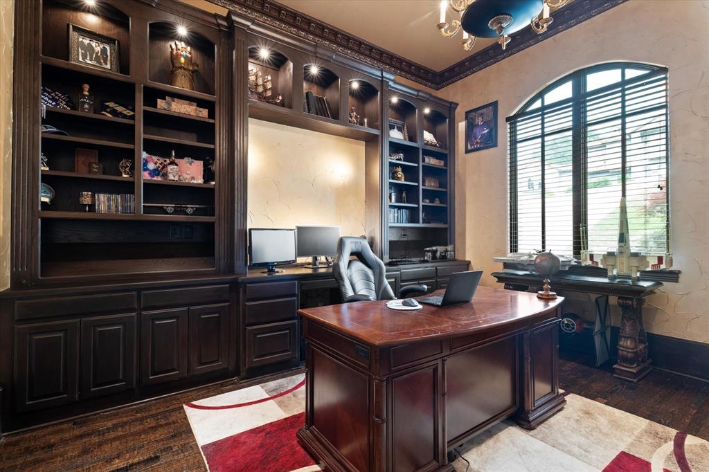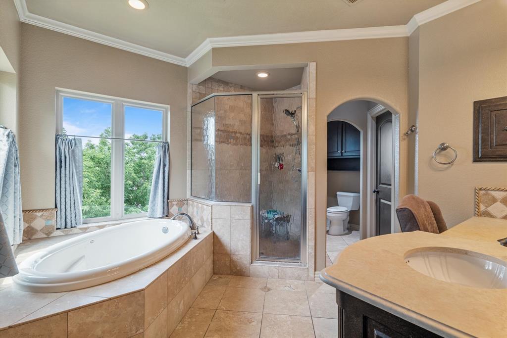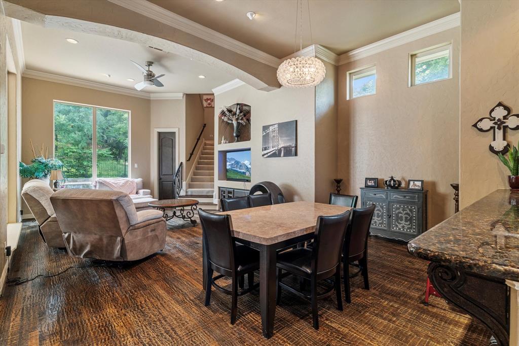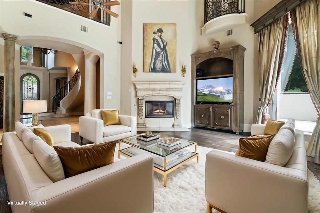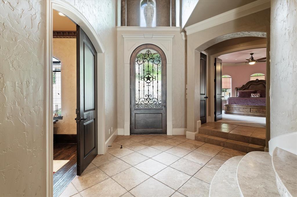 Few turns away from River Crest Country Club this beautifully two-story home with Mediterranean architecture-inspired villa spares no detail in the gated Rivercrest Landing private and gated community, nestled at the top of the private cul-de-sac. The rooms are large & spacious, perfect for entertaining; every inch reflects luxury. Soaring vaulted ceilings and ornamental crown molding frame the home’s generous living spaces. The chef’s gourmet kitchen features high-end appliances: a 5-burner gas cooktop with grill and griddle, warming drawer, double ovens, and a hammered copper farmhouse sink. Juliet balcony overlooking the great room. The backyard oasis features a pool, fountain & beautiful covered outdoor living area.