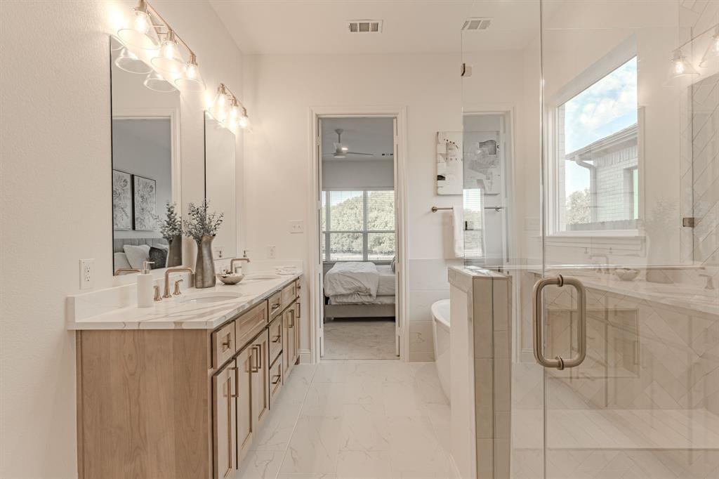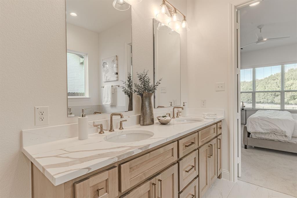 20K seller credit available for buy down of rate with preferred lender and full price offer. Construction is complete on this beautiful Carmichael floor plan that backs up to the lakes! Views that will knock your socks off. Peaceful and beautiful. Welcome to The Lakes at Parks of Aledo! An exceptional community in the heart of Aledo offering a small town feel just minutes from schools, dining options, and quick access to DFW area. Costco nearby coming soon! Amenities include disc golf, dog parks, playgrounds, community garden, tree forts, walking trails, lakes, and 10+ miles of mountain biking trails! This site backs up to the lakes and offers lake views from the backyard! This listing includes our Carmichael floor plan, two-story, offering many options and versatility for large families or those needing extra space. 2 bedrooms on first floor, 3 bedrooms on second floor, 4 full baths, powder bath, spacious kitchen & living area, large game room, ventless gas fireplace, upgraded french doors to back patio, upgraded free standing tub, upgraded bedroom on first floor with ensuite bath, and pocket office in large pantry!