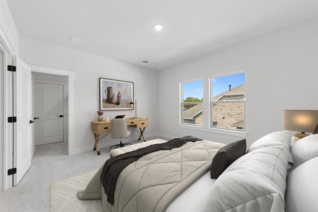 Welcome to this exquisite two-story home exemplifying luxury & functionality at its finest. You'll be captivated by the spaciousness and elegance of the Munich design. At the heart of the home is the expansive kitchen that is a true chef's delight, crafted with meticulous attention to detail, a spacious island with quartz, and an abundance of cabinet space, ensuring both style & functionality. The convenience of modern living is highlighted by the thoughtfully designed main level, which showcases a magnificent primary bedroom suite & Extra Suite Plus, perfect for multi-generational living. A seamless blend of form & function continues upstairs with a spacious loft and two additional bedrooms. As you step outside, you'll discover a covered patio that beckons you to un-wind & enjoy the outdoors in comfort.