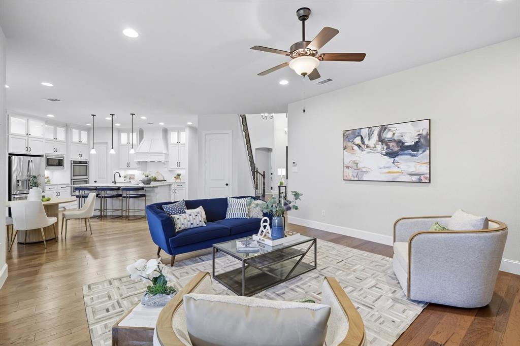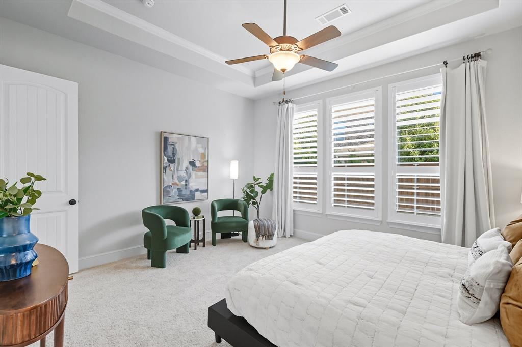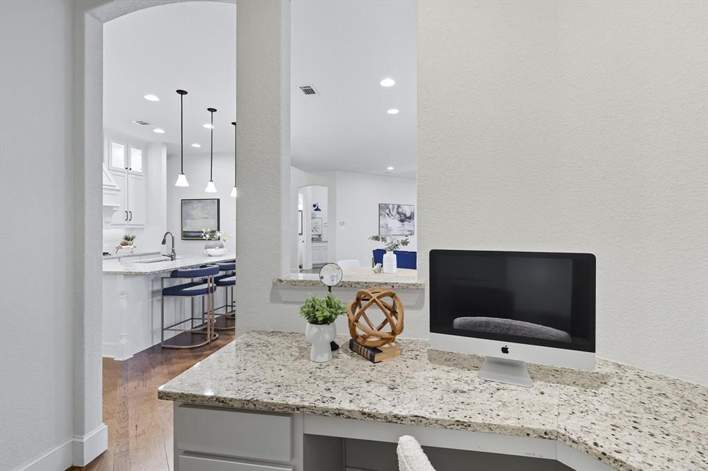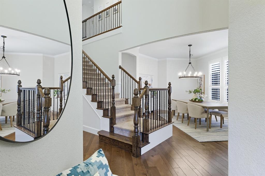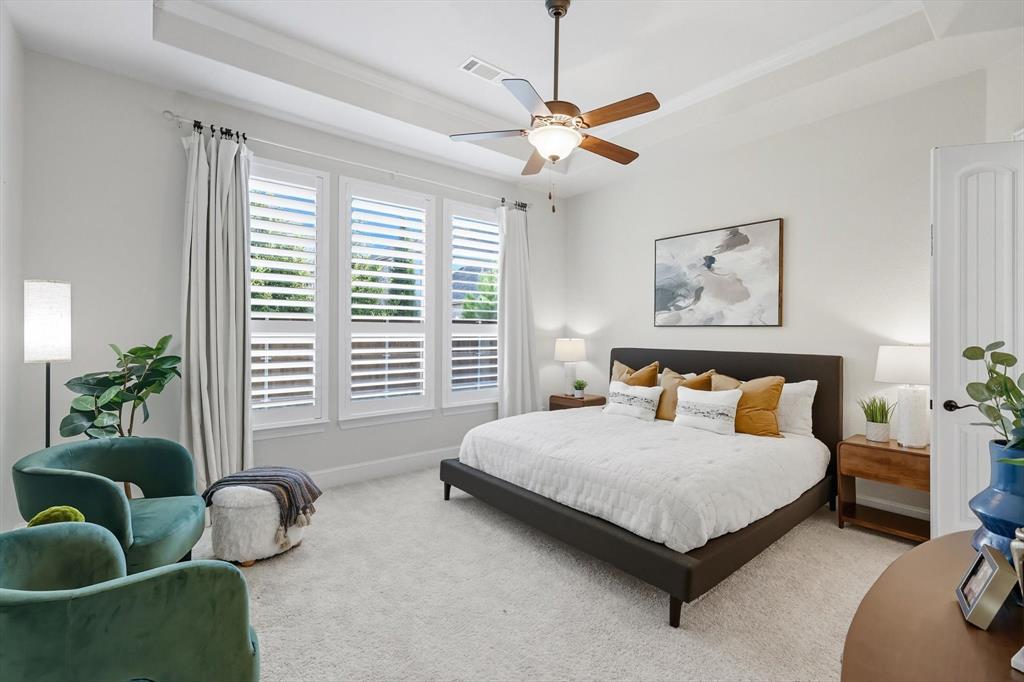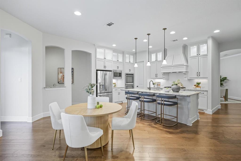 Discover the captivating charm of this home at 11171 Progreso Street, Frisco, TX, where elegance seamlessly blends with functionality. From the moment you enter, the open floor plan and welcoming atmosphere will enchant you. As you step inside this north facing residence, you are greeted by high ceilings and exquisite wood floors that enhance the spacious and luxurious feel of the home. All carpet throughout the home has been recently replaced with fresh, new carpeting, adding comfort and a move-in ready touch. At the heart of the residence lies the kitchen, perfectly outfitted for entertaining with double ovens, a large island, and stylish large cabinets with under lighting. This culinary haven flows effortlessly into the living room, creating an ideal space for hosting guests or enjoying cozy evenings by the fireplace. A versatile flex space adjacent to the kitchen offers the perfect spot for a home office.