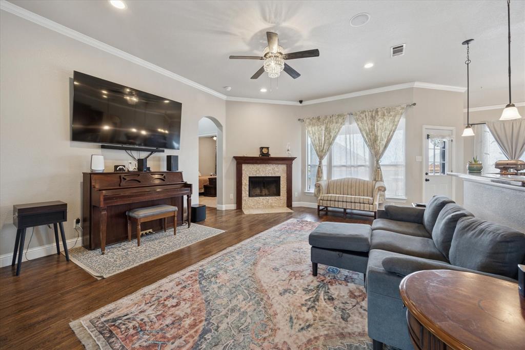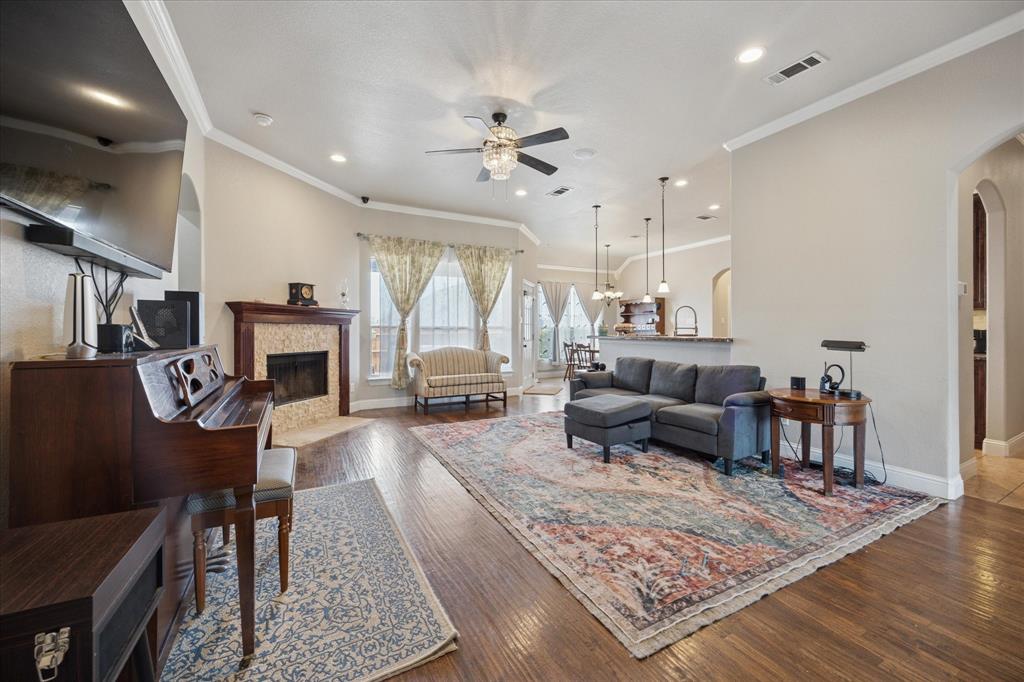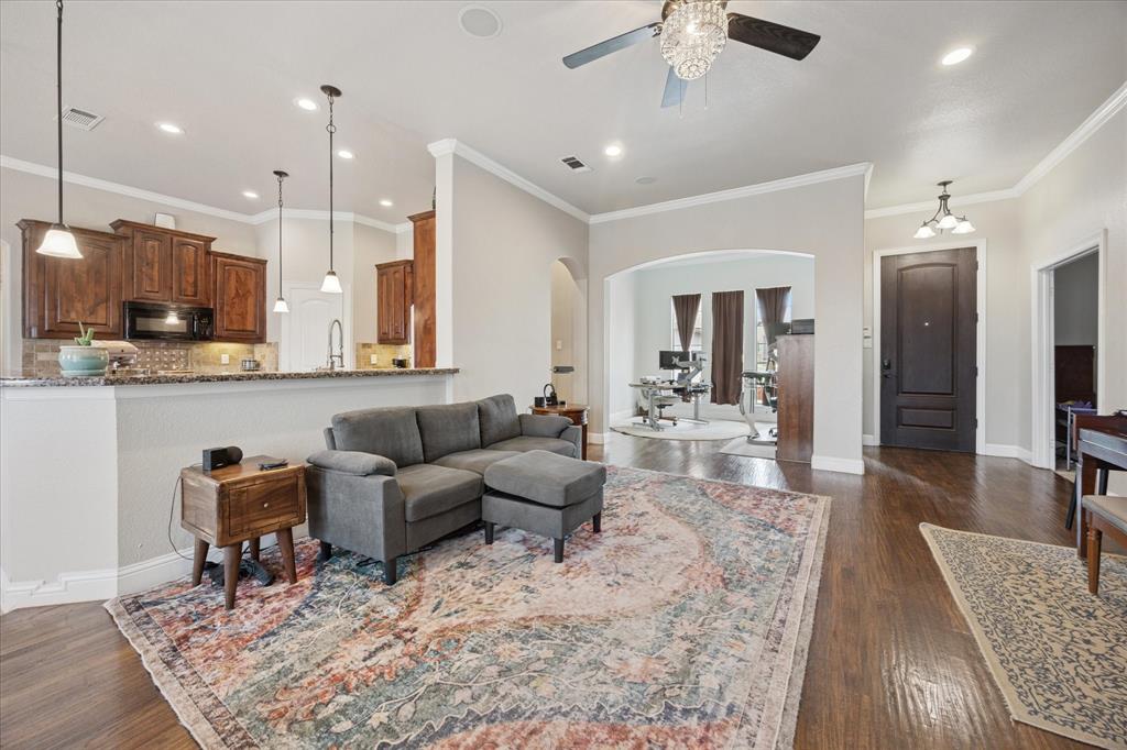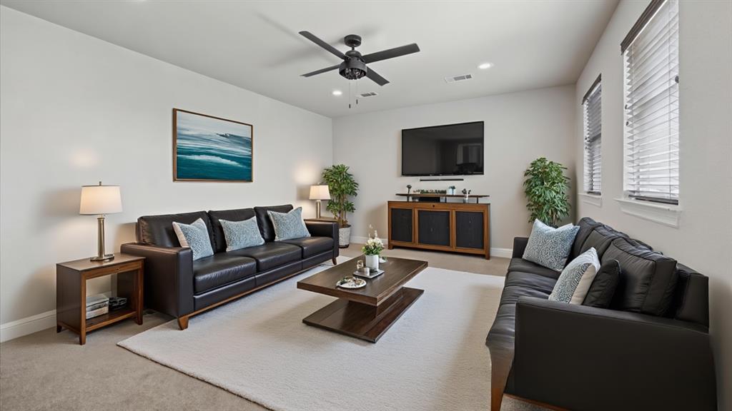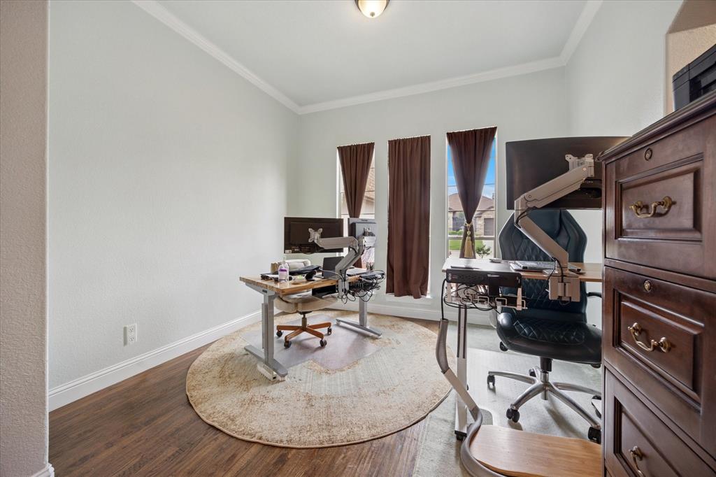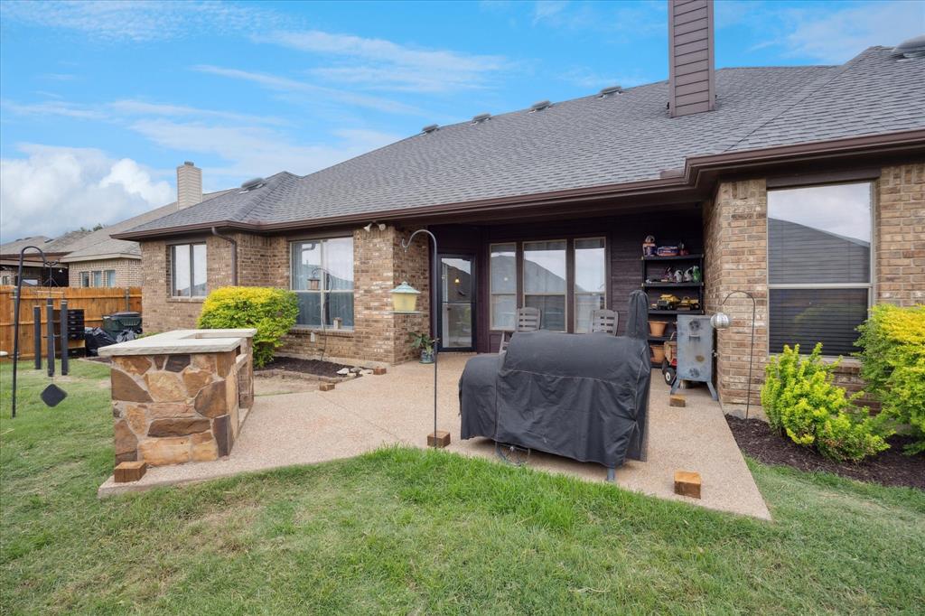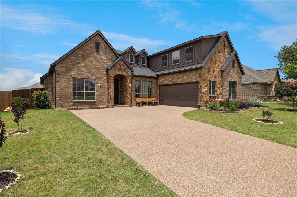 Welcome to 449 Chisholm Trail, a custom-built 3-bedroom, 2-bathroom home with a dedicated office and an upstairs game room, located in the highly sought-after Reatta Ridge subdivision in Justin, TX. This 2,219 sq ft home has been thoughtfully appointed inside and out. Fresh interior paint throughout and brand-new carpet in the primary bedroom, office, and secondary downstairs bedroom create a clean, move-in-ready experience. Hardwood floors extend through the main living area, while the kitchen shines with granite countertops, knotty alder cabinetry, and ample storage space. Both bathrooms feature elegant marble countertops and modern fixtures. The open-concept floor plan flows beautifully, providing natural light and a layout that’s ideal for both daily living and entertaining. The upstairs bonus space is perfect as a playroom, media area, or second living room. Outside, the home impresses with refreshed landscaping, upgraded rock and brick exterior finishes, and a relaxing backyard retreat. The HVAC systems, both the outdoor condenser and attic unit, were replaced in March 2025 for modern efficiency and peace of mind. Nestled in a community known for its family-friendly vibe, Reatta Ridge offers walking trails, a community pool, playgrounds, and access to highly rated Northwest ISD schools. Enjoy the small-town charm of Justin with quick access to Alliance, Denton, and Fort Worth. This home blends quality construction, thoughtful upgrades, and neighborhood appeal. Don’t miss your chance to make it yours!