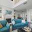 Enjoy some tranquility and beauty as you sit on this newly painted wood deck and look out on the water, great for entertaining. The interior of the home has been freshly painted throughout. The living room is open and bright with natural lighting, luxury flooring, and vaulted ceilings, along with a wood-burning fireplace, built-ins and open to the dining room. The lovely eat in kitchen has granite countertops, tiled back splash, decorative lighting, stainless steel appliances, and the refrigerator stays. Downstairs you will also find a half bath with granite countertops. Both bedrooms and two full bathrooms are upstairs. The primary is spacious with vaulted ceilings, bay windows, a sitting area and a wood-burning fireplace, and the an en suite with dual sinks, make up area, and a linen closet. Hot water heater less than 2 years old. The community does have a pool. Cimarron Recreation Center, Library, canals, walking trails, parks, restaurants and a variety of stores, are all nearby. HOA covers exterior maintenance and blanket insurance, lawn care, water, sewer, trash pickup, cable and community sprinkler system, Guest parking on Saddlehorn Dr. and Cimmarron Trail