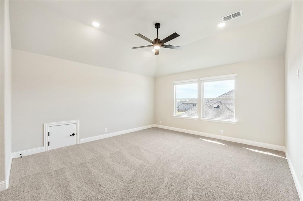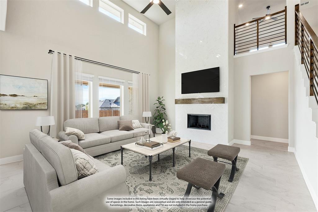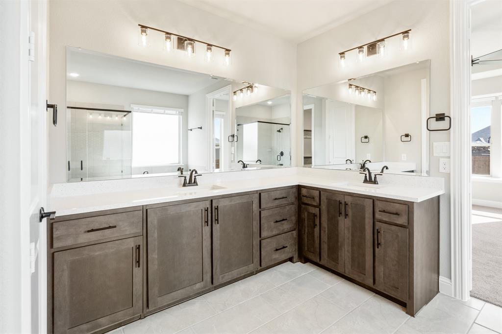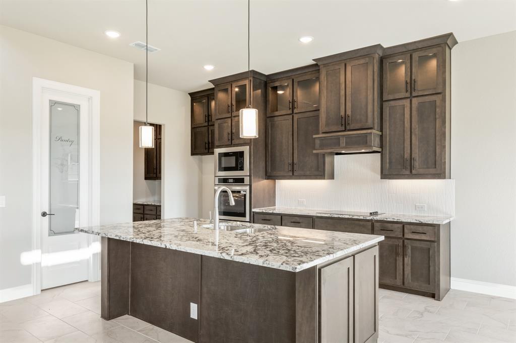 NEW! NEVER LIVED IN & Ready to Move-In NOW! Bloomfield's Seaberry floor plan is a stunning two-story home on an interior lot with a swing garage and a generously sized yard, offering 5 spacious bedrooms and 4 baths, including a private downstairs guest suite with its own ensuite bath—perfect for multigenerational living. The open foyer welcomes you with an elegant Formal Dining area and a private Study enclosed by dual doors, while a Butler’s Pantry provides seamless access to the Deluxe Kitchen—an elevated culinary space featuring cabinets to the ceiling with glass fronts and accent lighting, custom cabinetry, Quartz and Granite counters, pot and pan drawers beneath the cooktop, a striking wood vent hood, and built-in stainless steel appliances including a Double Oven. This chef’s dream flows effortlessly into the expansive Family Room, where soaring 18’ vaulted ceilings, picture windows, and a breathtaking Tile-to-Ceiling Fireplace with a cedar mantel create a warm yet refined ambiance. Throughout the downstairs, 8' interior doors and RevWood Laminate flooring in all main traffic areas add style and cohesion. The Primary Suite is a serene retreat with a soaking tub, separate shower, and a roomy L-shaped vanity, while thoughtful touches like window seats, a nearby mud room, and included blinds throughout enhance everyday function. The home’s stately brick and stone façade is further elevated by an 8' custom Front Door, full landscaping with stone-edged flower beds, and a fully bricked front porch that blends durability with charming curb appeal. Call or visit today!