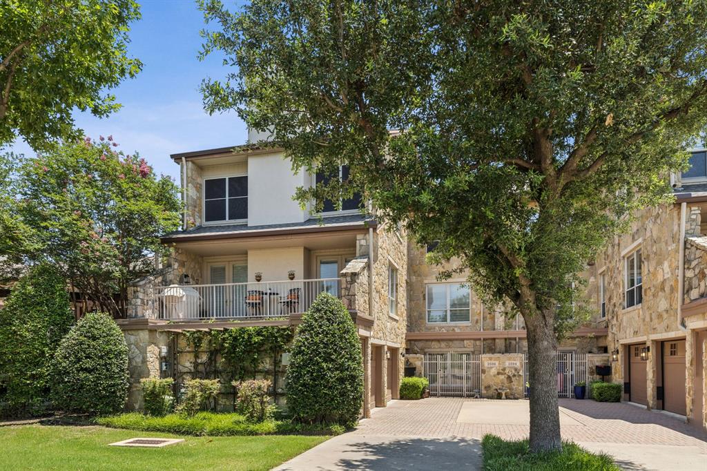 Luxury lakeview condo in the heart of Castle Hills with gated courtyard entry and walking distance to The Village Shops. This 3.5-story home in Lewisville ISD offers an elevator, attached 2-car garage, and stunning views of Lake Avalon. The first level includes a flex space with wood floors and full bath—perfect for guests or office. Main level boasts open-concept living, wood-look tile floors, gas fireplace between French doors, and expansive patio overlooking the water. Chef’s kitchen features granite, gas range, stainless steel appliances, and breakfast bar. Level 3 offers a secondary suite with walk-in closet, granite bath, private patio, plus utility with storage and built-ins. Top-level owner's retreat impresses with a second fireplace, serene views, spa-like bath with soaking tub, shower, dual sinks, and granite. Loft outside suite is ideal for office or gym with lake views. Enjoy resort-style Castle Hills amenities—pools, trails, playgrounds, and more!