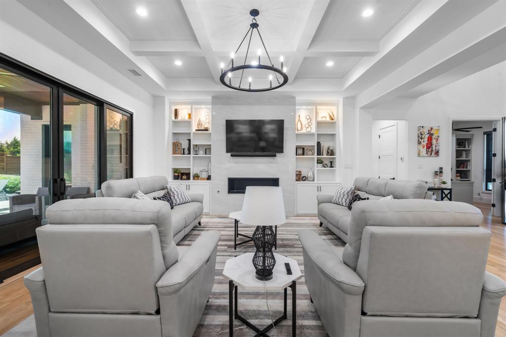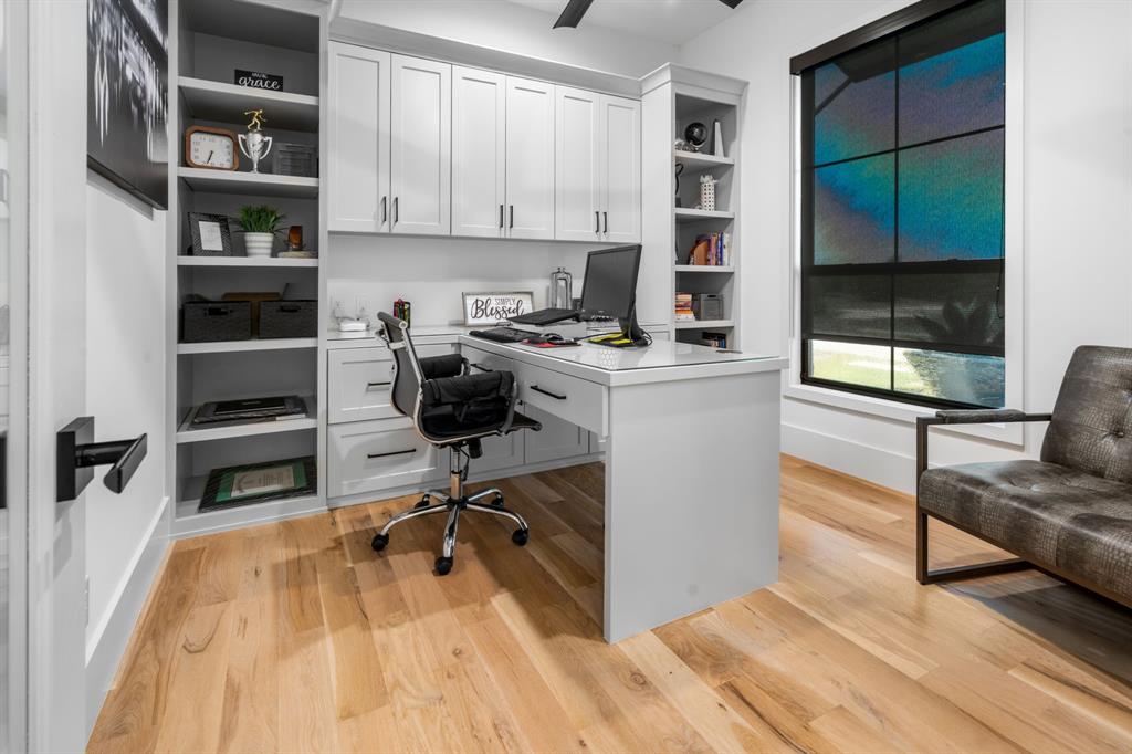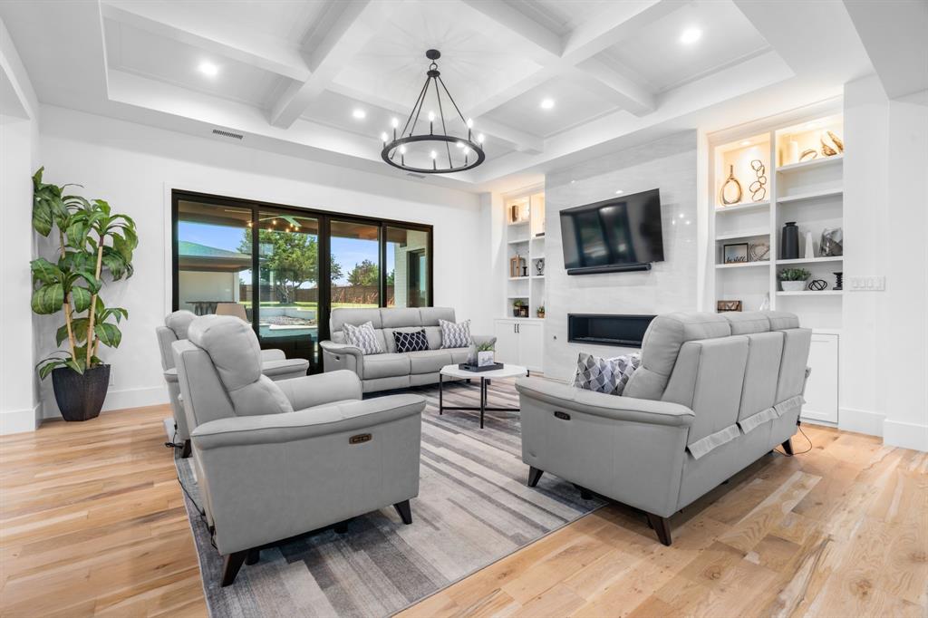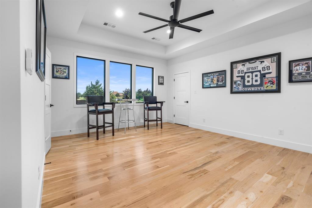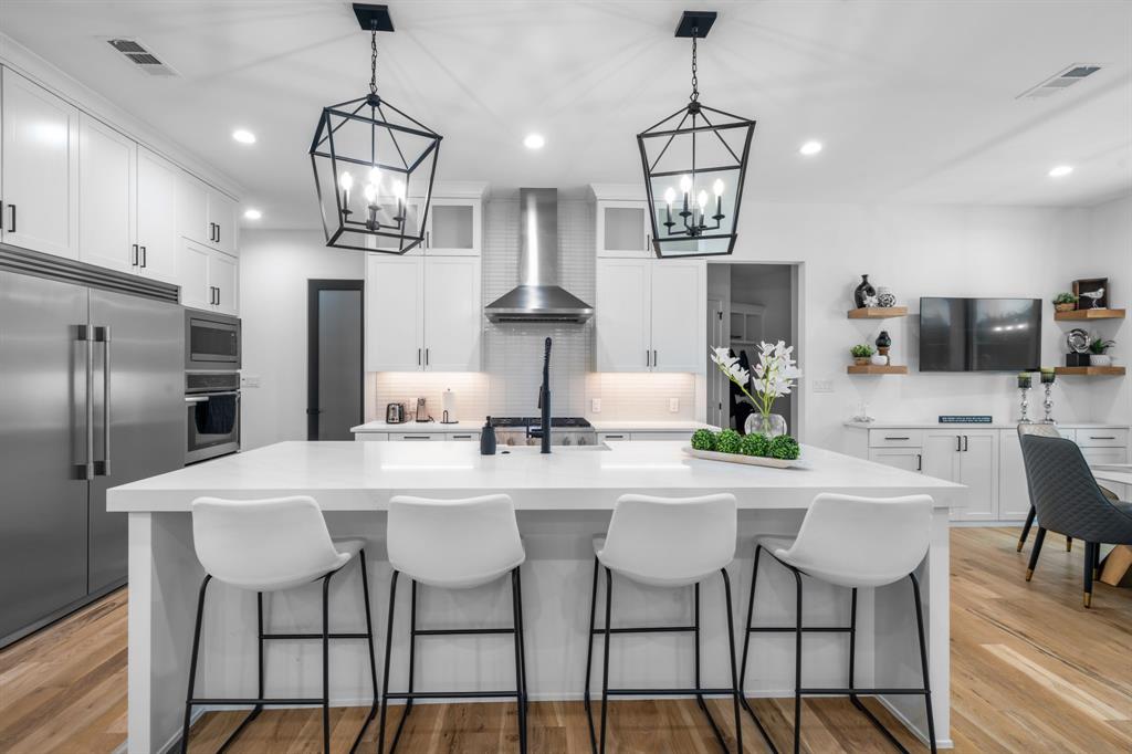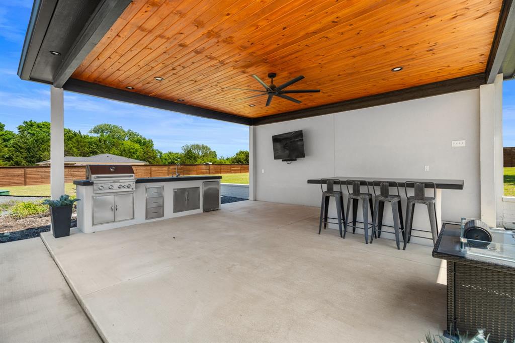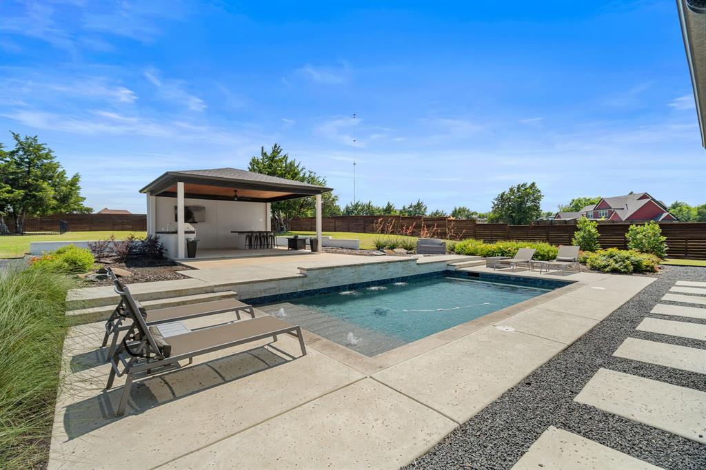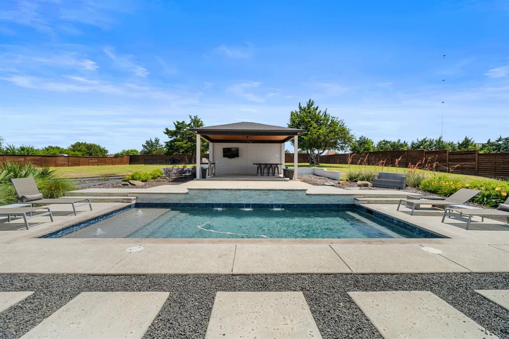 Amazing home at 4940 Golden Bell Lane, an exceptional custom home showcasing premium upgrades that blend luxury, comfort, and modern design. The exterior features an upgraded stone and brick façade, professionally designed landscaping with an enhanced sprinkler system, a custom-built front water fountain, and solar translucent tinted windows throughout. Enjoy outdoor living with a fully equipped cabana featuring a built-in grill, sink, refrigerator, recessed lighting, and full electrical setup. Additional exterior highlights include an oversized 3-car garage with modern glass doors and a custom wrought iron dog run. Inside, the home offers premium hardwood flooring, Level 5 paint on all walls, motorized power shades in the primary bedroom, a coffered box tray ceiling in the family room, and an open-concept layout that flows seamlessly. The chef’s kitchen boasts quartz countertops, a Sub-Zero refrigerator, a farmhouse sink, and a built-in wine fridge. Bathrooms are outfitted with frameless glass showers, adding a sleek, spa-like feel. The home is equipped with smart features including thermostat, lighting, and security camera systems, plus tankless water heaters for energy efficiency. Structurally, the home is reinforced with steel rods, providing a stronger foundation than typical post-tension builds. Every detail in this home reflects quality craftsmanship and thoughtful design—offering a truly elevated living experience.