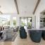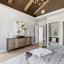 Architectural details include rustic stonework and distressed wood accents with a modern twist. The home’s clean exterior lines, metal accents, and limewashed finishes lend a timeless character, while the interior embraces soft greens, earth tones, and vineyard-themed color palettes—chardonnay, merlot, and cognac—infusing every space with a sense of warmth and lived-in luxury.