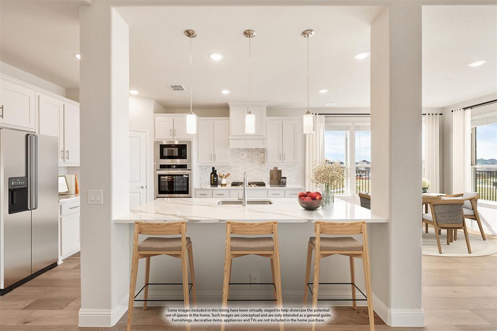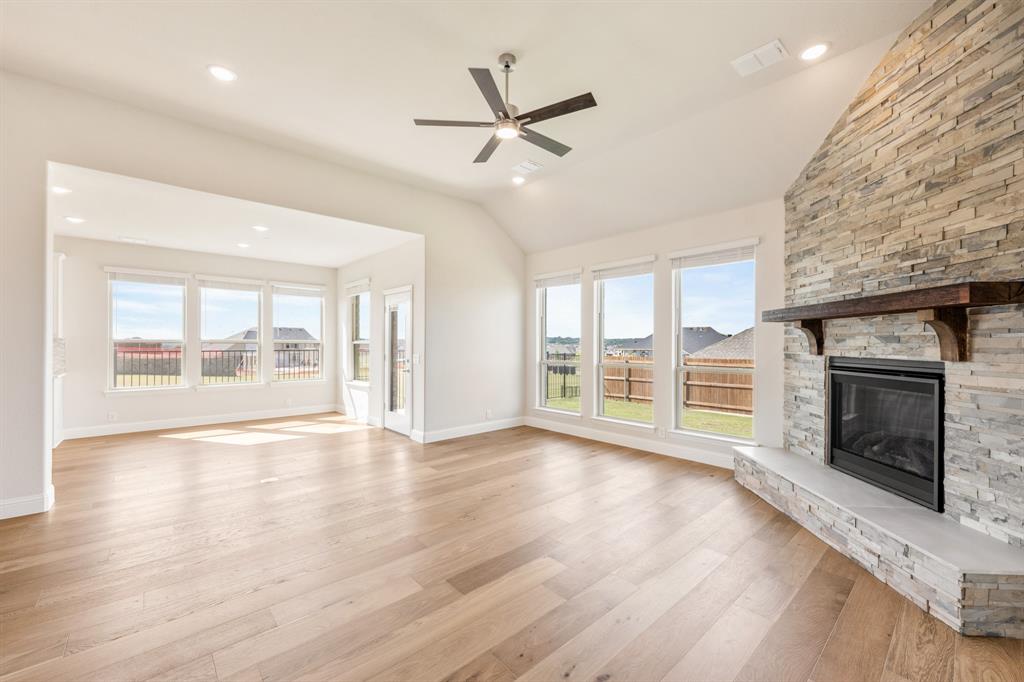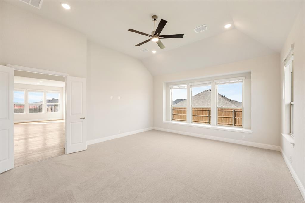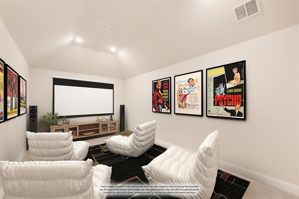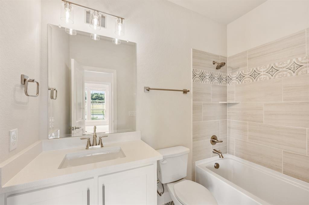 READY FOR QUICK MOVE-IN with a FABULOUS GREENBELT VIEW + up to $20K in FINANCING INCENTIVES for a 30-day closing! This Magnolia II by Bloomfield Homes is an expansive, luxury 2-story with 5 beds, 3 baths, game room, media room and 2.5-car garage – extra deep for Texas-sized trucks – with 100 sq ft of bonus storage. Elegant white brick exterior with 8 ft Mahogany and glass front door, cedar garage door, upstairs balcony and lush landscaping. Inside you’ll find a transitional warm and elegant color palette, stacked stone to ceiling direct vent fireplace, hardwood floors in main living areas, plush carpet and designer tile selections.