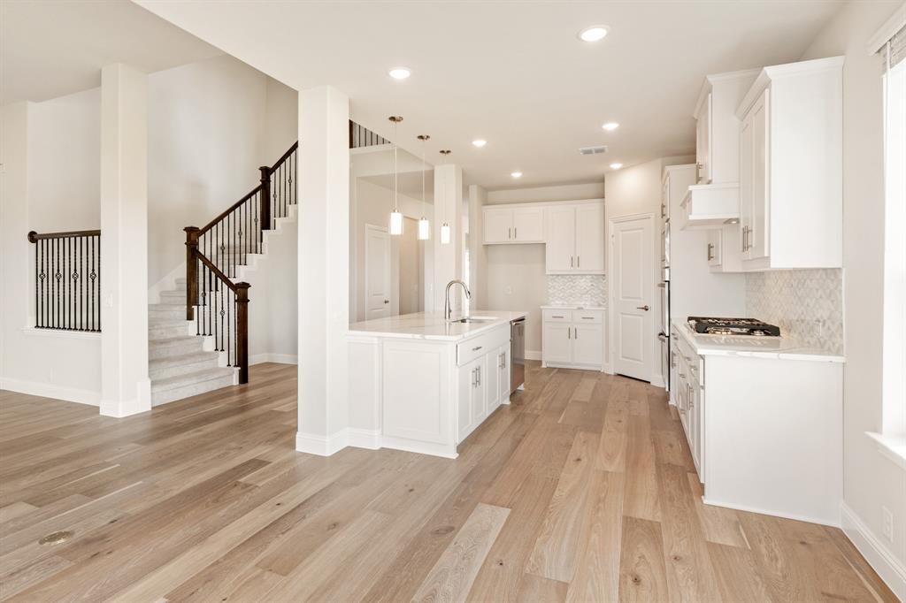 Downstairs features the luxury primary suite, a spacious guest room and a flex room perfect for a formal dining, open home office or creative space. Upstairs boasts 3 large secondary bedrooms, a split bathroom with 2 sinks, a game room with balcony access and an enclosed media room. The chef’s kitchen impresses with built-in stainless appliances, gas cooktop, double convection oven, wood vent hood, exotic quartz countertops, stunning mosaic backsplash and generous island. Quartz counters in all bathrooms. Extensive storage in the pantry and three additional storage closets throughout!