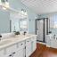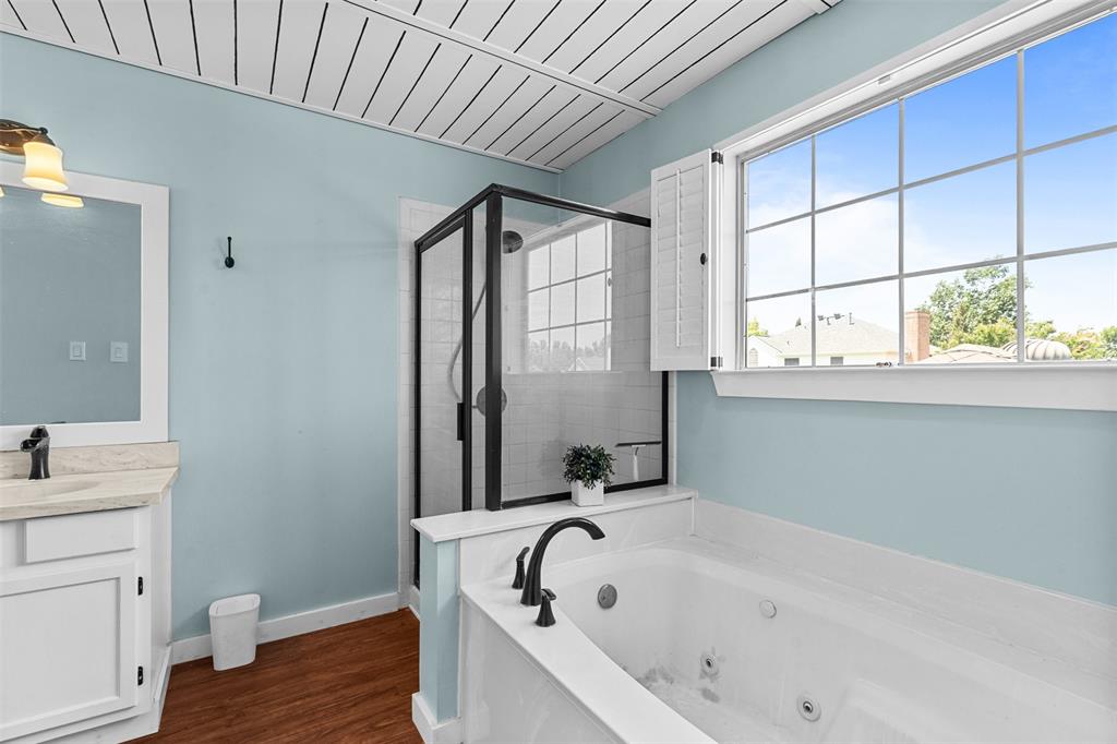Step inside to find neutral paint tones throughout, elegant plantation shutters, and updated lighting fixtures that enhance the bright, inviting feel of the home. The kitchen features a new gas range with griddle, perfect for cooking enthusiasts. Each bathroom has been updated with quartz countertops and modern fixtures, offering a fresh and stylish touch.