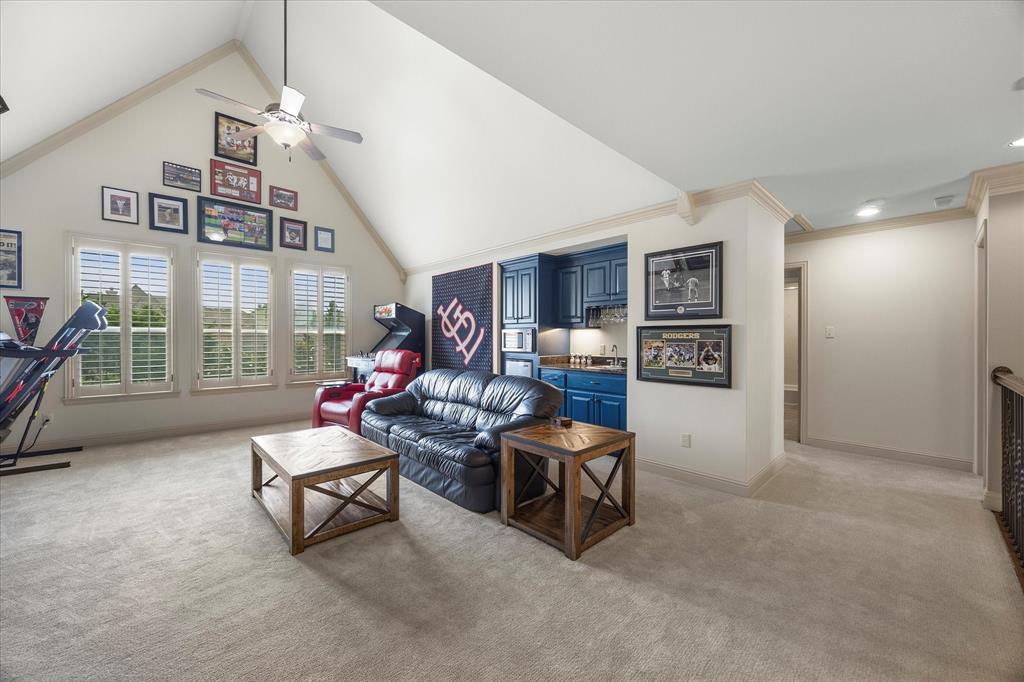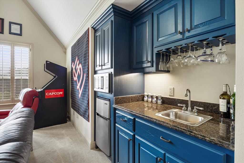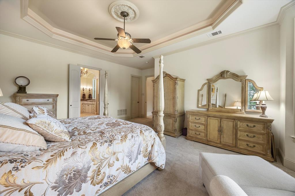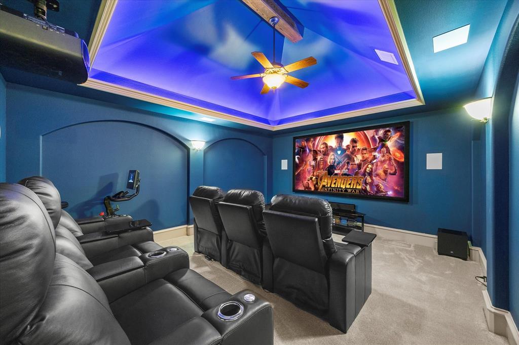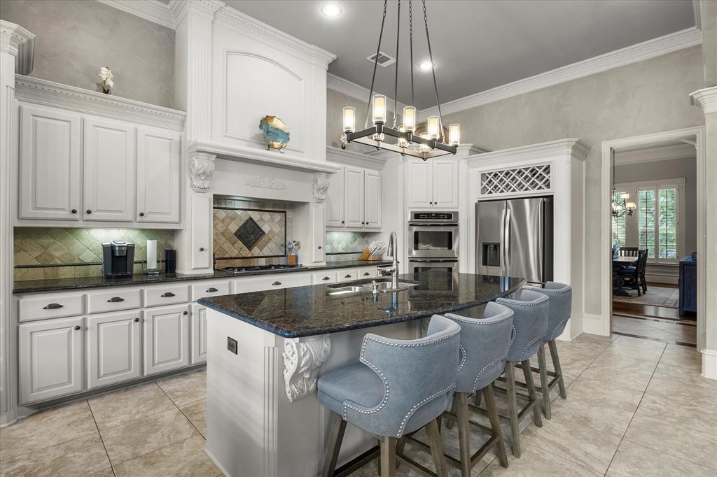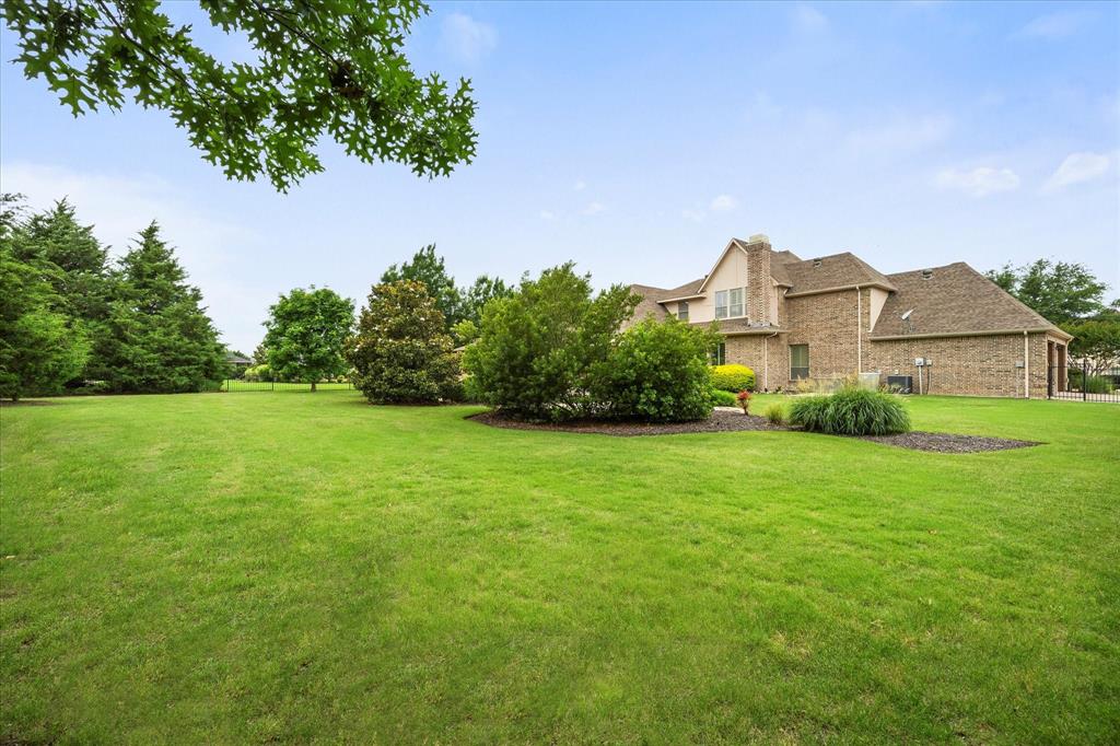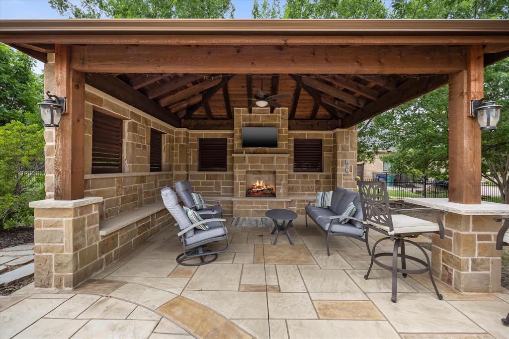 Nestled on approximately 0.75 acre in the prestigious Wyndemere community, this exceptional custom home offers the perfect blend of refined elegance, comfort, and upscale design. The thoughtfully crafted floor plan features a chef’s kitchen equipped with an oversized island, premium stainless steel appliances, 5-burner gas cooktop, wine chiller, spice pull-outs, and a large walk-in pantry. The open-concept family room is anchored by a beautiful custom fireplace and built-ins, ideal for everyday living and entertaining. The luxurious primary suite offers a spa-inspired bath and expansive walk-in closet, while a private guest suite on the main level adds convenience and versatility. Upstairs, two spacious bedrooms are accompanied by a private media room outfitted with a 4K projector, 7.2 surround sound system, and six power-adjustable theater chairs. The game room is designed for fun and function with a wet bar, mini fridge, and microwave. Elegant finishes throughout include extensive hardwood flooring, plantation shutters, rich millwork, and an oversized utility room with abundant storage. A three-car garage offers generous space and includes a Versa Lift system for effortless attic access. Outside, your private backyard oasis is framed by mature trees and lush landscaping. The resort-style pool and spa with waterfall are complemented by a recently added outdoor kitchen with built-in gas grill and bar. A stunning gazebo features a gas fireplace and mounted TV for year-round outdoor enjoyment. The Arctic Pool Chiller system ensures the water stays refreshingly cool during Texas summers. This extraordinary property offers luxurious living in one of the area’s most coveted communities.