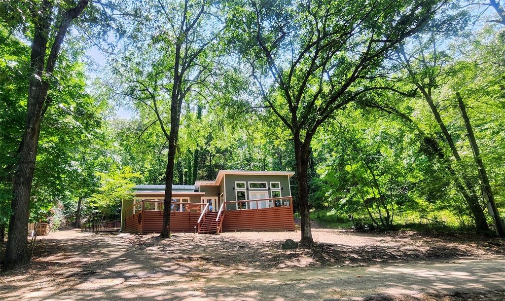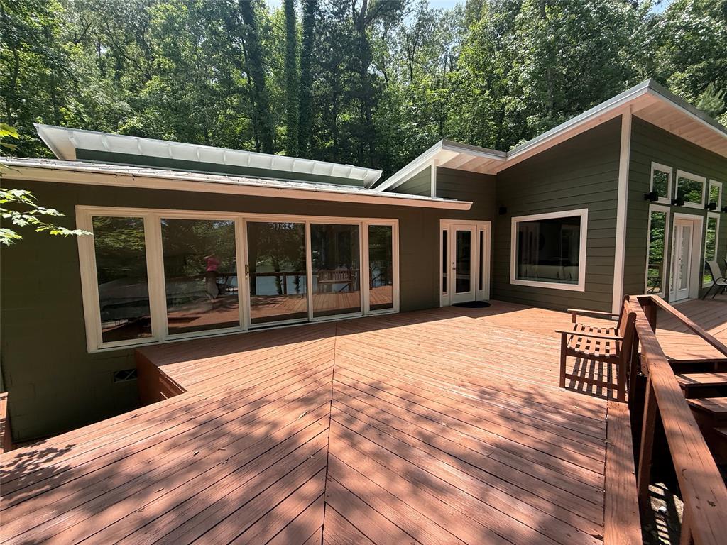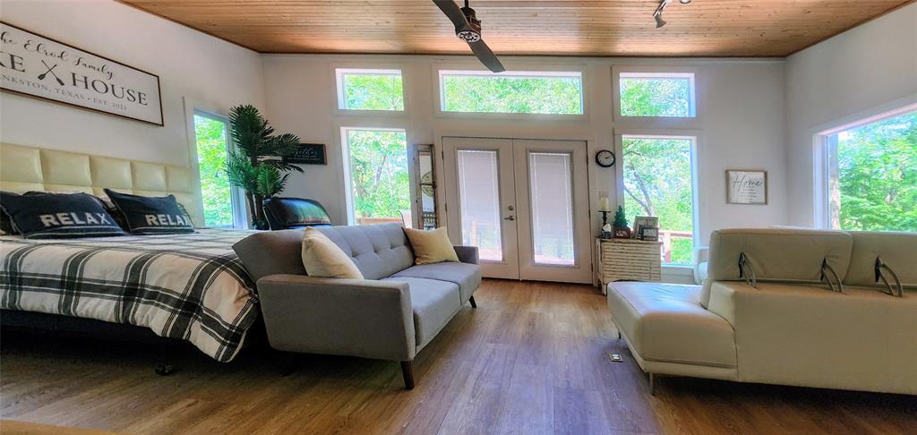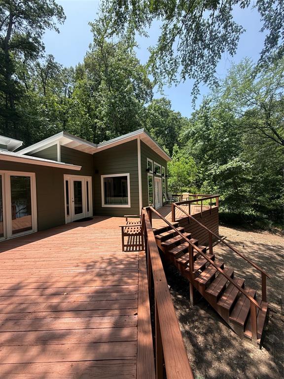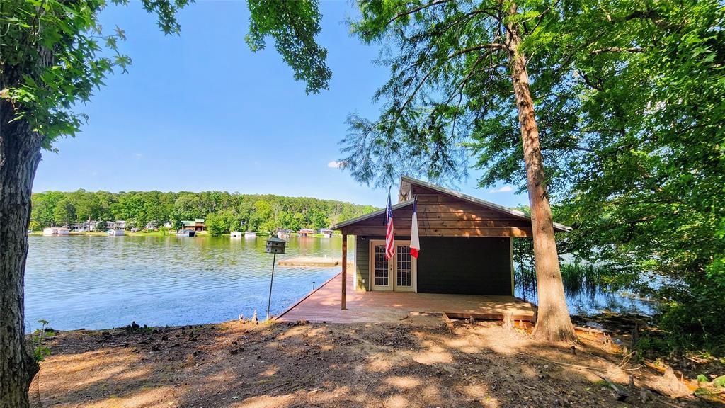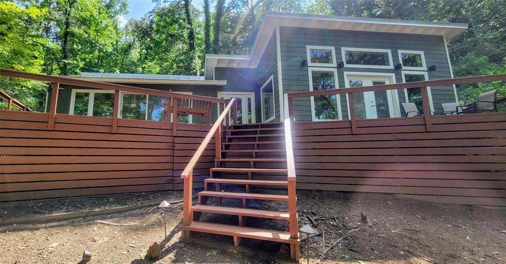 Great Fishing and a wonderful modern style home in the piney woods of east Texas. This home is great for entertaining with the large outside decks, enclosed boat house and pier. Location is close to Pine Dunes Golf Course and is in a gated community. Spend your days fishing the stocked spring fed lake for bass, crappie, catfish etc. The 2 bedrooms, 2 bath home has recently been updated with new appliances, cabinets, shelves, etc. There are gorgeous views of the lake from the wall of windows in the living and bedroom areas. Property includes a vacant lot next door so you could easily add on or build another home. Don't miss out on this amazing opportunity to own your dream lake home!