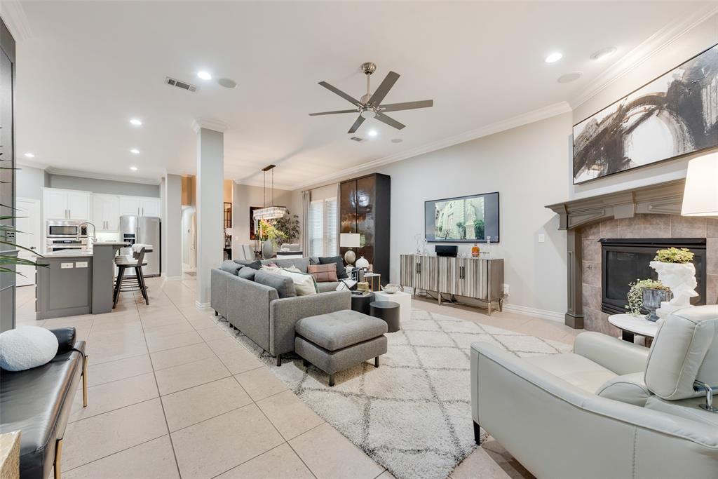 Discover luxury living at The Resort on Eagle Mountain Lake in the exclusive Villas on Portwood Way. This beautiful 3-bedroom, 2-bathroom home offers low-maintenance living with stunning views of the golf course's 9th hole and a peaceful pond—perfect for relaxing while watching the golfers and local wildlife. Inside, you'll find an open-concept layout that's great for entertaining, featuring a spacious kitchen that flows into the living and dining areas. With elegant touches like crown molding, stunning light fixtures, and gorgeous hardwood and tile flooring, this home feels both stylish and welcoming.