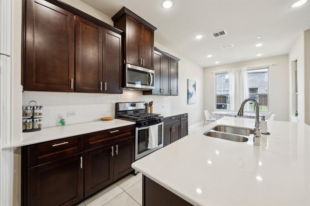 Located in the Huntington Villas Townhome Community, this like new home sets itself apart with well-chosen finishes and a fantastic floor plan. The spacious living room is open to the chef’s kitchen that features a large island, lots of cabinet and countertop space, gas range, and stainless steel appliances. Half bath next to the living room is convenient for guest use and everyday living. Upstairs you will find a loft that can be an office or additional living area, the primary bedroom with balcony, and an ensuite that boasts dual sinks & a large walk-in shower, utility room, and 2 secondary bedrooms with an additional bath. Minutes from 75 and 121, with expansive shopping including The Villages of Allen & Fairview and Whole Foods. Also located near bustling entertainment as well as a large variety of dining options close by. Located in top rated Allen ISD.