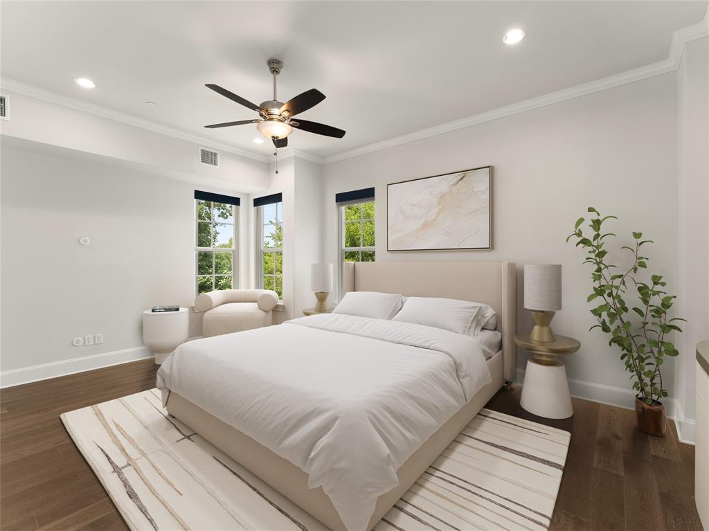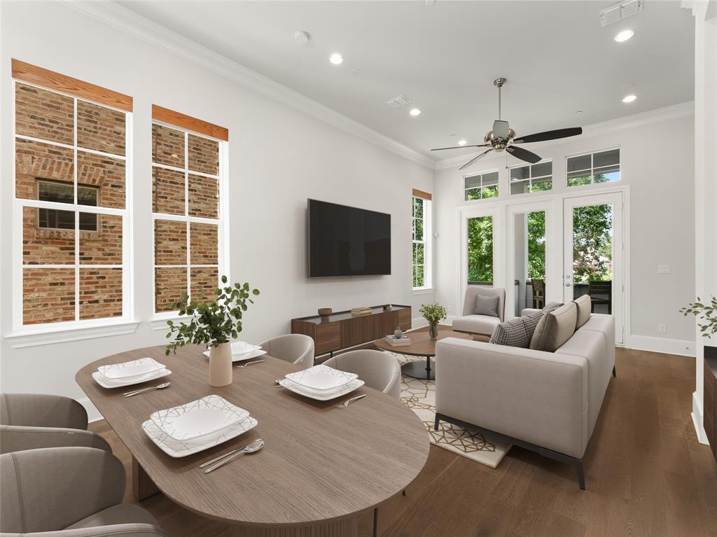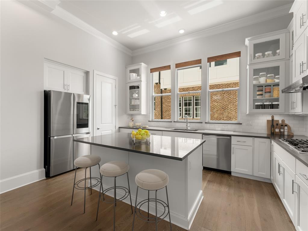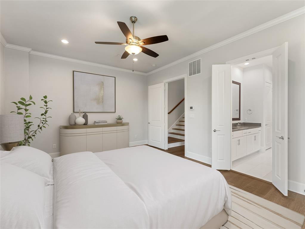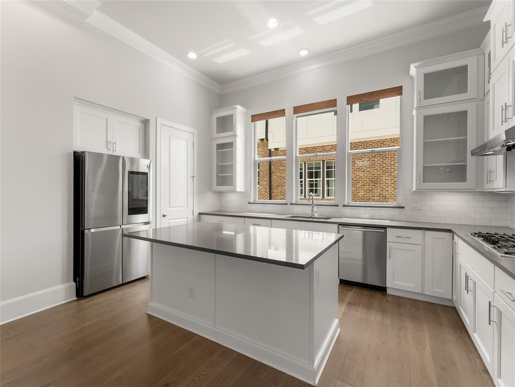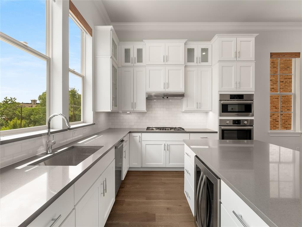 Immaculately-maintained and move-in ready, this 3-bed, 3.5-bath end unit by InTown Homes offers abundant natural light, thoughtful upgrades, and a great layout for everyday living and entertaining. Enjoy engineered wood floors throughout, 12-ft ceilings, crown molding, and French doors that open to a private balcony. The kitchen features Bosch appliances, quartz countertops, stacked upper cabinets, and a modern tile backsplash. The spacious primary suite includes a soaking tub, walk-in shower, and large walk-in closet. Custom automatic shades throughout, plus extra windows throughout thanks to the end-unit location. Don’t miss the rooftop terrace—perfect for entertaining or relaxing. Located near the Medical District, Oak Lawn, and major Dallas thoroughfares for easy access to dining, shopping, and more. A rare resale opportunity in a fast-developing neighborhood—get into this community without paying the new construction premium. SPECIAL FINANCING options are available for this community - 0%, 5% or 10% down with no PMI, below market interest rates, lender fees waived.