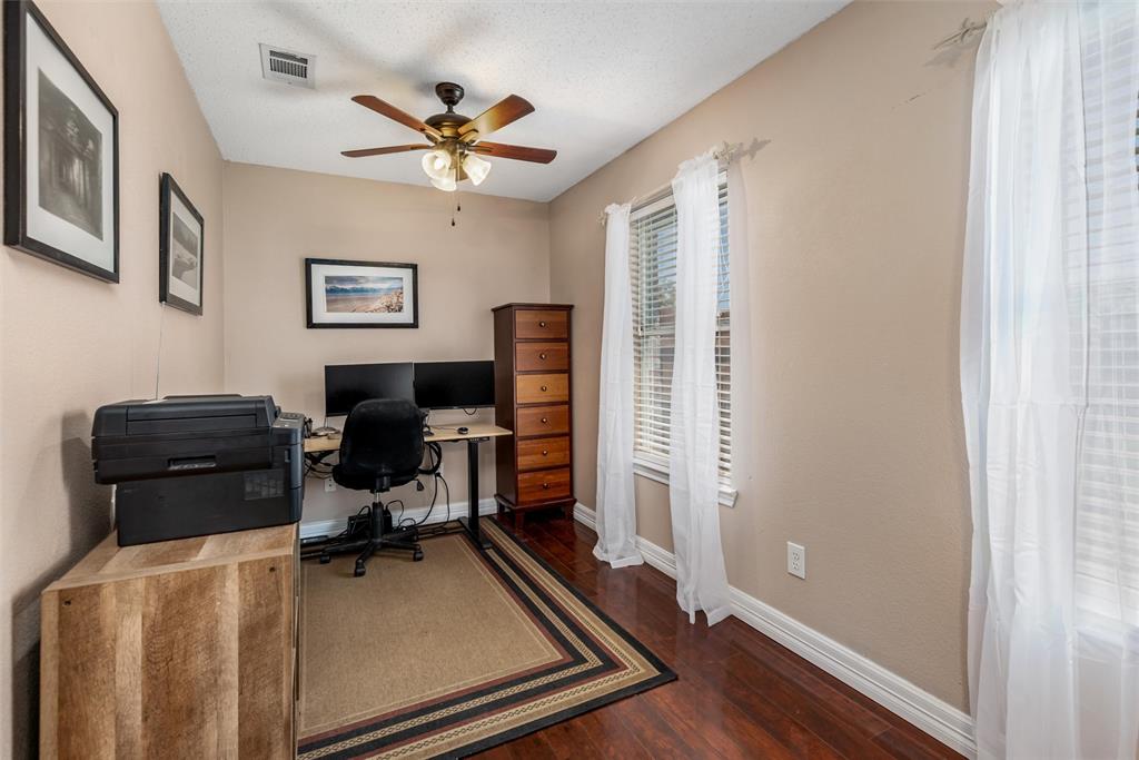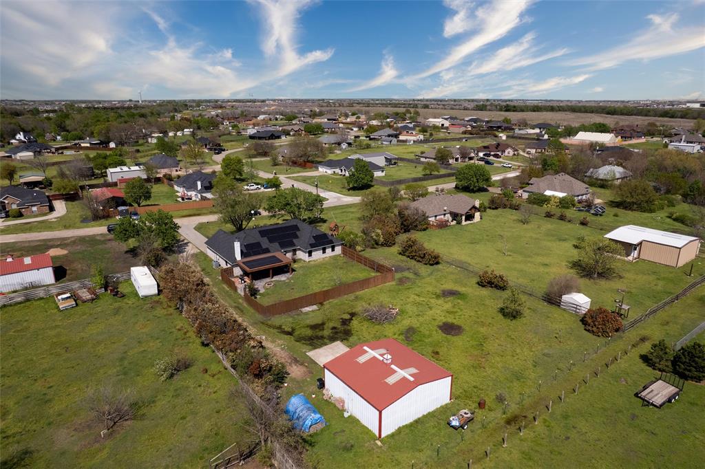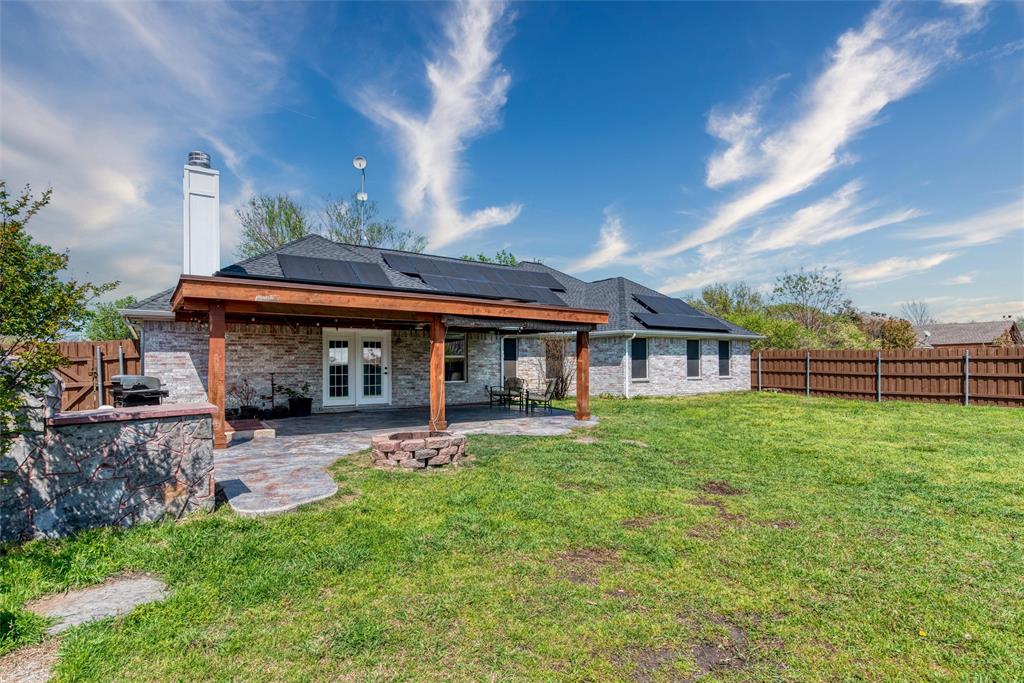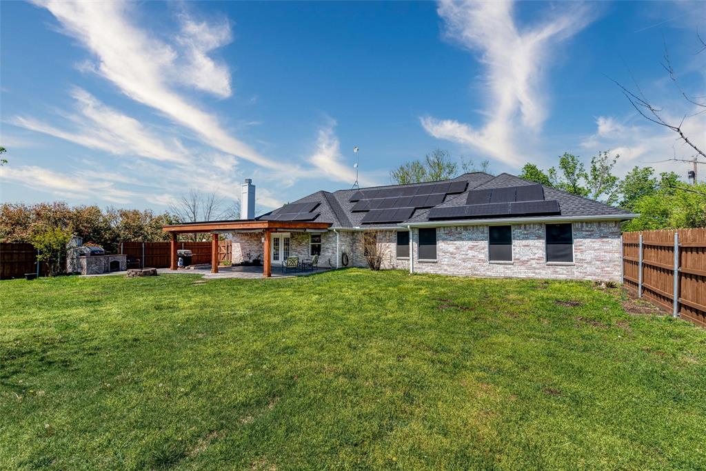 This well-maintained home has a great 30x30 insulated shop with 220v power, great for a workspace for hobbies and projects. The perfect outdoor space features a large covered back patio featuring a built-in smoker and wood grill—an ideal spot to enjoy backyard barbecues and neighborhood firework shows on the 4th of July and New Year's Eve. A grid-tied, paid-in-full, solar system helps you produce more energy than you consume in the summer, offering significant savings. Inside, natural light fills the home, and a large flex room provides endless possibilities—use it as a dining area, second living space, or game room. The updated kitchen and wood flooring create a warm, inviting atmosphere.The spacious primary suite includes a cozy sitting area or office space, giving you extra room to relax or work from home. 2 Pantries, one in kitchen and large pantry off laundry room. Recent updates include a new roof and gutters (2024) for peace of mind. Plus, a storm shelter on the back patio adds an extra layer of safety. Video doorbell, cameras, storage cabinets on left (east side) inside the shop, and play set all stay. BELOW MARKET RATE available through preferred lender. Love Joy ISD, McKinney ISD, and Frisco ISD all have open enrollment options.
