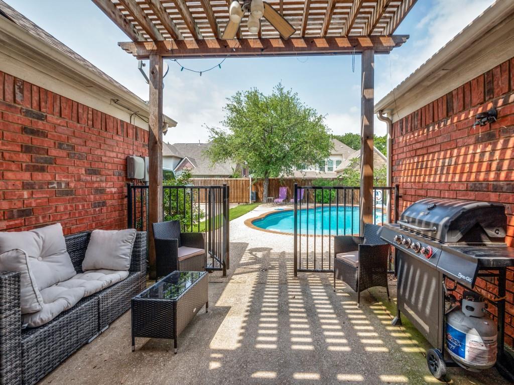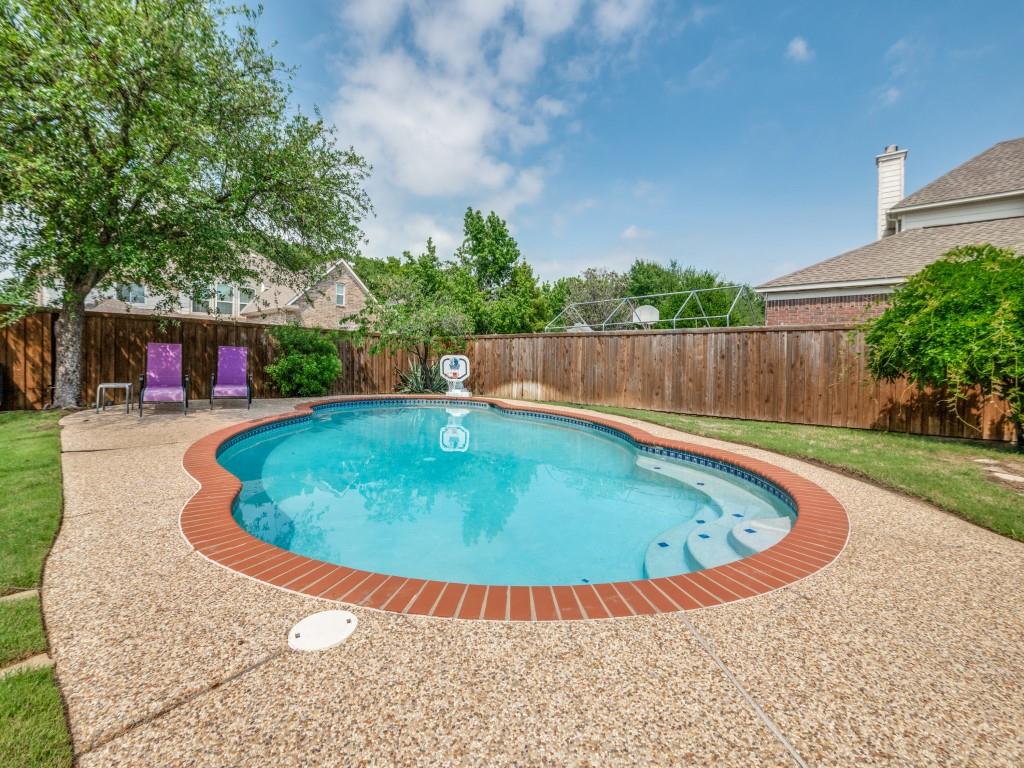 Highly desired Devonshire single story home in Coppell ISD. Step inside to find an open and inviting floor plan and a cozy living space. Office located at front of the home with glass french door could function as 4th bedroom. Remodeled master bath with double sink, separate shower and walk-in closets and frameless glass showers. Spacious master bedroom with vaulted ceiling. The true highlight of the home lies in the BACKYARD OASIS. Unwind in your private pool or enjoy year-round outdoor living on the covered porch. Whether its a quiet evening or a lively gathering, this space is designed for ultimate comfort and enjoyment. For added convenience, the property features an ELECTRIC GATE for extra security and privacy. Situated in an ideal location close to shopping, dining, and entertainment, this home provides tranquility and accessibility. Don't miss your chance to make this STUNNING property your own! Schedule a tour today! New Roof and gutters in June, 2025.