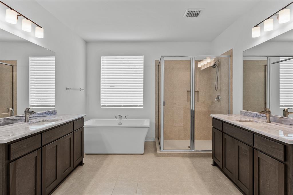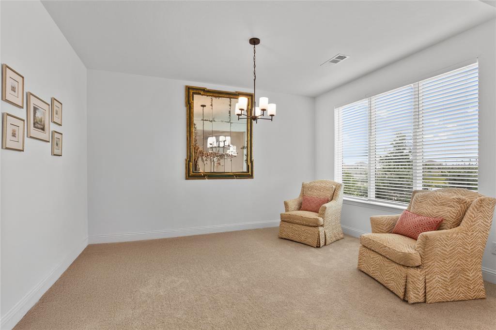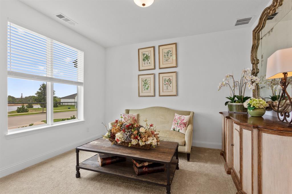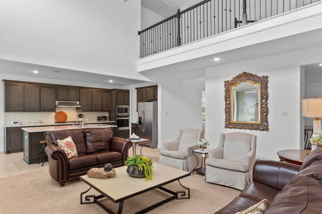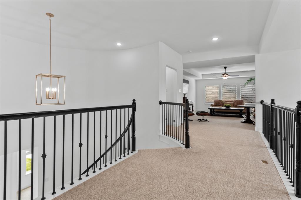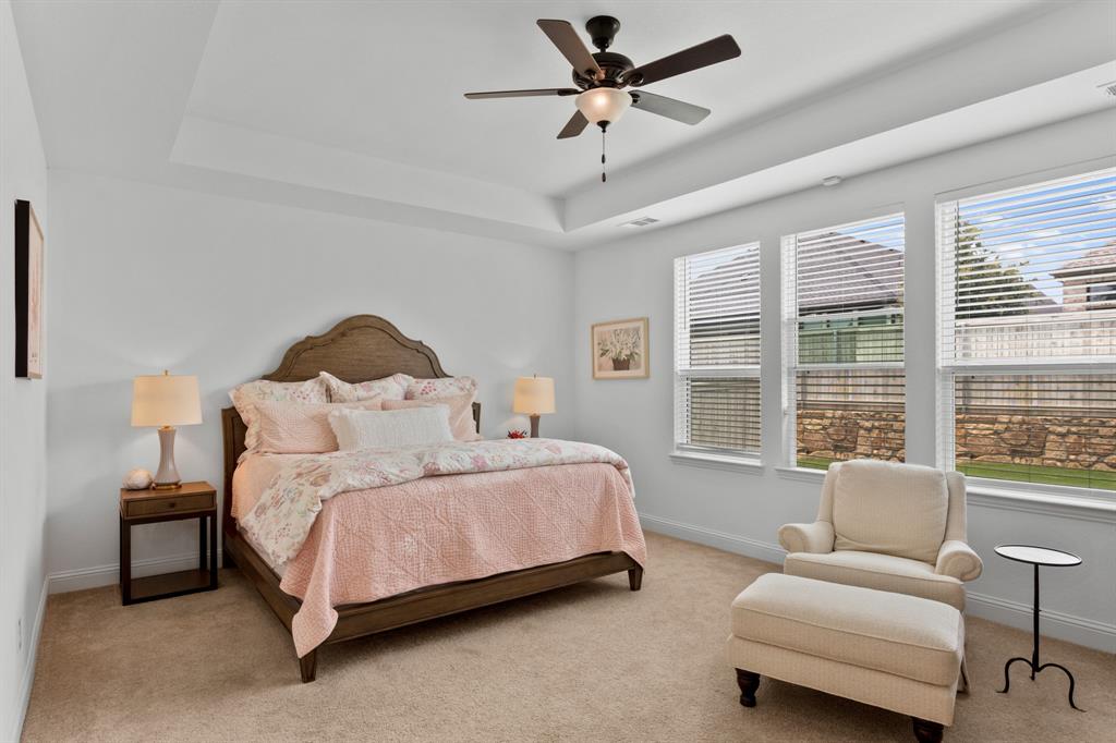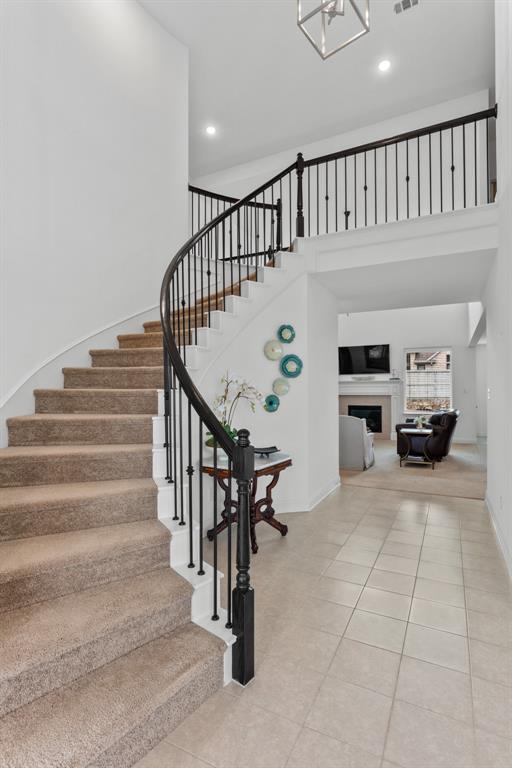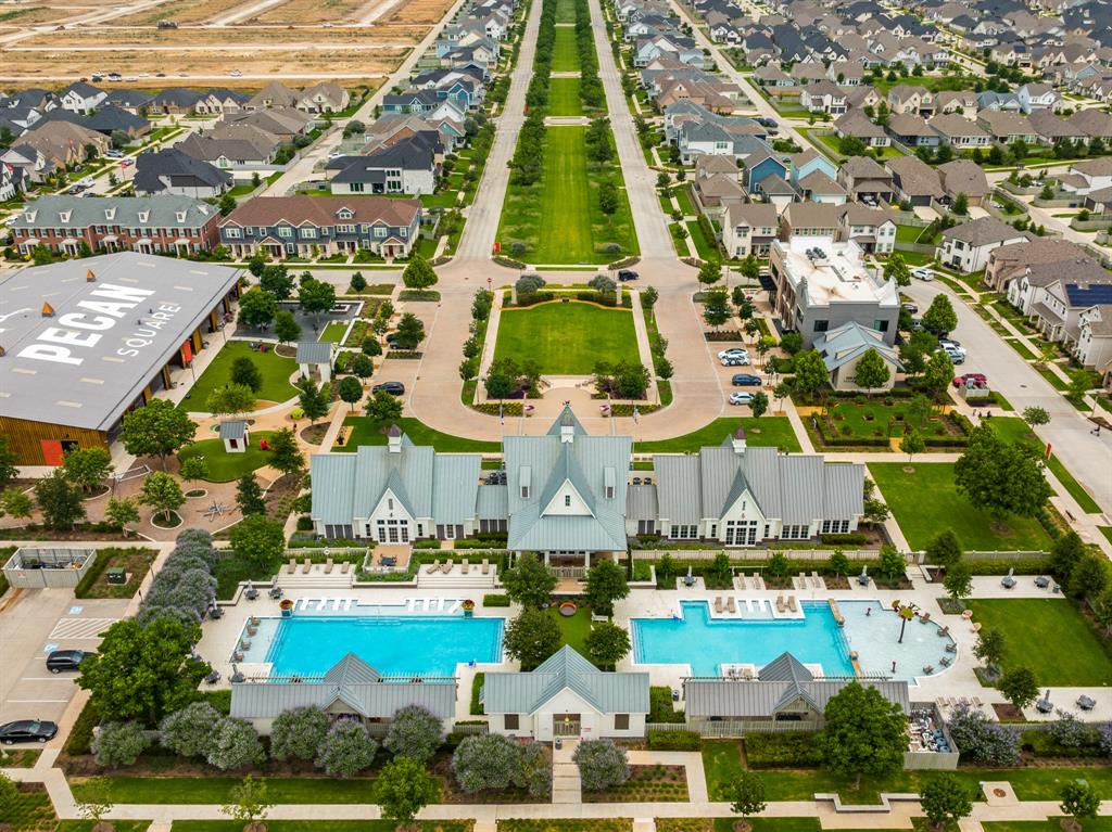 Exceptional Toll Brothers customized estate on a premium corner lot in the award-winning Pecan Square Community. Experience luxury as you pull up to this grand property with 3 car tandem garage & stunning landscaping directly across from a tranquil community pond with fountain & walking path, offering picture-perfect sunset views. This estate blends transitional modern elegance with everyday comfort, elevating everyday life & perfect for entertaining in style & living in luxury. From the moment you arrive, the home’s dramatic entryway with a wrought iron curved staircase & soaring ceiling, sets the tone for refined living & flawless execution. A thoughtfully designed & open floor plan with custom Italian exotic marble countertops throughout the kitchen & all full baths, delivering opulence in every detail. The main level boasts a spacious primary suite featuring dual vanities, an oversized shower, and a relaxing standalone tub. A centerpiece fireplace anchors the main living area, framed by a wall of windows that bathe the home in natural light & offer views of the expansive backyard with covered patio. The elevated kitchen is an entertainer’s dream, complete with high-end finishes, an oversized walk-in pantry & extensive cabinetry. Downstairs, there is a dedicated office space & 2 dining spaces that can be configured to meet your needs. Laundry with space for fridge. Ascending to the 2nd floor, find a large living area, 3 beds & 2 full baths. An open catwalk overlooking the main living room enhances the airy, flowing layout. Split-bedroom floor plan for maximum guest comfort & privacy. Don’t miss this rare opportunity to own a true masterpiece in one of North Texas’s most sought-after communities. Pecan Square was designed around a Town Square with unique, award-winning amenities with a nod to the past and an eye on the future from a splash pad and dog park to resort pools, state of the art fitness center and event spaces, this is a place of connection.
