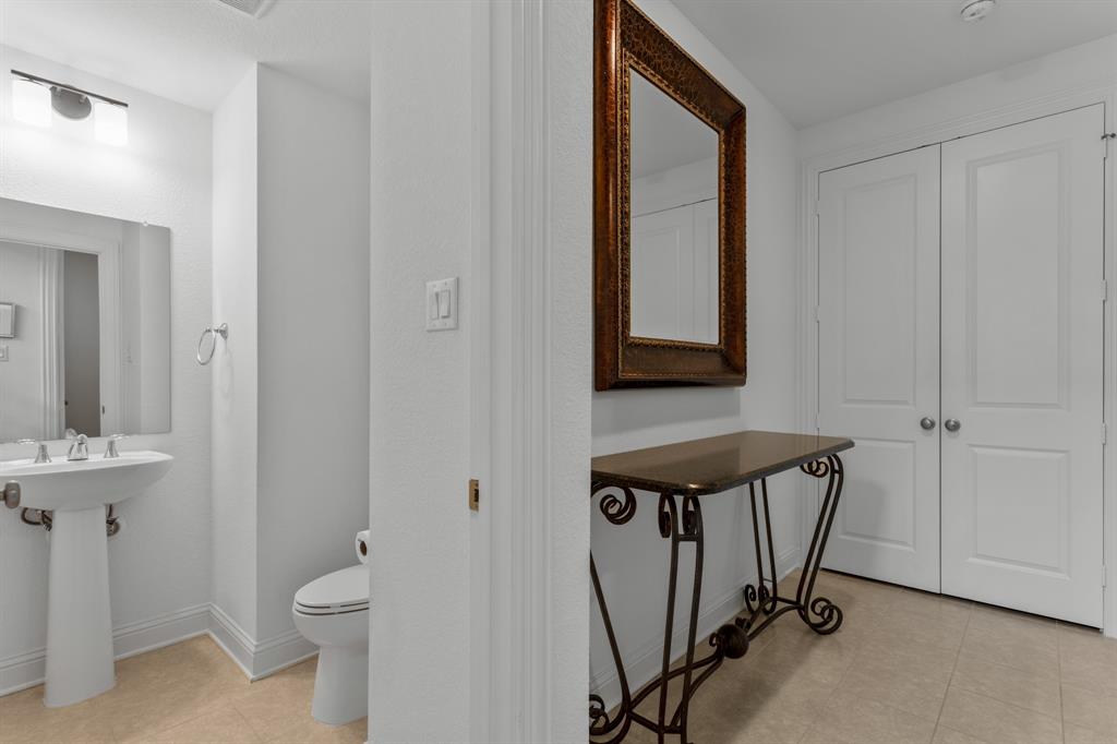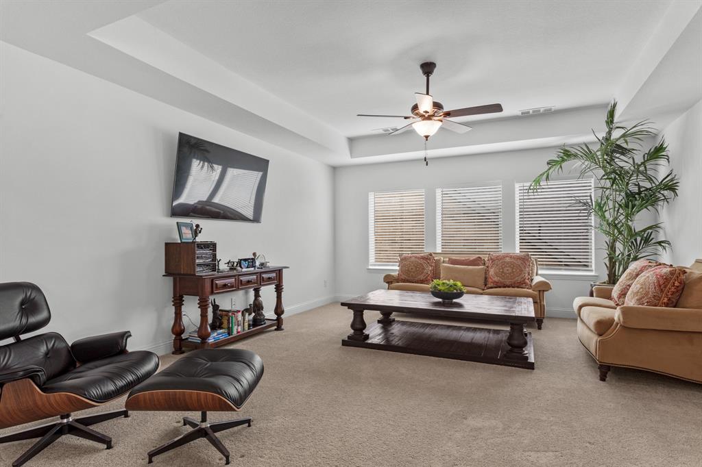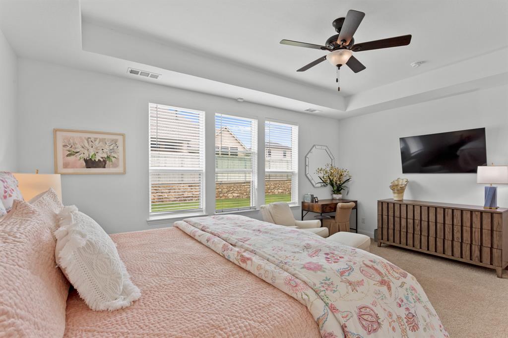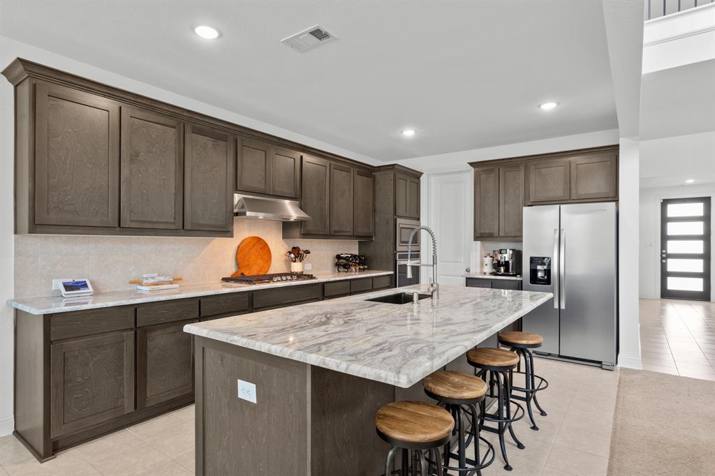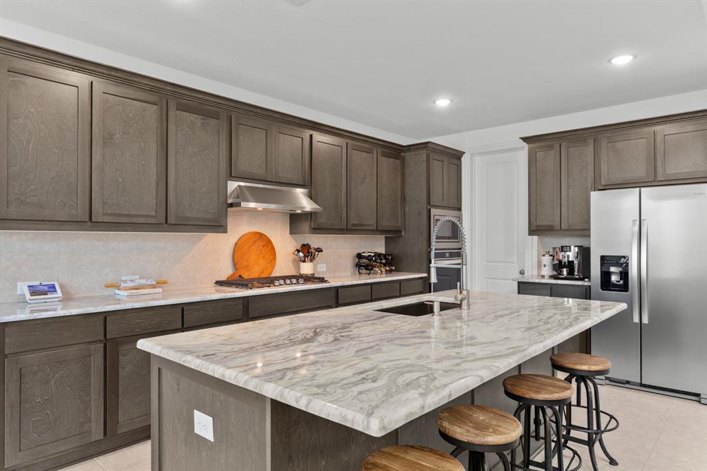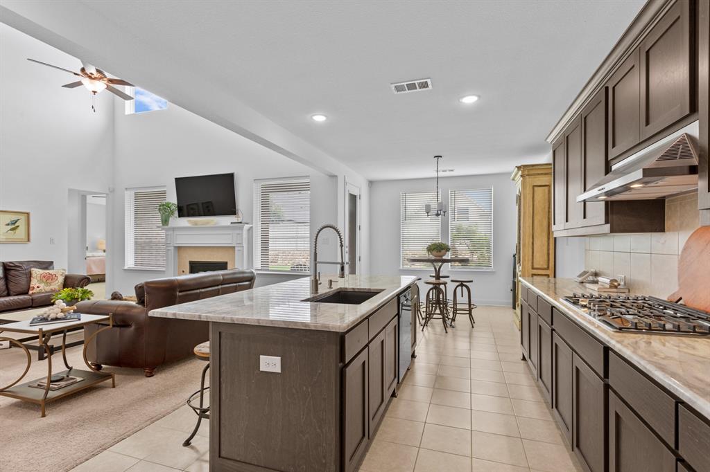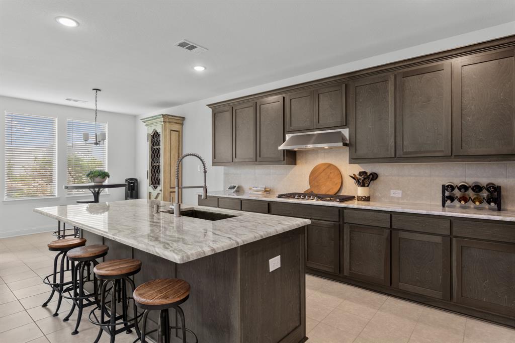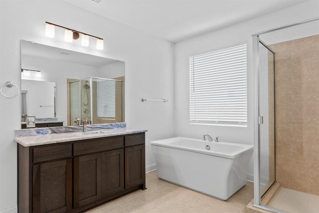 Exceptional Toll Brothers customized estate on a premium corner lot in the award-winning Pecan Square Community. Experience luxury as you pull up to this grand property with 3 car tandem garage & stunning landscaping directly across from a tranquil community pond with fountain & walking path, offering picture-perfect sunset views. This estate blends transitional modern elegance with everyday comfort, elevating everyday life & perfect for entertaining in style & living in luxury. From the moment you arrive, the home’s dramatic entryway with a wrought iron curved staircase & soaring ceiling, sets the tone for refined living & flawless execution. A thoughtfully designed & open floor plan with custom Italian exotic marble countertops throughout the kitchen & all full baths, delivering opulence in every detail. The main level boasts a spacious primary suite featuring dual vanities, an oversized shower, and a relaxing standalone tub. A centerpiece fireplace anchors the main living area, framed by a wall of windows that bathe the home in natural light & offer views of the expansive backyard with covered patio. The elevated kitchen is an entertainer’s dream, complete with high-end finishes, an oversized walk-in pantry & extensive cabinetry. Downstairs, there is a dedicated office space & 2 dining spaces that can be configured to meet your needs. Laundry with space for fridge. Ascending to the 2nd floor, find a large living area, 3 beds & 2 full baths. An open catwalk overlooking the main living room enhances the airy, flowing layout. Split-bedroom floor plan for maximum guest comfort & privacy. Don’t miss this rare opportunity to own a true masterpiece in one of North Texas’s most sought-after communities. Pecan Square was designed around a Town Square with unique, award-winning amenities with a nod to the past and an eye on the future from a splash pad and dog park to resort pools, state of the art fitness center and event spaces, this is a place of connection.