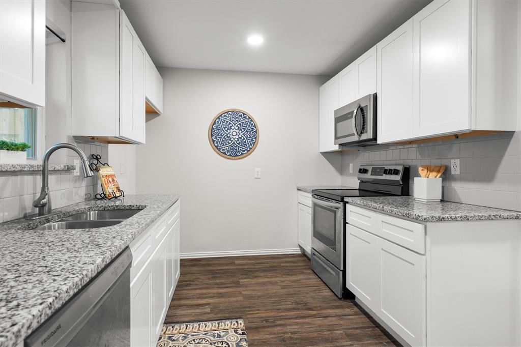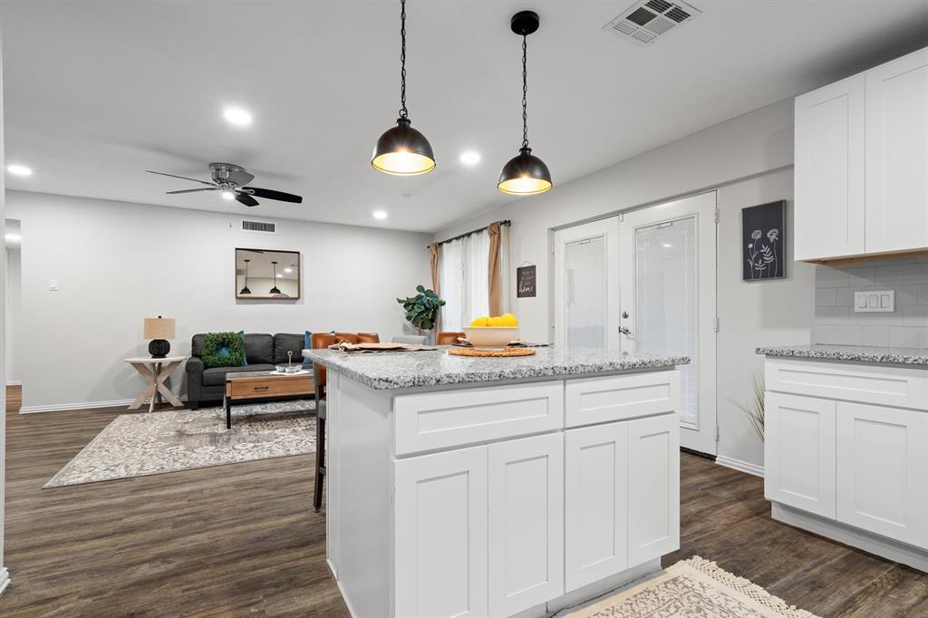Amazing updated 4-bedroom, 2-bath home in the heart of Lewisville. This updated property offers an open concept kitchen with an island, newer HVAC, large backyard with tons of parking. Updates throughout include fresh paint, LED lighting, a newer primary shower, updated stainless steel appliances, and new wood fence. The garage conversion can be used for an office, playroom, or a spare bedroom with closet or can be easily converted back to a garage. The backyard is spacious with plenty of mature trees and a good size shed. The fence has been upgraded to an 8 foot with large doors near the alley for access. There is plenty of room for gardening, pets, or outdoor activities. Major improvements include new windows for improved energy efficiency and a refreshed exterior. Located in a quiet, established neighborhood with mature trees. Conveniently located minutes from I-35E, shopping centers, restaurants, and parks.