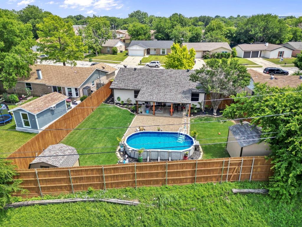 A WELL TAKEN CARE OF BEAUTIFUL family home nestled in the picturesque city of Watauga, Texas. As you approach the home, you'll immediately notice the well-maintained exterior featuring a beautiful brick facade and a manicured front lawn. The backyard is a dream oasis with a beautiful pool and patio with 2 large storage sheds. The front lawn comes equipped with an automated sprinkler system and plenty of uplighting. The home offers three generously sized bedrooms and two completely remodeled bathrooms. All NEW kitchen appliances! Solar screens, smart thermostat, New HVAC in 2020, new smart water heater 4 yrs ago and New Roof 2019. Above ground, chemical free pool is 4 yrs old. Conveniently located in Watauga, this property offers easy access to a range of amenities from shopping centers, restaurants, and entertainment options to parks, schools, and medical facilities, everything you need is just a short distance away. Patio Refrigerator stays and Deep clean and pool clean before closing! INVESTORS WELCOME!!