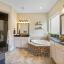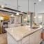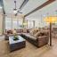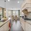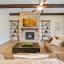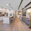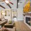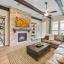 The heart of the home is the expansive family room featuring a dramatic stacked stone fireplace that extends to the ceiling, accented with custom wood beams. The open-concept kitchen is a chef’s dream with upgraded cabinetry, a double oven, and a large island perfect for entertaining.