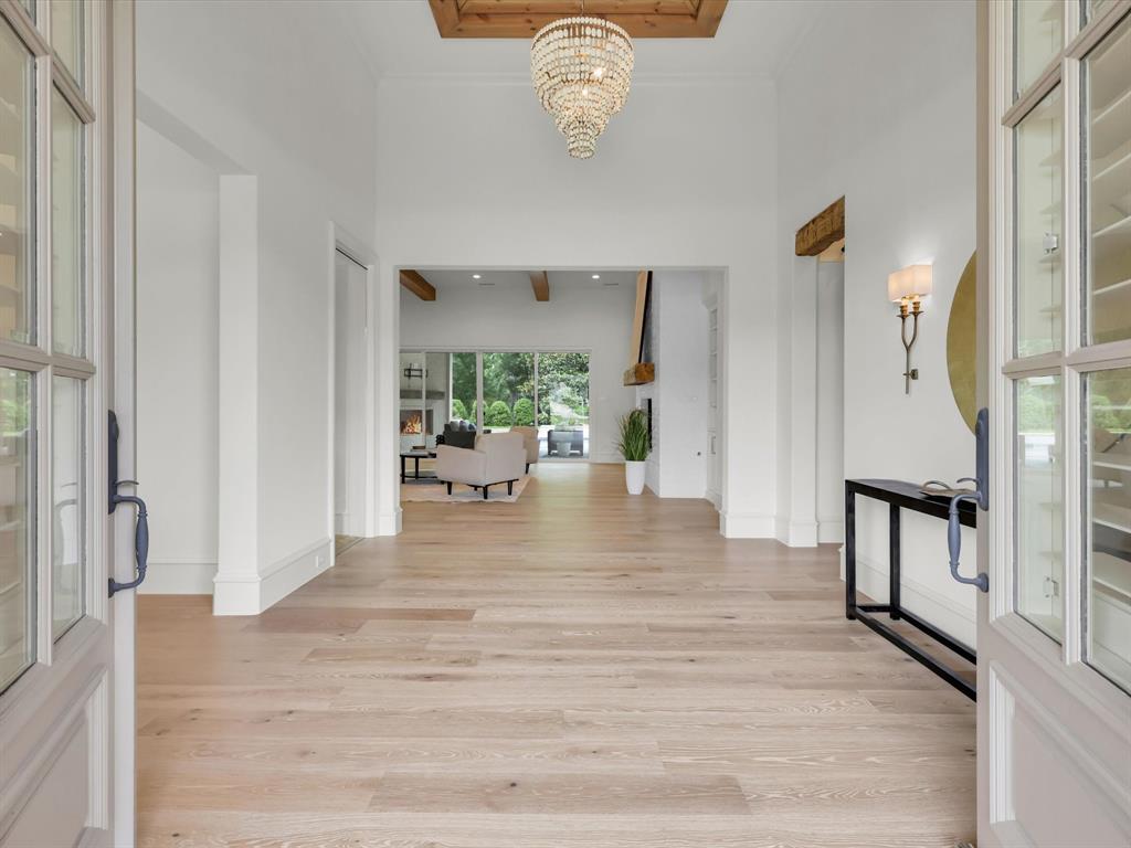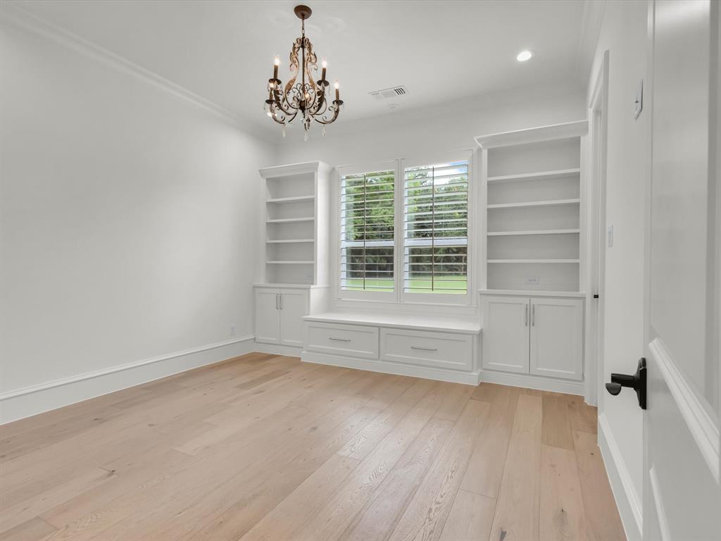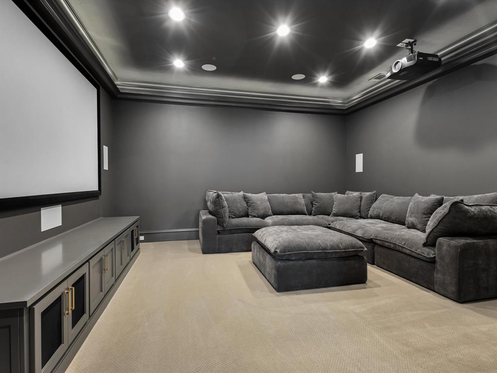 Tucked behind the gates of one of Celina’s most prestigious communities, Hidden Creeks Pointe, this one-of-a-kind estate welcomes you with timeless Southern charm and high-end sophistication. A grand brick-front porch with flickering gas lanterns sets the tone for the exquisite craftsmanship that lies beyond. Built by renowned custom builder Dave R. Williams, this masterpiece spans 1.75 acres and offers 5 beds, 7 baths and designer details at every turn. Oak floors, custom wood trim, and a tongue-and-groove Foyer ceiling elevate the elegance. The Chef’s Kitchen is adorned with exposed brick, wood beams, premium appliances, built-in fridge, two dishwashers, a full Scullery, massive pantry + Mudroom with brick flooring. A glass-enclosed Wine Room offers a dramatic focal point, visible from all living areas. The open-concept Great Room stuns with ceiling beams, custom built-ins, and panoramic sliders leading to the Outdoor Paradise. The Private Study features floor-to-ceiling shelving + custom millwork. Each bedroom offers an en-suite bath + spacious walk-in closet. The luxurious Primary Suite offers a vaulted ceiling adorned with beams, a spa-like bath with soaking tub, dual vanities, built-in coffee bar, boutique-style closet, and a private home gym with serene pool views. The oversized Laundry connects to the primary closet with plentiful cabinetry and sink for ultimate convenience. A fully equipped Home Theater includes a wet bar + beverage fridge. The Texas basement attic provides incredible storage and ease. Step outside to your Resort-Style Backyard equipped with motorized shades, overhead heaters, a gorgeous stone fireplace, covered dining space, manicured lawn, mature trees + total privacy with tranquil creek views. The heated and chilled Pool + Spa offer beautiful water features. Multiple lounge areas create the ultimate retreat. Impeccably designed for entertaining + everyday luxury, this home offers an elevated lifestyle in every detail; true Texas luxury.