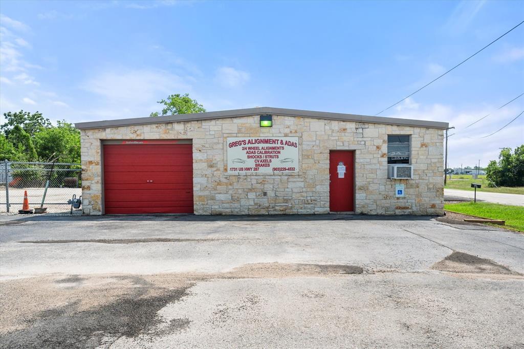 Prime Commercial Opportunity in a high-traffic, high-visibility location on Highway 287 at Interstate 45 in Corsicana, Texas! This 4000 sq foot shop sits on a prominent corner lot, offering excellent visibility and easy accessibility for both local and interstate highway traffic. The property features 7 garage doors, 4 of them being oversized garage doors, ideal for maximizing workflow and accommodating bays with multiple vehicles simultaneously. Inside, you'll find a dedicated office area perfect for administrative tasks or customer reception, along with a spacious work area with tall ceilings. The layout of this building allows for a versatile range of automotive or industrial operations. Whether you're expanding your current business or launching a new venture, this high-exposure location offers the visibility, access, and infrastructure to support your success. Don’t miss this rare opportunity to own a premium commercial property in the heart of Corsicana!