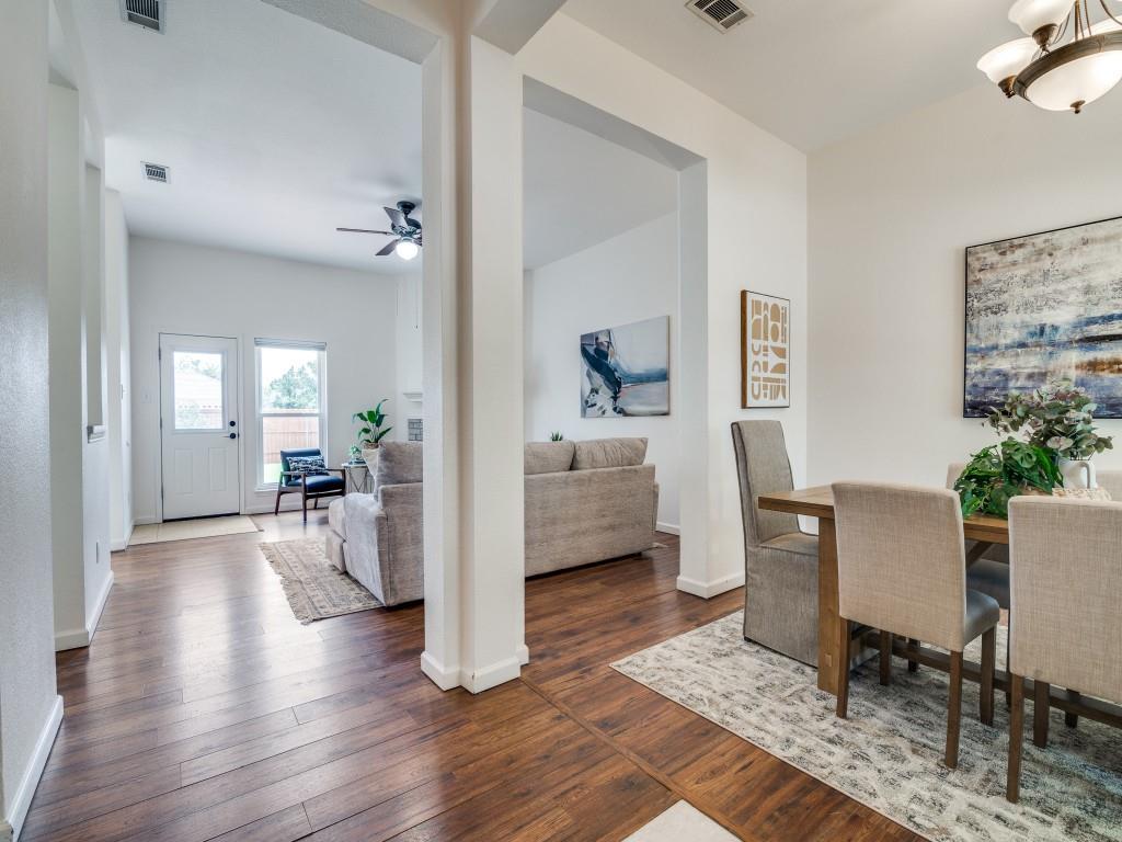 This home on Bryn Mawr is a beautifully maintained SINGLE-STORY HOME on a spacious CORNER LOT in a quiet, established neighborhood in ROWLETT, TX. This charming home offers a perfect blend of MODERN UPDATES, FUNCTIONAL DESIGN, and OUTDOOR POTENTIAL—ideal for anyone looking for comfort, style, and long-term VALUE! Step inside to an OPEN FLOOR PLAN with TALL CEILINGS and updated WIDE-PLANK LAMINATE WOOD FLOORING that adds warmth and character throughout the main living spaces. LARGE, UPDATED WINDOWS bring in tons of NATURAL LIGHT while improving ENERGY EFFICIENCY and helping to keep utility costs in check. The main living area features a COZY CORNER WOOD-BURNING FIREPLACE and flows seamlessly into the dining and kitchen areas—perfect for both entertaining and everyday living. The PRIVATE PRIMARY SUITE includes a RECENTLY REMODELED BATHROOM with a WALK-IN SHOWER, modern finishes, and a FURNITURE-STYLE VANITY—making it a relaxing retreat you’ll love coming home to. Two additional bedrooms share a full hall bath, providing plenty of room for family, guests, or a home office. Out back, the LARGE BACKYARD is a blank canvas ready for your vision—garden, play space, or outdoor entertaining area. NO HOA gives you the freedom to create the backyard of your dreams. Recent FOUNDATION WORK was professionally completed and comes with a TRANSFERABLE LIFETIME WARRANTY for peace of mind. Other valuable updates include a NEWER HVAC SYSTEM and ENERGY-EFFICIENT WINDOWS throughout. Conveniently located near LAKE RAY HUBBARD, local SHOPPING, DINING, and major commuting routes like the PRESIDENT GEORGE BUSH TURNPIKE, this MOVE-IN READY home delivers the space, comfort, and LOCATION today's buyers want. Schedule your private showing today—you won’t want to miss this one!