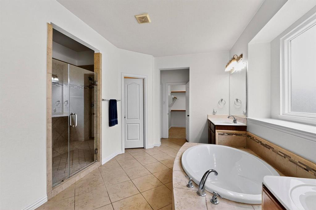 MOVE IN READY HOME WITH NEW PAINT, NEW FLOORING & NEW WINDOWS. PRICED TO SELL! This home features brand new windows throughout with a 10-year transferable warranty ($44K value), new carpet and paint, steel front and back doors, water softener system, new sod, and updated kitchen appliances including a dishwasher and microwave. Located in the desirable Ridgeview Farms community, this spacious home boasts an open-concept layout with a formal dining area, a flexible front nook perfect for an office or study, a cozy living room, sunny breakfast area, and a large kitchen with gas cooktop, center island, and ample cabinetry. The downstairs primary suite is a peaceful retreat with a soaking tub, walk-in shower, dual vanities, and large closet, while upstairs offers a versatile game room flex space and three additional bedrooms. Enjoy access to walking trails, a neighborhood pool, park, and convenient proximity to major highways—easy to show, bring your buyers!