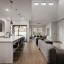 Step inside to an open-concept floor plan flooded with natural light and adorned with elegant, contemporary lighting throughout. The sleek European-style kitchen features minimalist cabinetry, luxurious quartz countertops, and an expansive island perfect for entertaining. A spacious home office is accented with custom-built walnut cabinetry, offering a warm and refined workspace.