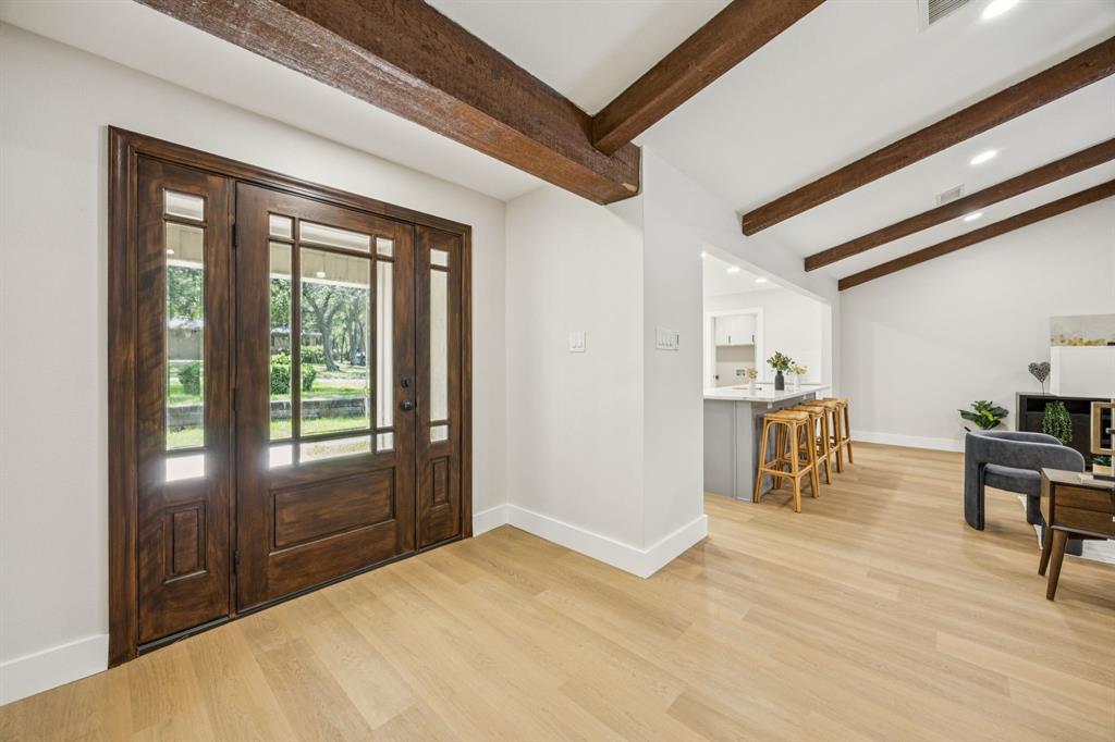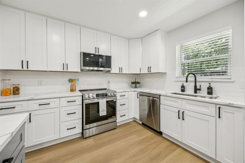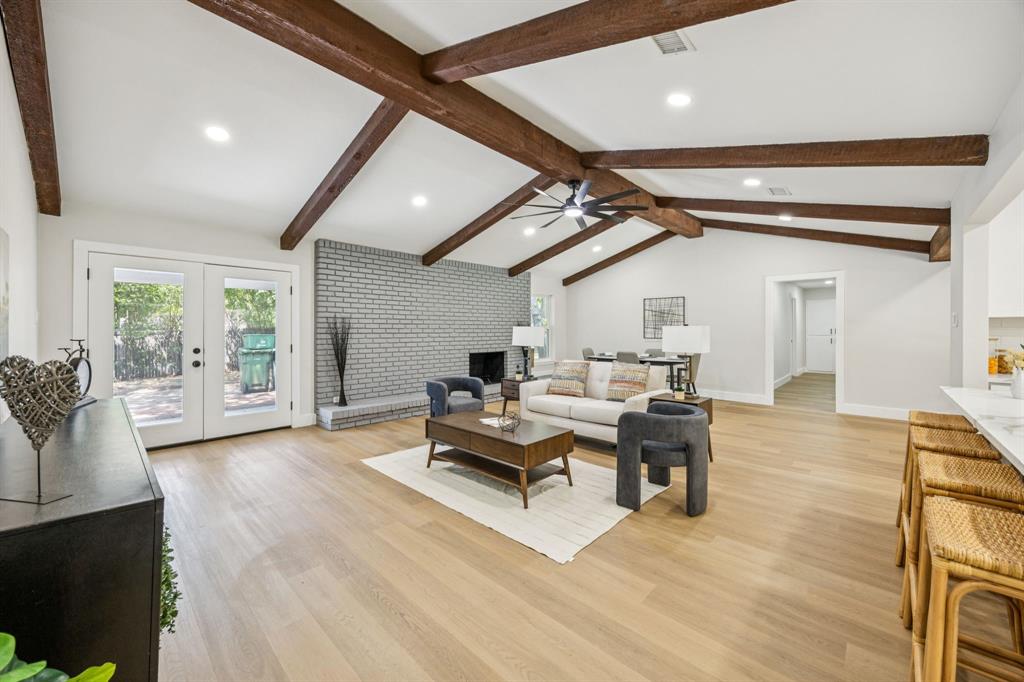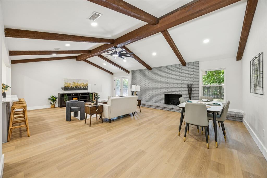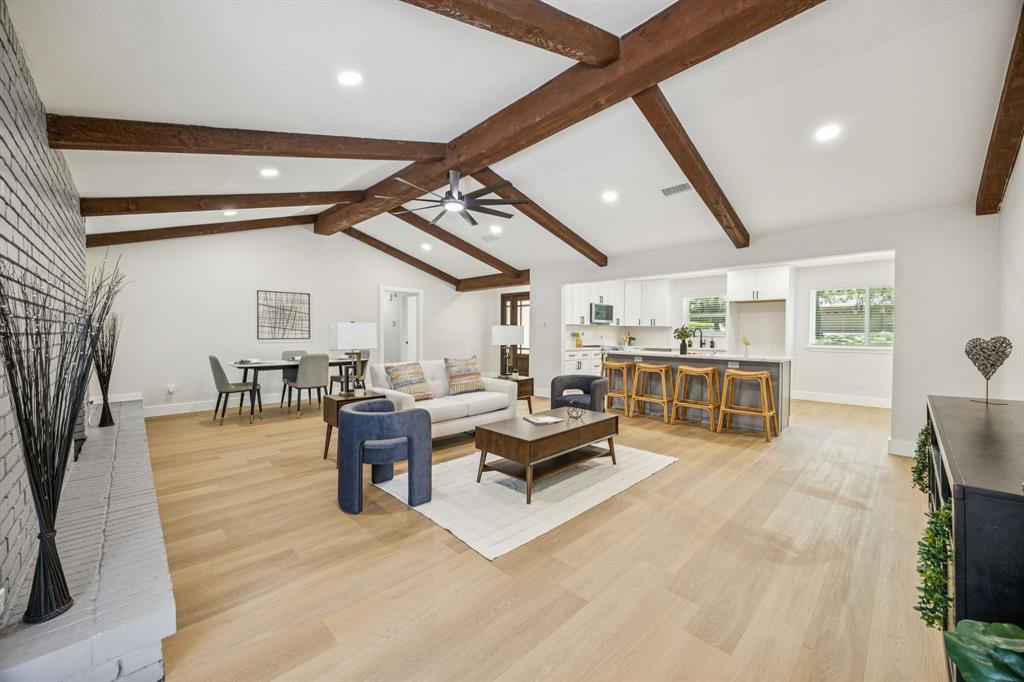 The open floor plan showcases brand-new luxury vinyl plank flooring, fresh interior and exterior paint, stylish new fixtures, and a bright, inviting layout that flows seamlessly into the stunning modern kitchen. Highlights include soft-close cabinetry, quartz countertops, stainless steel appliances, a large center island, and elegant finishes throughout.