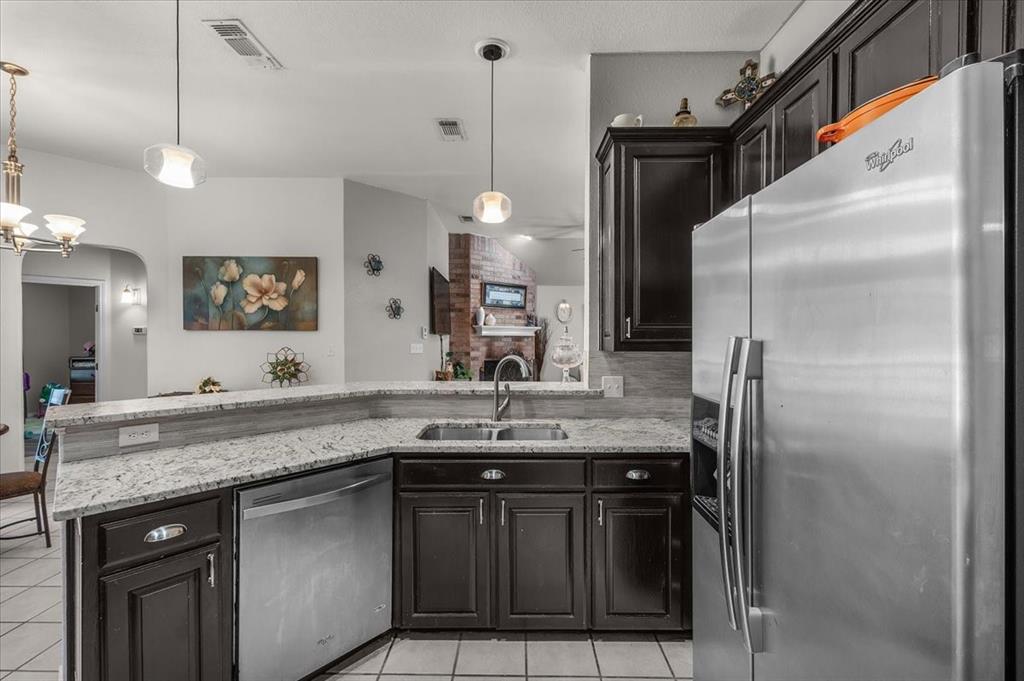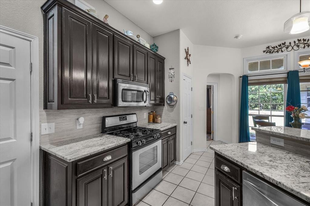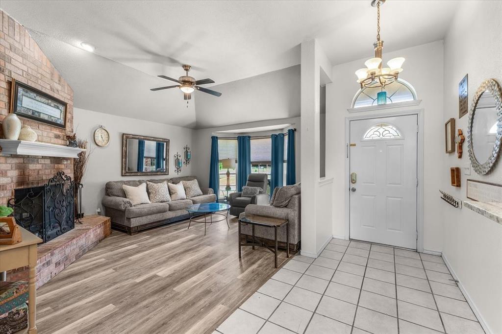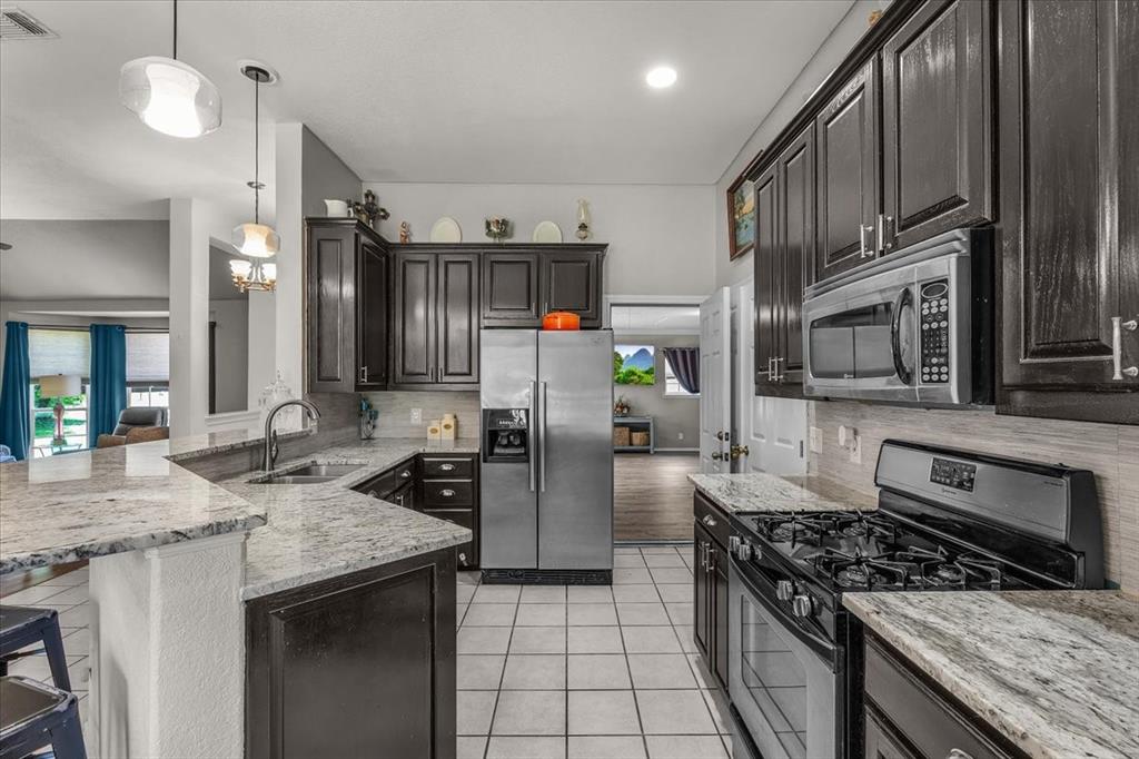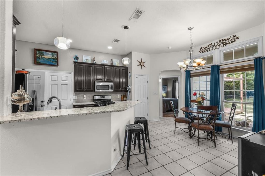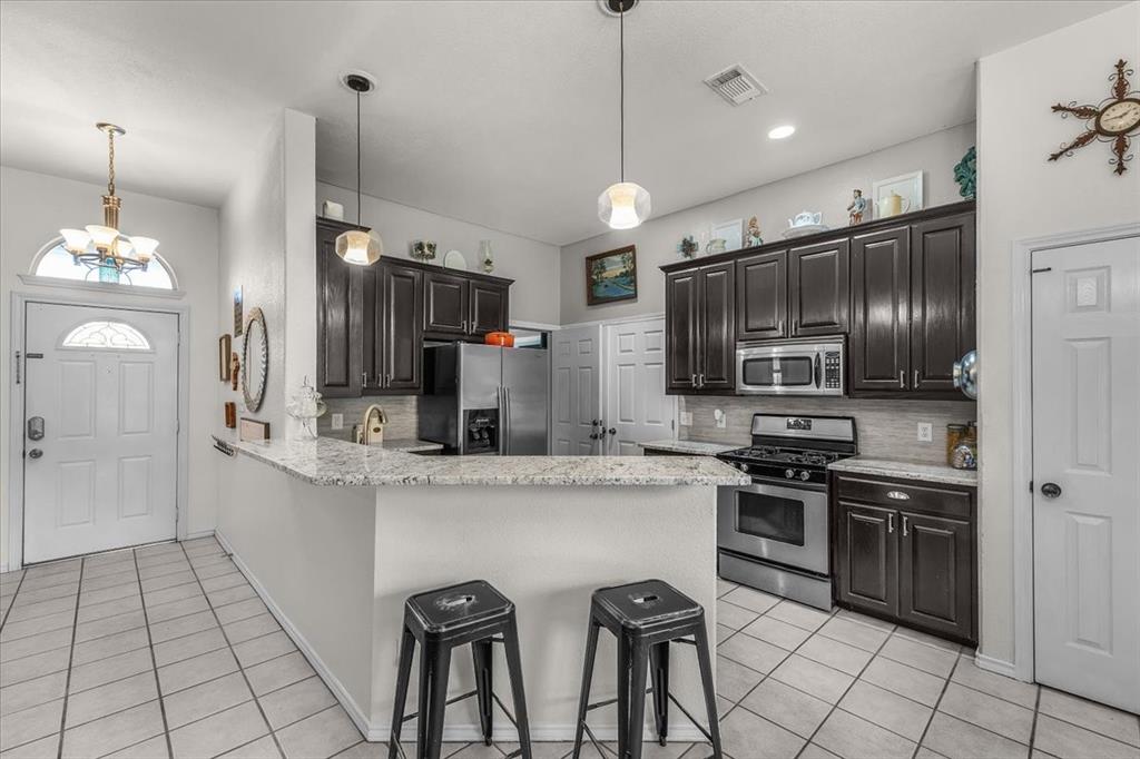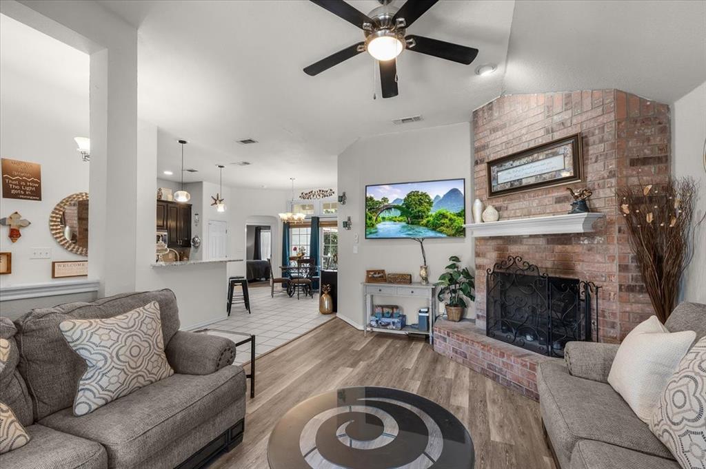 Inside, you'll find an inviting open floor plan with two spacious living areas, perfect for both everyday living and gatherings. The home boasts stylish upgrades including granite countertops and luxury vinyl plank flooring with a warm wood-look finish that adds a touch of elegance throughout. The kitchen is open and functional with granite counters, gas burning stove & stainless steel appliances that seamlessly connects to the living and dining areas for a true heart-of-the-home feel.