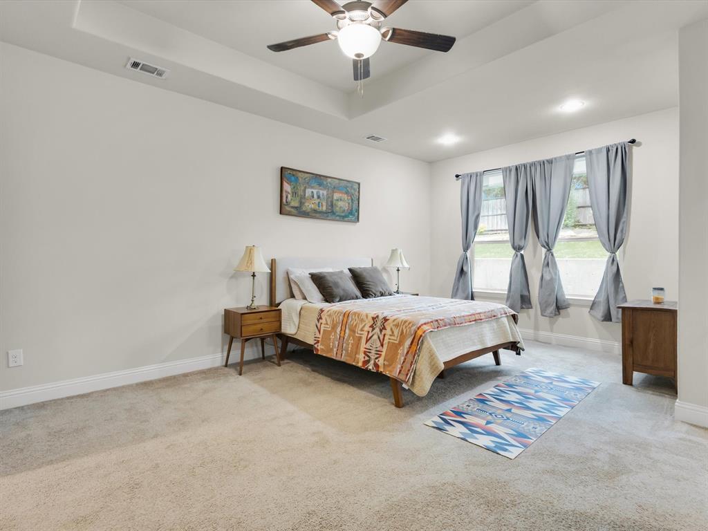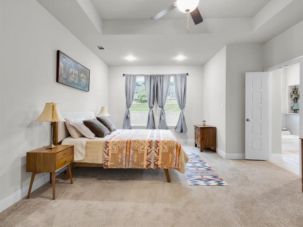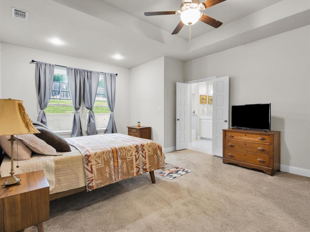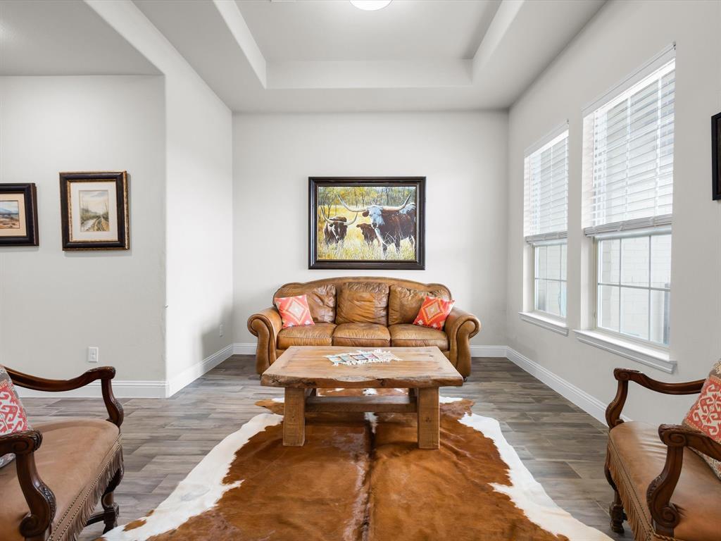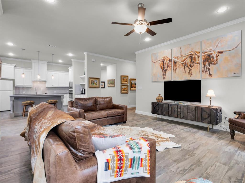 Enjoy the views from this beautiful turnkey decorator home in the highly desirable Trace Ridge neighborhood in Weatherford. This 3 bedroom, 2.5 bath plus bonus room home is in a stellar location convenient to commutes, as well as minutes from shopping, dining, grocery stores, Weatherford College, and WISD schools. A few great features include: custom window treatments throughout, black out curtains in all 3 bedrooms, stunning cast stone fireplace, light and bright island kitchen with separate coffee bar, walk-in pantry, gorgeous backsplash and modern finishes. Large master suite, butlers pantry, side entry extra long garage, quarter acre sprinkler system, landscaped and fenced. Gated front porch area. NO HOA-bring your boat or RV! Home can be purchased for $449,999 with all furniture, decor (excluding oil paintings) and furnishings for $10,000