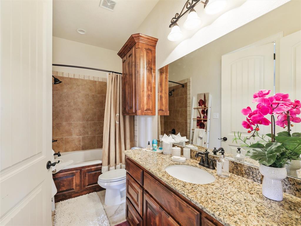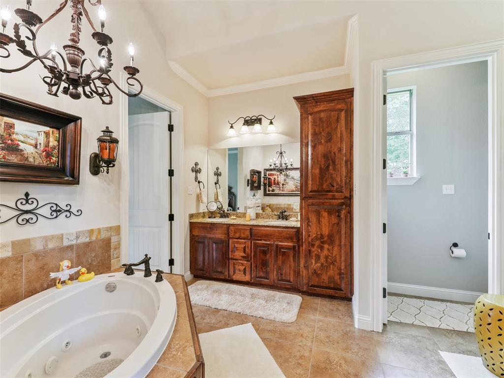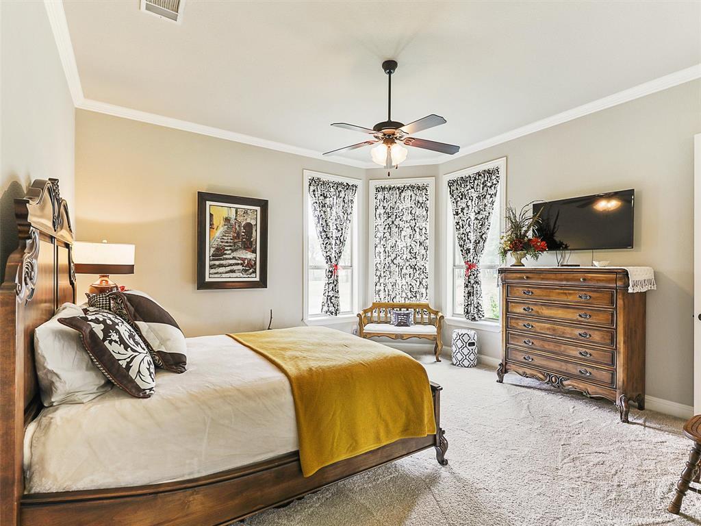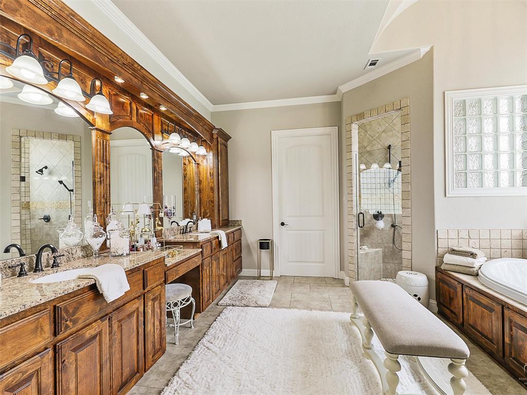 Welcome to this exquisite custom estate designed for impressive entertaining. Nestled on over an acre, this home sits in a cul-de-5sac that is partially wooded and home to several natural species. This meticulously maintained home boasts 2 primary bedrooms with spacious ensuite bathrooms and a dreamy California closet. Bonus room currently serves as a bedroom but can easily be converted into an office with huge windows overlooking the front yard. Designed for both elegance and functionality, the home includes a Chef's gourmet kitchen with double ovens, 5 burner butane stove, and double sinks. Countless upgrades include immaculate hard wood floors, new plush carpet, and executive built ins. More than ample living space for relaxing and entertaining indoors or outdoors. Bask in country living while still being close to premier shopping. Don't miss the opportunity to own this breathtaking estate.