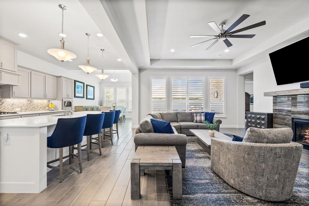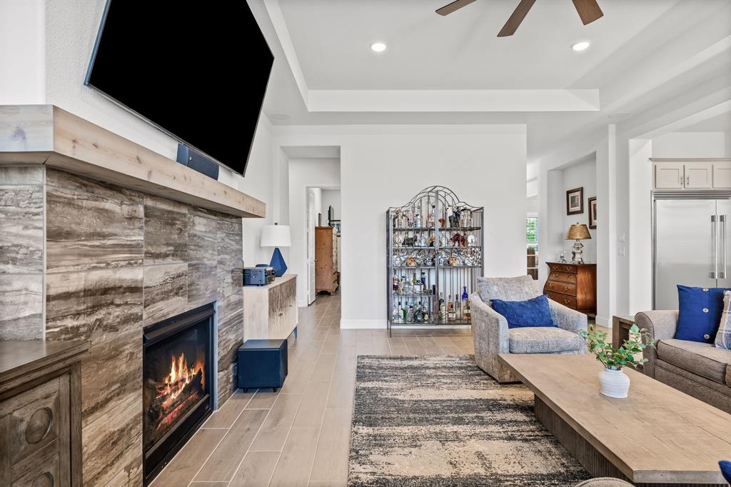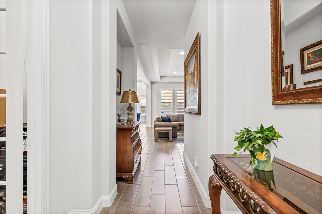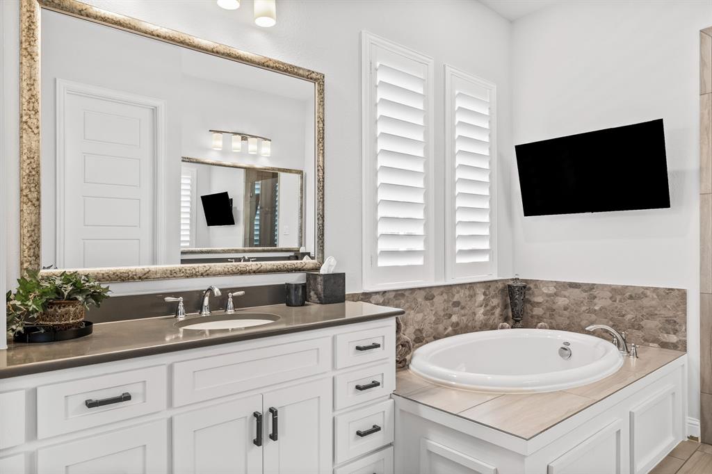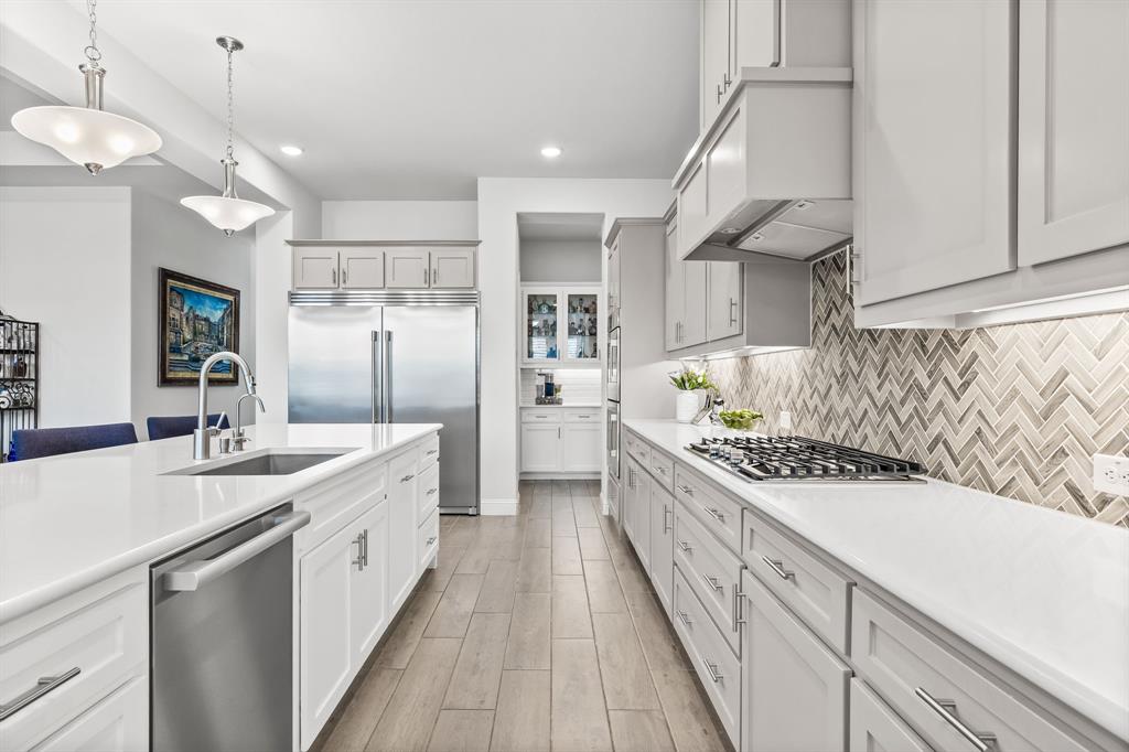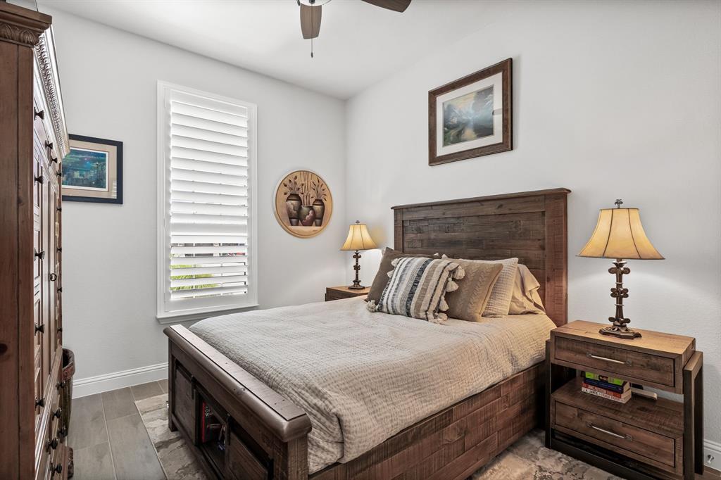 Beautifully upgraded single story home built by Drees Custom Homes sits on quarter acre lot with fabulous outdoor living and plenty of room for a pool! The floorplan features 3 bedrooms, 3 baths, dedicated study, spacious family room with electric fireplace and gorgeous kitchen including stainless steel appliances, a gas cooktop, double ovens, built-in, oversized Frigidaire fridge, quartz countertops, and a butler’s pantry. Spacious primary suite boasts an oversized shower, soaking tub, dual vanities, and Toto toilets throughout the home. Finish out includes custom shutters throughout, no carpet, surround sound wiring, extended cabinetry, and numerous upgrades. Outdoor living has flagstone patio, built-in grill, ceiling fan, and extended fencing for added yard space. Front and rear planters. The two car garage is oversized with lots of storage space in addition to a 3rd car garage! Additional highlights include lots of storage closets throughout home, mud bench, coffee bar, laundry room with washer & dryer included, and tons of natural light. Walk to the elementary school and nearby greenbelt. A rare find with thoughtful upgrades and exceptional livability! Easy access to local freeways and the new PGA headquarters.