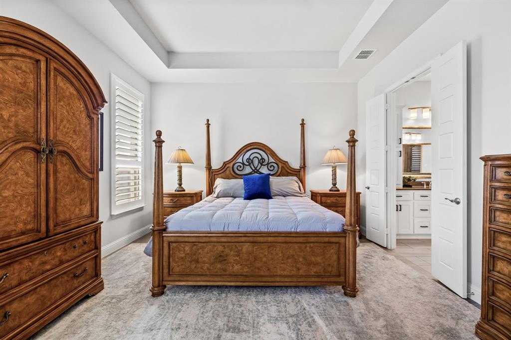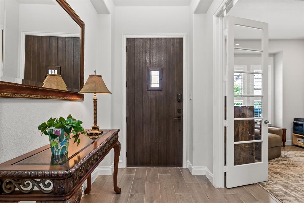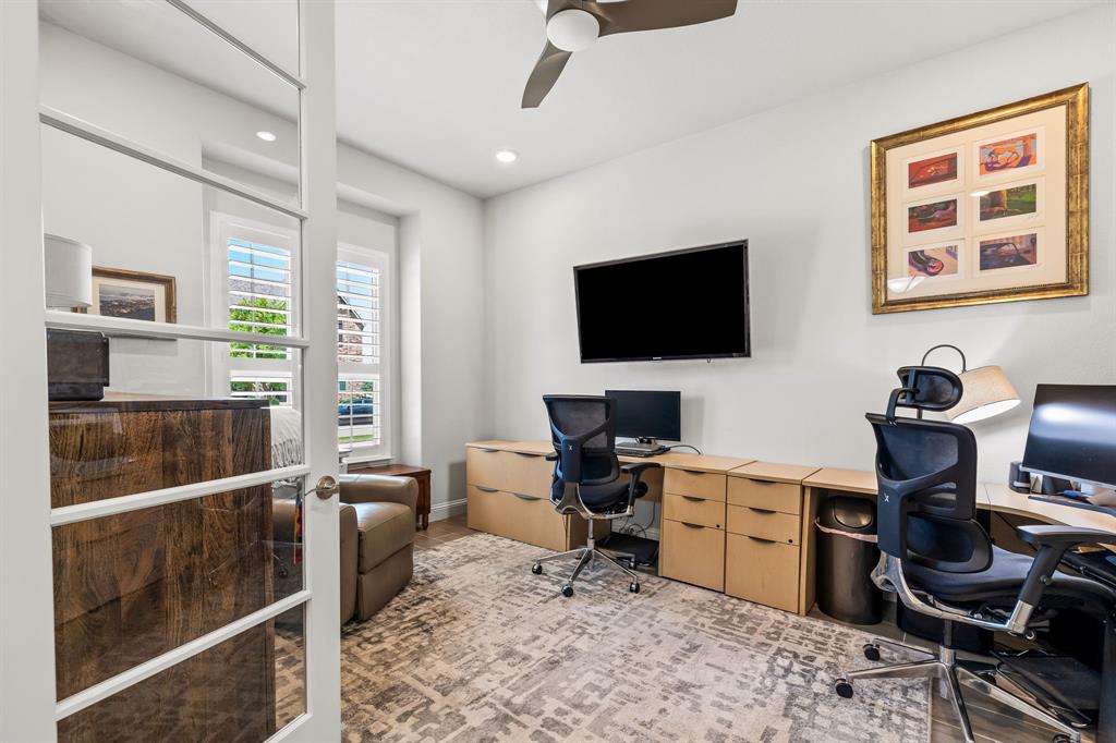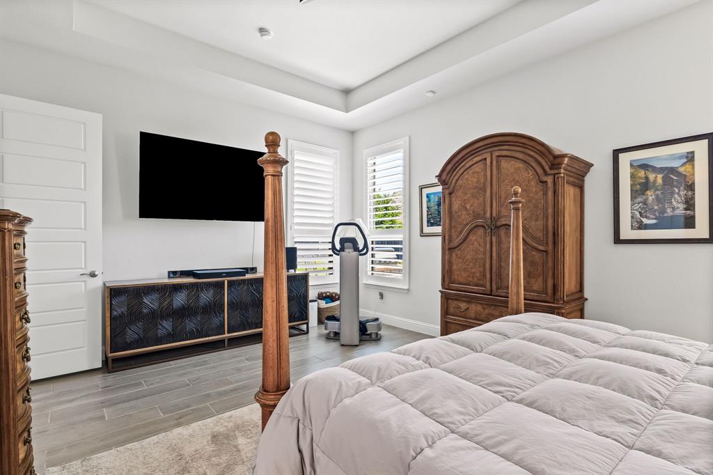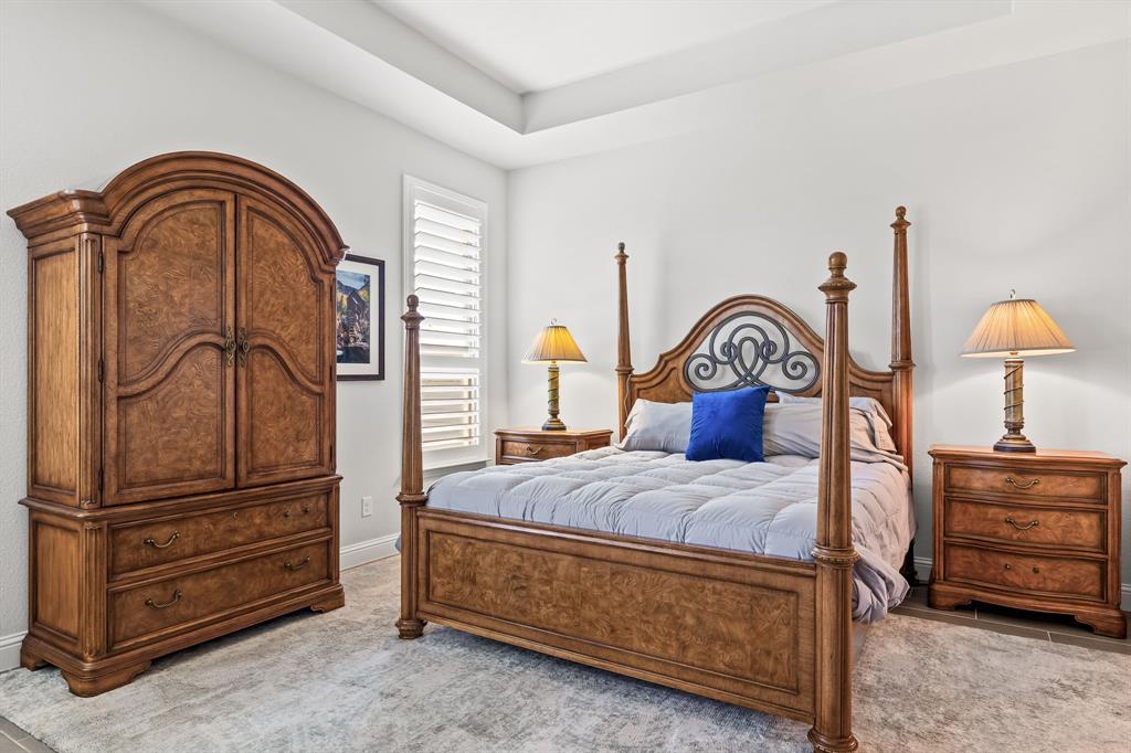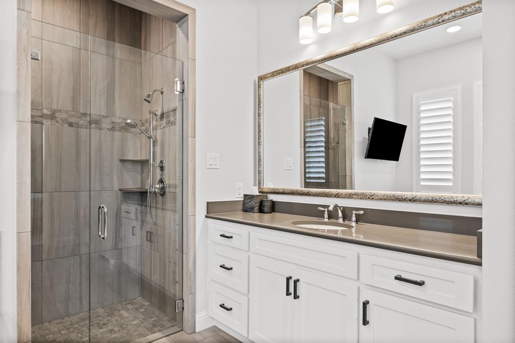 Beautifully upgraded single story home built by Drees Custom Homes sits on quarter acre lot with fabulous outdoor living and plenty of room for a pool! The floorplan features 3 bedrooms, 3 baths, dedicated study, spacious family room with electric fireplace and gorgeous kitchen including stainless steel appliances, a gas cooktop, double ovens, built-in, oversized Frigidaire fridge, quartz countertops, and a butler’s pantry. Spacious primary suite boasts an oversized shower, soaking tub, dual vanities, and Toto toilets throughout the home. Finish out includes custom shutters throughout, no carpet, surround sound wiring, extended cabinetry, and numerous upgrades. Outdoor living has flagstone patio, built-in grill, ceiling fan, and extended fencing for added yard space. Front and rear planters. The two car garage is oversized with lots of storage space in addition to a 3rd car garage! Additional highlights include lots of storage closets throughout home, mud bench, coffee bar, laundry room with washer & dryer included, and tons of natural light. Walk to the elementary school and nearby greenbelt. A rare find with thoughtful upgrades and exceptional livability! Easy access to local freeways and the new PGA headquarters.