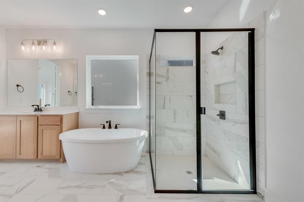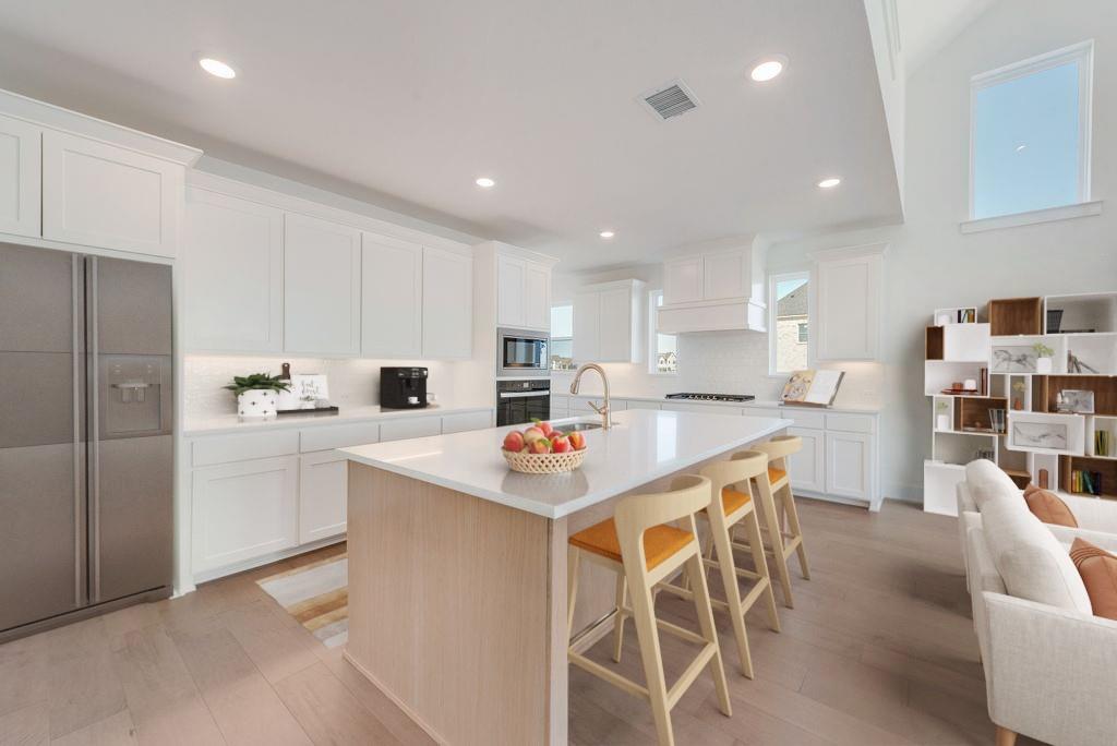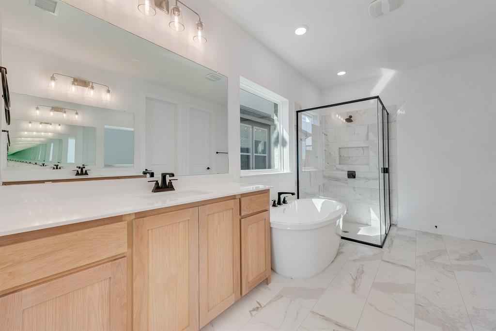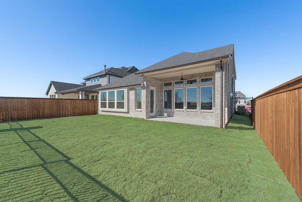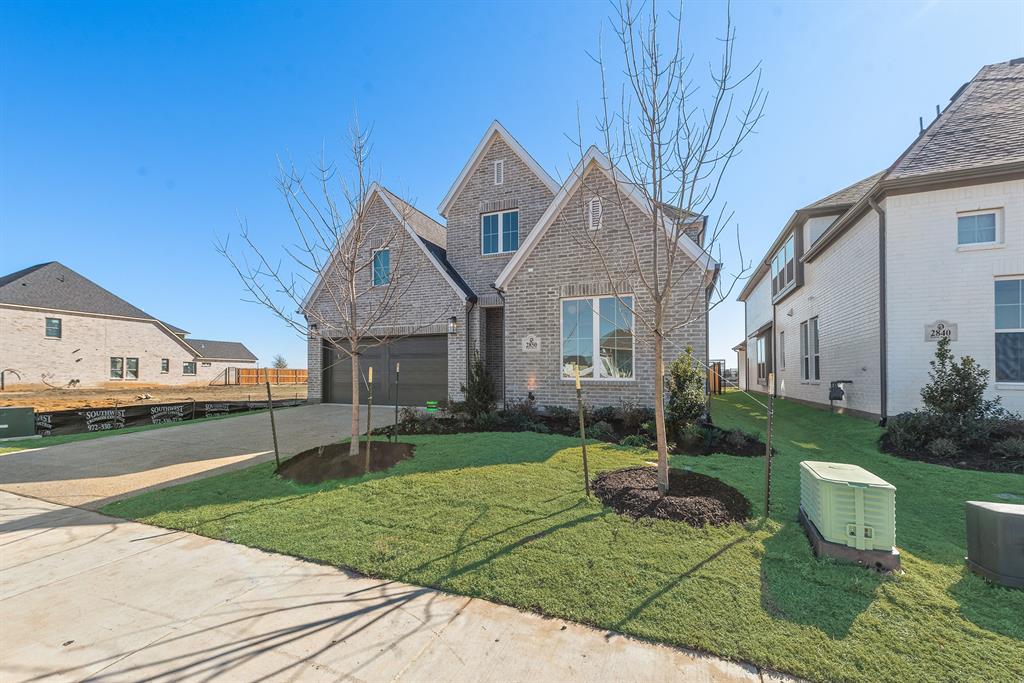 Nestled in Prosper ISD, this stunning north-facing, Shaddock home offers simple chic curb appeal with soft gray brick and buff mortar. Open-to-below ceilings throughout this home, a kitchen with space, space, and more space. Lovely owners suite, fully private with a relaxing garden tub and spacious shower. Pre-wired media up. North-facing for energy efficiency and the best vibes, large back yard bordering greenspace maintained by HOA. Experience elegance and convenience in this sought-after Prosper community! Book a showing today!