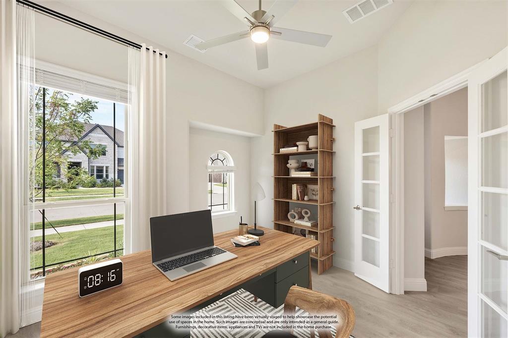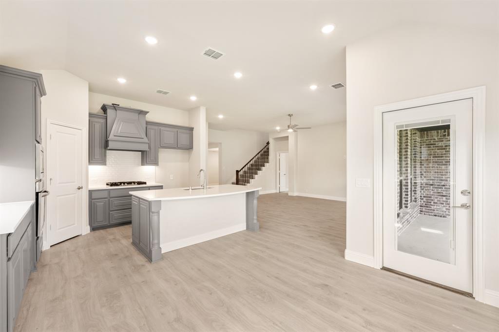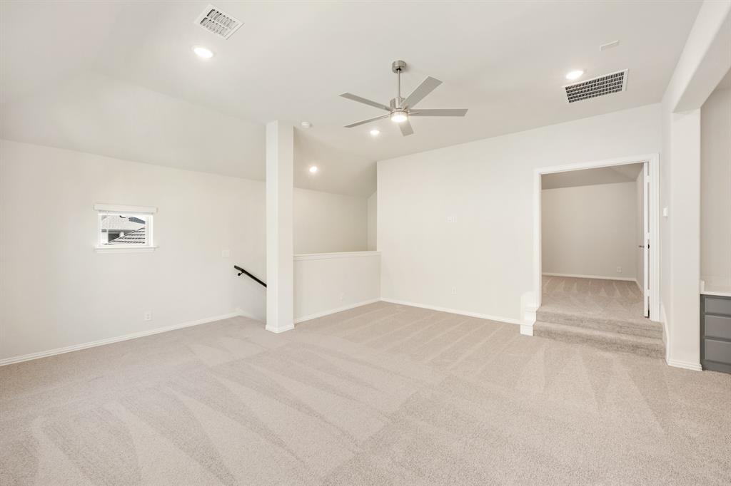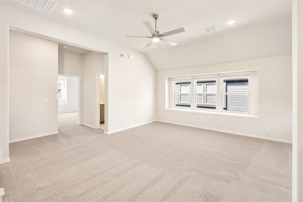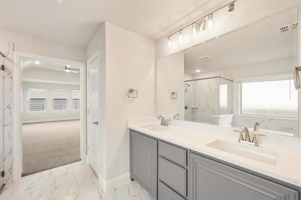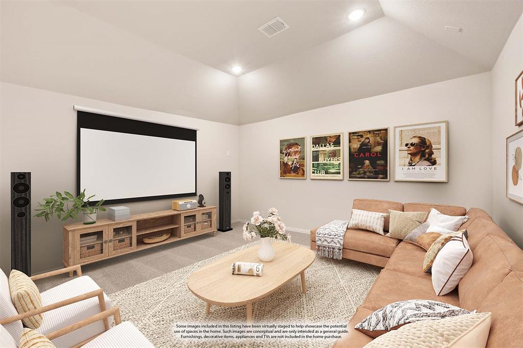 NEW! NEVER LIVED IN & READY for Move-In NOW! Prepare to be impressed by this Carolina IV plan, featuring a striking brick and stone exterior highlighted by exterior lighting and an elegant 8' Front Door, all perfectly situated on a desirable south-facing interior lot. Inside, the open layout is packed with luxurious upgrades and thoughtful finishes. This home offers 4 bedrooms and 3 baths—3 located on the main floor and a private 4th bedroom upstairs—designed to provide comfort and versatility for families of all sizes. The Deluxe Kitchen is equipped for all entertaining needs, showcasing exquisite cabinetry with Quartz counters, pot and pan drawers, built-in stainless steel appliances, a spacious island, and a walk-in pantry, with a coordinating buffet adding both charm and functionality. Enhancements abound throughout the home, including beautiful Laminate Wood floors, a tankless water heater for efficiency, and included 2-inch faux wood blinds that add privacy and polish. Dual Doors frame the private Study, and a built-in Tech Center upstairs complements the expansive Game and Media Rooms, creating an ideal balance of work and leisure. Outdoors, the Extended Covered Rear Patio with gas drop is ready for grilling, while full gutters help protect the exterior year-round. All of this within a vibrant master-planned community offering fitness facilities, scenic trails, pickleball courts, and more—this home truly delivers on both lifestyle and luxury.