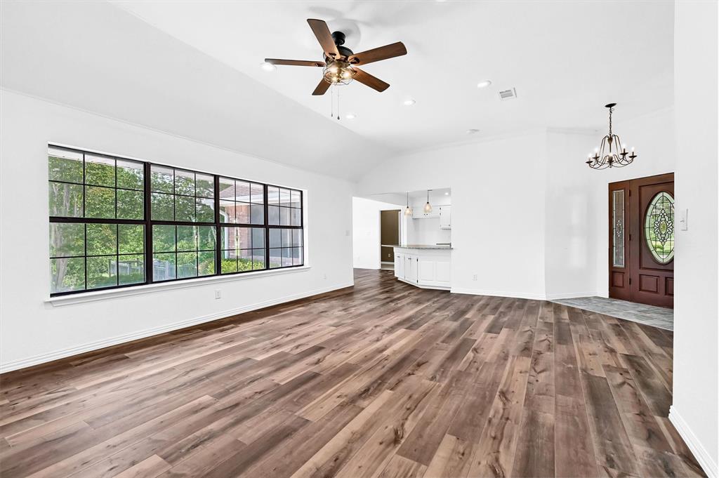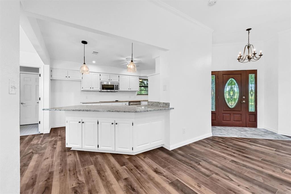 Discover serene country living in this beautifully updated 3-bedroom, 2-bath home nestled on 1.03 acres in a quiet, subdivision. Move-in ready, all the work has been done including fresh paint, designer lighting, updated bathrooms, and updated flooring throughout. This home blends modern style with timeless comfort. The open-concept living area features cathedral ceilings, a cozy fireplace, and a wall of windows that fill the space with natural light. The spacious kitchen is a chef’s dream, boasting granite countertops, updated stainless steel appliances—including a double oven, microwave, cooktop—plus a walk-in pantry, breakfast bar, and abundant counter space. Retreat to the oversized primary suite, complete with tray ceiling, a second fireplace, and atrium doors leading to a covered back porch—perfect for relaxing or entertaining. The luxurious ensuite bath offers a walk-in shower, dual sinks with granite counters, and a large walk-in closet. Enjoy peace, privacy, and room to breathe—without the restrictions of an HOA. This home offers the best of both worlds: modern updates and tranquil country charm.