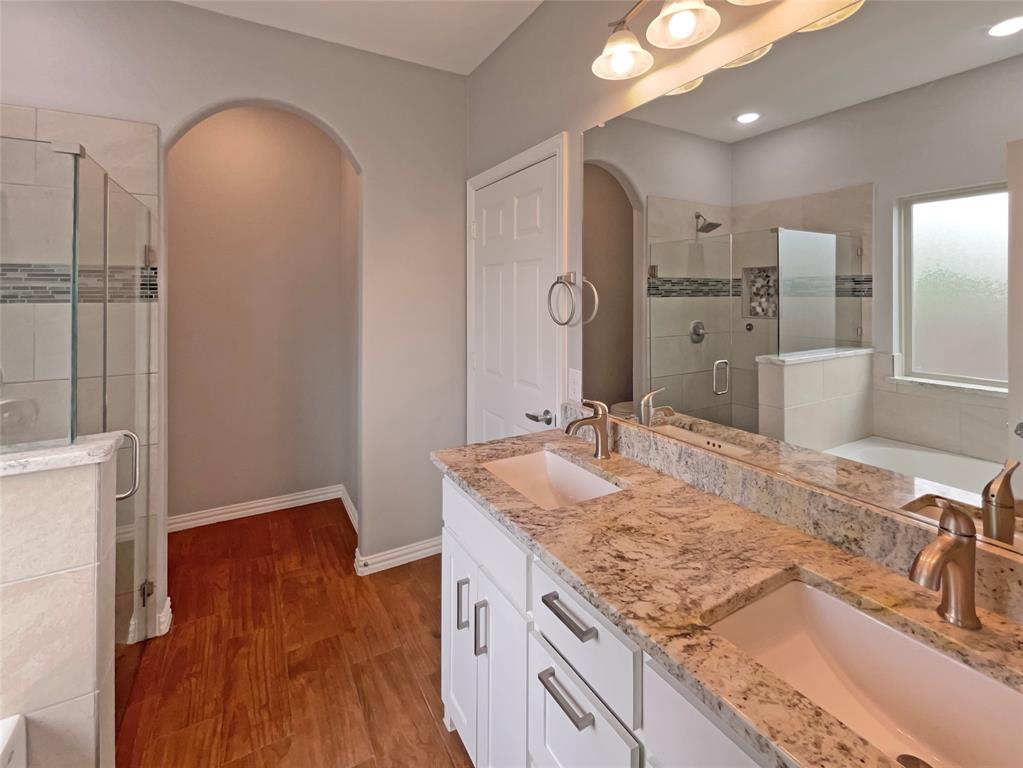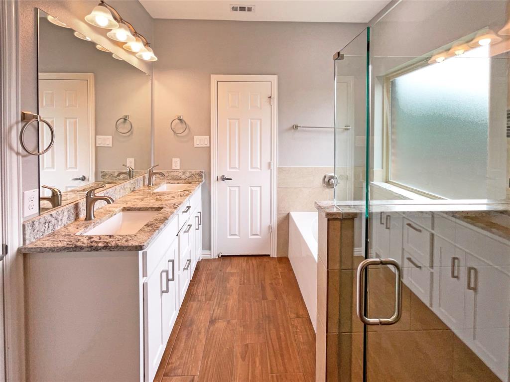 Welcome home! Easily flow from room to room with this great floor plan. You'll love cooking in this kitchen, complete with a spacious center island and a sleek backsplash. The primary bathroom is fully equipped with a separate tub and shower, double sinks, and plenty of under sink storage. Take it easy in the fenced in back yard. The covered sitting area makes it great for BBQs! Don't wait! Make this beautiful home yours.