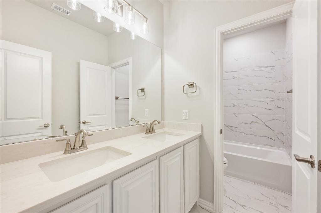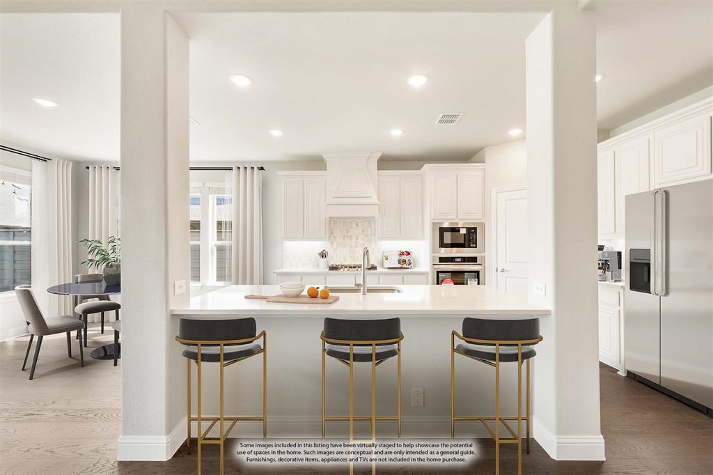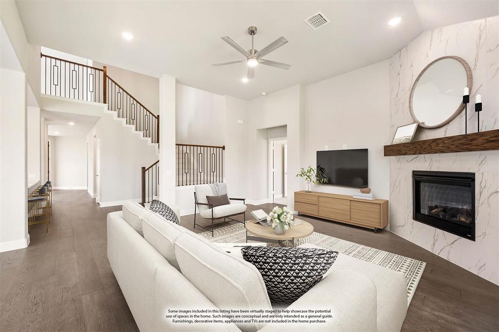 NEW! NEVER LIVED IN. Recently completed, Ready NOW! Bloomfield's Magnolia II is a stunning and thoughtfully designed two-story home situated on a desirable oversized interior lot, blending beauty and functionality with exceptional craftsmanship. The 8' 3-Lite upgraded front door creates an elegant first impression, leading to an open-concept layout that’s equally suited for entertaining and everyday living. Enhanced by the Contemporary Package, the home features sleek silver hardware throughout, with modern metal railing replacing the traditional half wall upstairs for a more refined touch. The Gourmet Deluxe Kitchen shines with under-cabinet lighting, Charleston Pure White cabinets, a trash pull-out, and an oven and microwave cabinet paired with a cooktop—thoughtful details that complement the generous Quartz countertops, pot and pan drawers, and custom wood vent hood. A Tile-to-Ceiling direct vent Fireplace serves as a sophisticated centerpiece in the inclusive Family Room, while professionally landscaped grounds, uplights, and a classic brick porch elevate the home’s exterior. Inside, Escalara Wood floors and 2-inch faux wood blinds add warmth and comfort, while the Study has been smartly converted into a fourth bedroom with a full shower added to the Powder Bath for added flexibility. Designed with convenience in mind, this home includes full gutters, a tankless water heater, and a gas drop at the patio for seamless outdoor living. With two distinct outdoor spaces and an expansive oversized lot, this home is the perfect blend of elegance and livability. Contact Bloomfield at Union Park for more details!