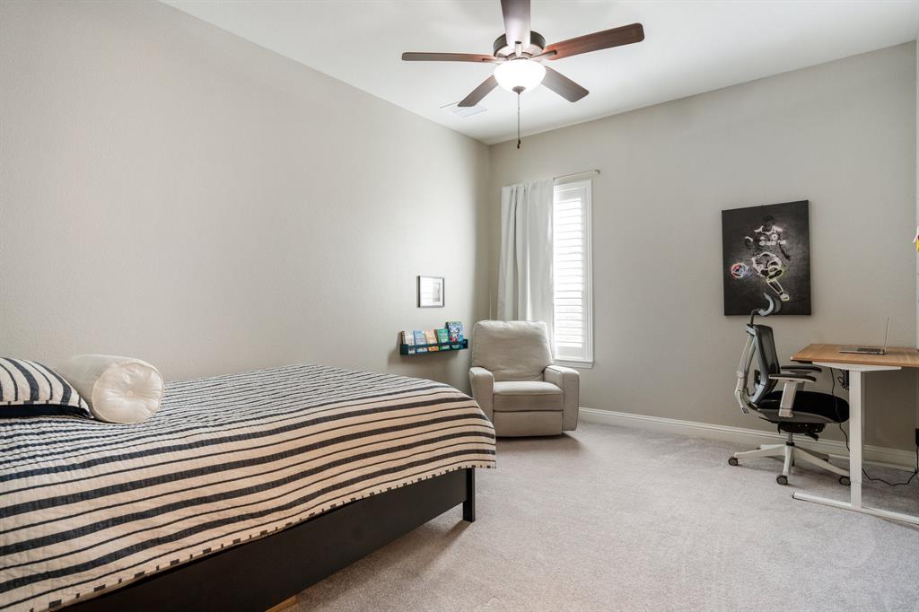 Why wait for new construction when you can have it all now? This exquisite home by Drees Custom Homes is perfectly situated on a peaceful pond-adjacent lot, offering tranquil views and elevated privacy. Inside, you’ll find 4 spacious bedrooms with 2 on the first floor for your guests or mother in law with an ensuite, 4.5 baths, and soaring ceilings in the living and dining areas that flood the home with natural light. A guest suite with en-suite bath downstairs is perfect for multigenerational living, an older child, or a private retreat for guests. Thoughtfully upgraded throughout, the home boasts epoxy floors in both garages (including a separate carriage garage for a golf cart), Elfa custom storage systems, plantation shutters, and motorized shades in the primary suite. Enjoy true indoor-outdoor living with a pocket sliding back door that opens to a covered patio featuring motorized privacy screens and custom shades—ideal for relaxing or entertaining in style. Additional features include a media room and a spacious game room that offers flexible additional living space, custom barn doors, a built-in sound system in the kitchen and patio, and a laundry room with custom cabinetry and sink. The entire home is secured with a comprehensive system on all windows and doors. Move-in ready and loaded with luxury—this home offers the style, space, and convenience you've been searching for. Welcome to your dream home.