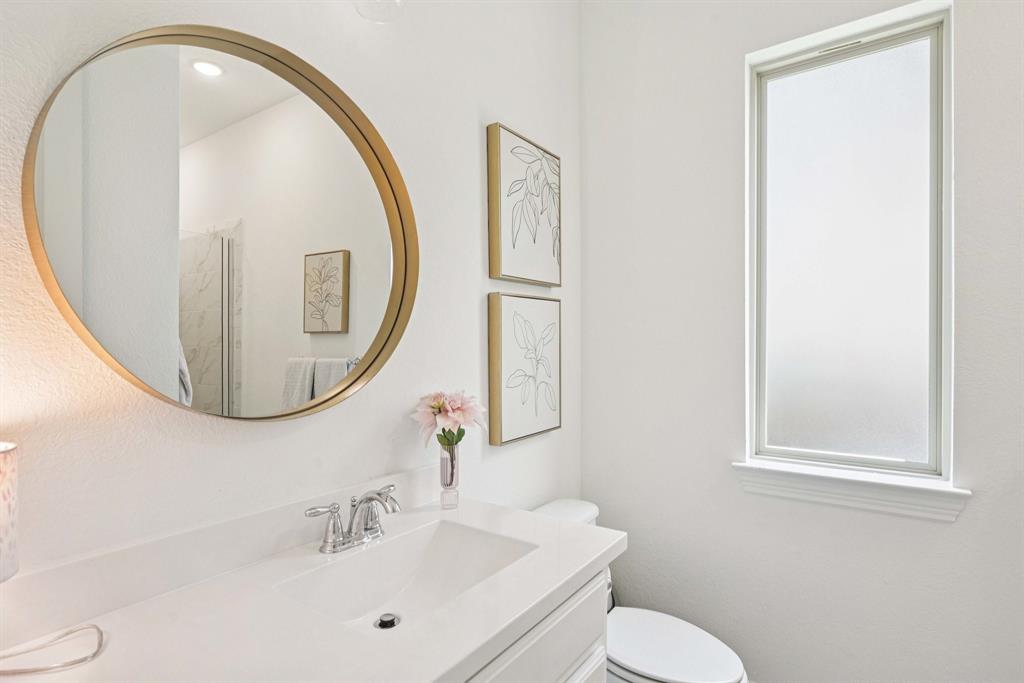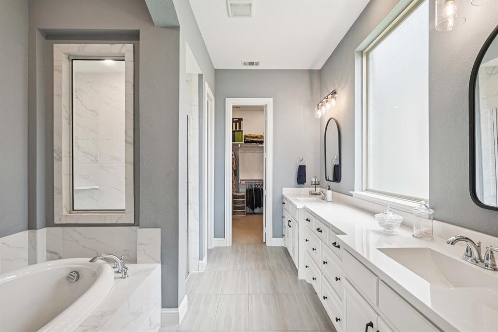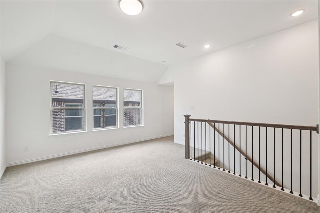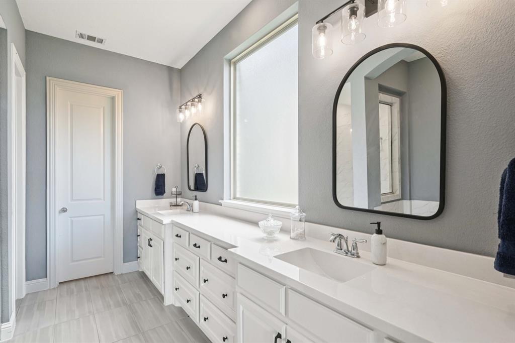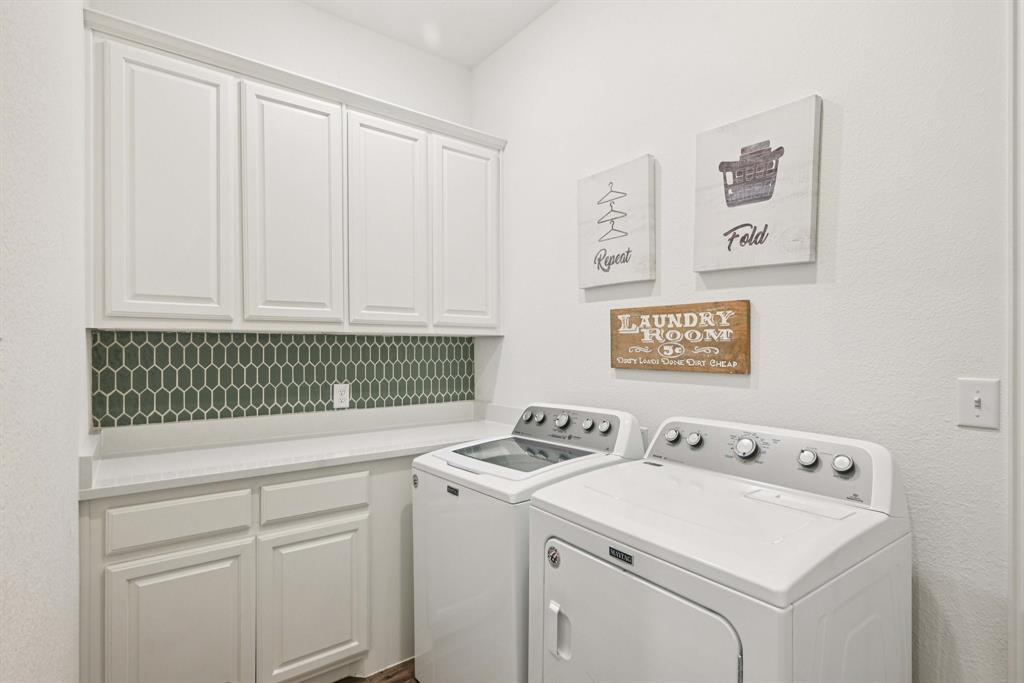 The large laundry room connects directly to the primary suite closet for daily ease. Enjoy high-end touches throughout: USB outlets in every room, outlets in the primary closet, pantry, and hall closet, and features great upper and lower cabinets. The downstairs has 2 primary suites, media room, office, a secondary bedroom with ensuite, and a half bath. The upstairs features a bedroom, full bath, loft or game room, and linen closet—perfect for a teen retreat or private guest quarters. The backyard has ample space for a playset or add a pool.