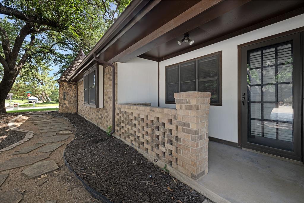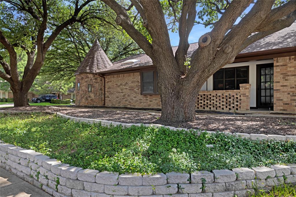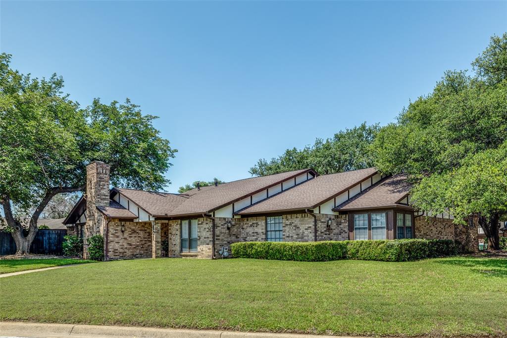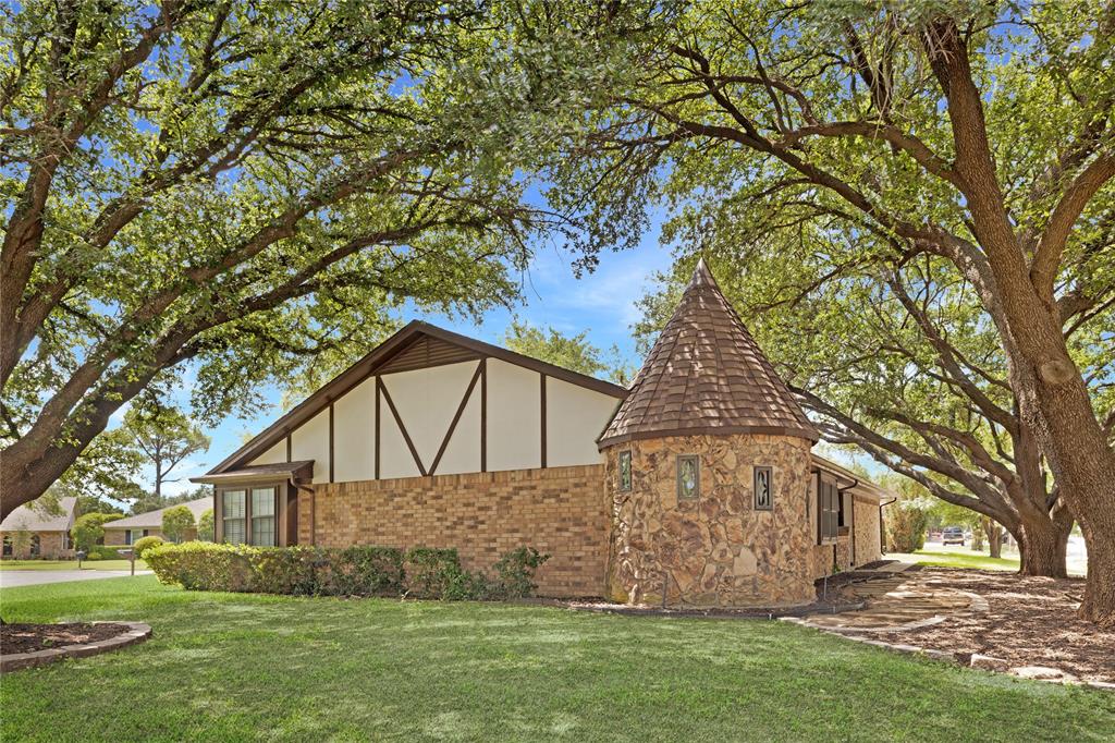 Nestled on a lush corner lot, this beauty offers both vintage character and modern updates. Note the exterior elevation and architectural design on the roofline! As you enter this custom home, Terrazo floors and luxury vinyl plank greet you. Soaring cathedral ceilings in the grand living area add to the ambiance and grand feel. Enjoy a Wood burning Fireplace and corner Wetbar. Plenty of room for additional sitting areas, piano or bar tables. French doors lead out to the covered patio where listening to the ponds soothing trickling water can be found. A formal dining with updated lighting is across the foyer. Plantation Shutters adorn all the windows! The Kitchen boasts ample cabinet space, an island and updated counters and backsplash. Double oven in 2024 and Dishwasher and Microwave in 2025. An eat in breakfast area adjoins and offers access to a quaint covered patio in the shade of trees. A walk in pantry offers great storage as does the utility room with cabinetry and sink. The Large Owners Suite has room for reading or desk area and boasts a huge bath. The Focal point being the custom round tub surrounded by stained glass windows. Truly a one of a kind feature! Walk in Closets and separate Shower plus double vanities make this ensuite bath one to enjoy. Two other bedrooms boast walk in closets as well! A hall bath has been beautifully renovated. Enjoy the landscaped grounds as you meander down the decorative sidewalk. Rear entry garage with extra parking. This home has been lovingly maintained. All light fixtures and ceiling fans updated in 2025. Premium AC Duct Cleaning and Sanitized in 2024 with installation of UV germicide Light. Interior painted throughout. Plush carpeting and Owners Suite Tile installed in 2025. Pond pump, filter, UV lamp and light replaced in 2025. So many wonderful attributes. Great location with access to 183, DFW Airport and Dining-Shopping. HEB School District is sought after! A Must See for those seeking Character and Quality