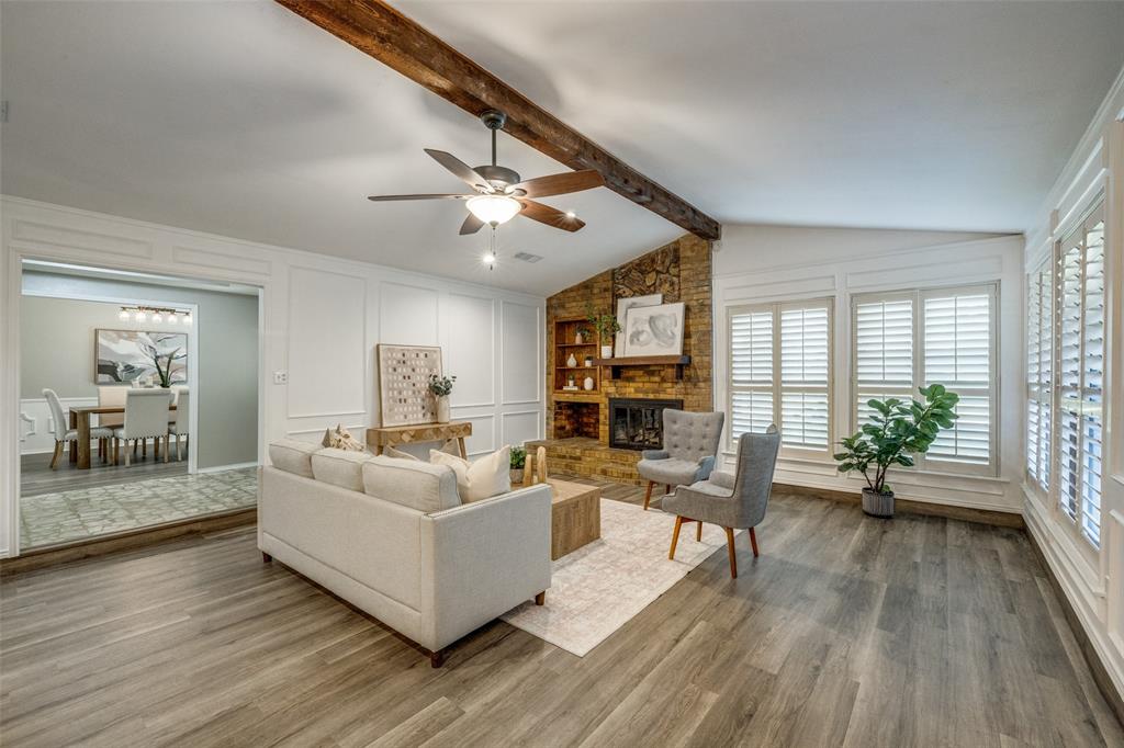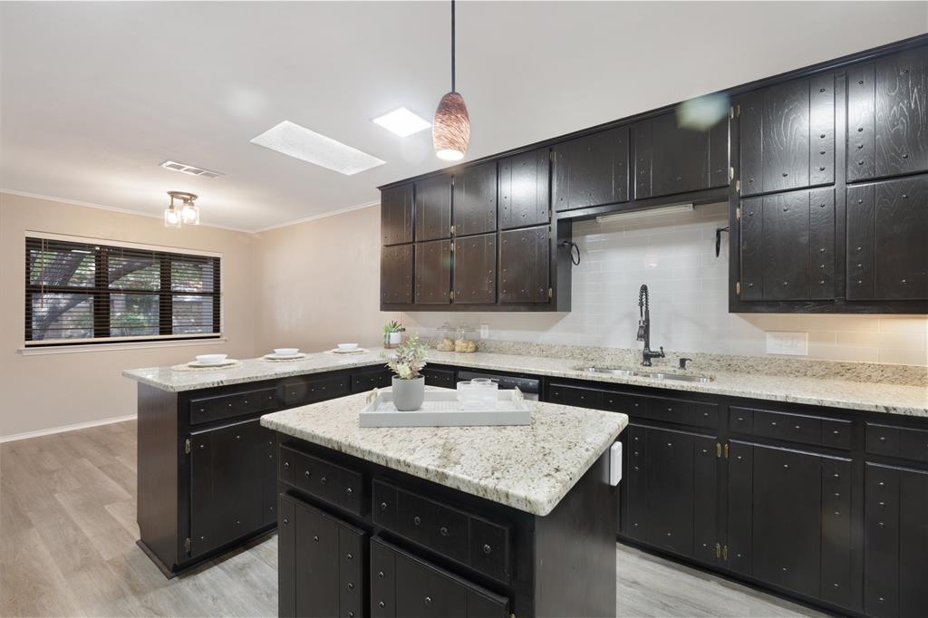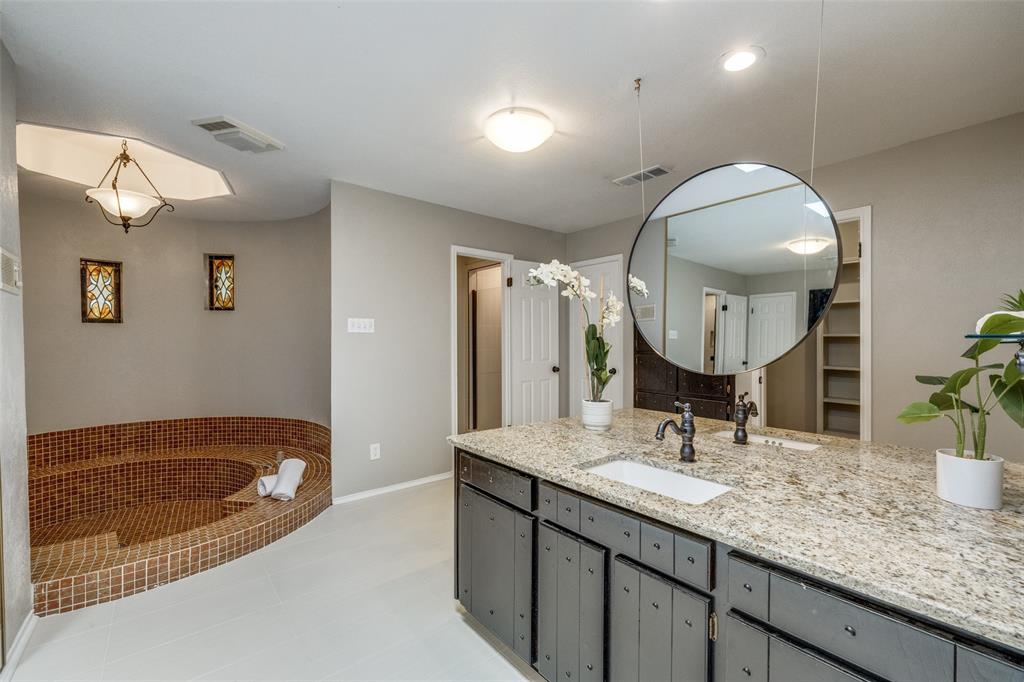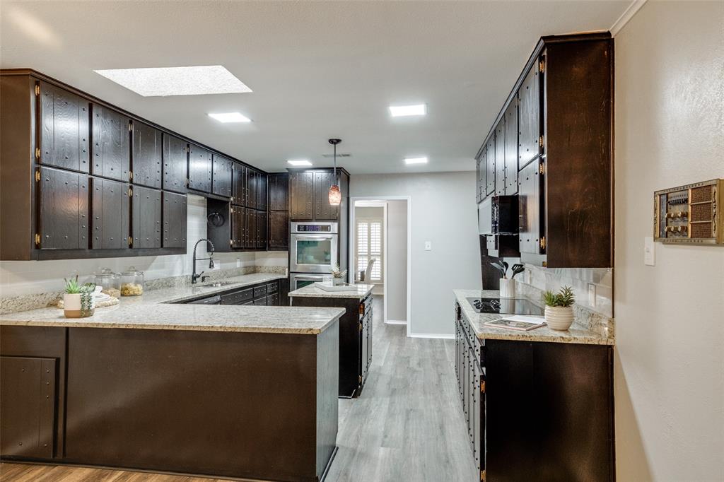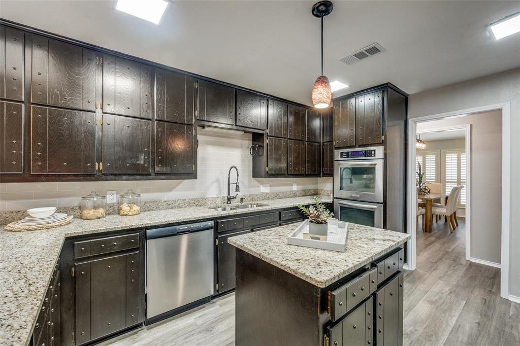 Nestled on a lush corner lot, this beauty offers both vintage character and modern updates. Note the exterior elevation and architectural design on the roofline! As you enter this custom home, Terrazo floors and luxury vinyl plank greet you. Soaring cathedral ceilings in the grand living area add to the ambiance and grand feel. Enjoy a Wood burning Fireplace and corner Wetbar. Plenty of room for additional sitting areas, piano or bar tables. French doors lead out to the covered patio where listening to the ponds soothing trickling water can be found. A formal dining with updated lighting is across the foyer. Plantation Shutters adorn all the windows! The Kitchen boasts ample cabinet space, an island and updated counters and backsplash. Double oven in 2024 and Dishwasher and Microwave in 2025. An eat in breakfast area adjoins and offers access to a quaint covered patio in the shade of trees. A walk in pantry offers great storage as does the utility room with cabinetry and sink. The Large Owners Suite has room for reading or desk area and boasts a huge bath. The Focal point being the custom round tub surrounded by stained glass windows. Truly a one of a kind feature! Walk in Closets and separate Shower plus double vanities make this ensuite bath one to enjoy. Two other bedrooms boast walk in closets as well! A hall bath has been beautifully renovated. Enjoy the landscaped grounds as you meander down the decorative sidewalk. Rear entry garage with extra parking. This home has been lovingly maintained. All light fixtures and ceiling fans updated in 2025. Premium AC Duct Cleaning and Sanitized in 2024 with installation of UV germicide Light. Interior painted throughout. Plush carpeting and Owners Suite Tile installed in 2025. Pond pump, filter, UV lamp and light replaced in 2025. So many wonderful attributes. Great location with access to 183, DFW Airport and Dining-Shopping. HEB School District is sought after! A Must See for those seeking Character and Quality