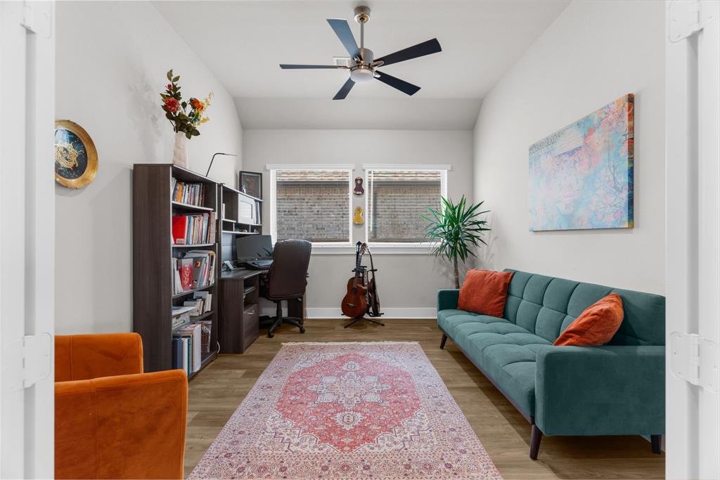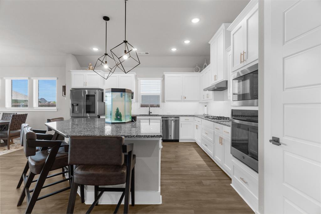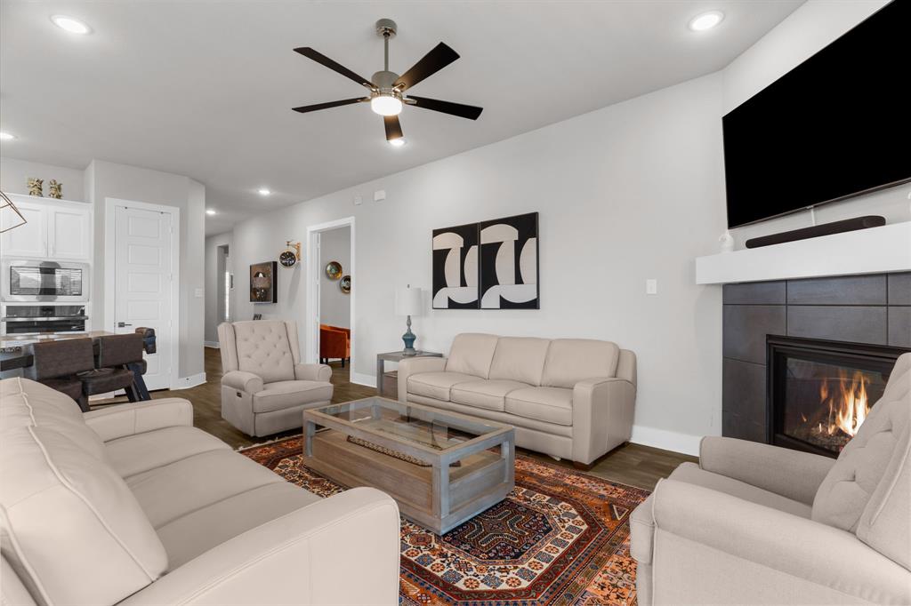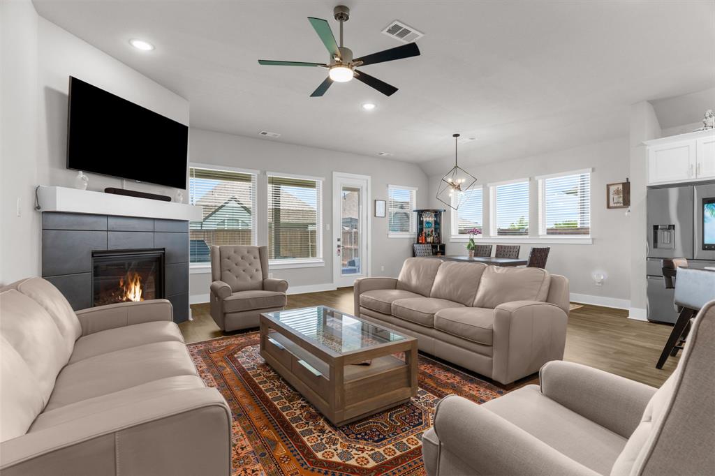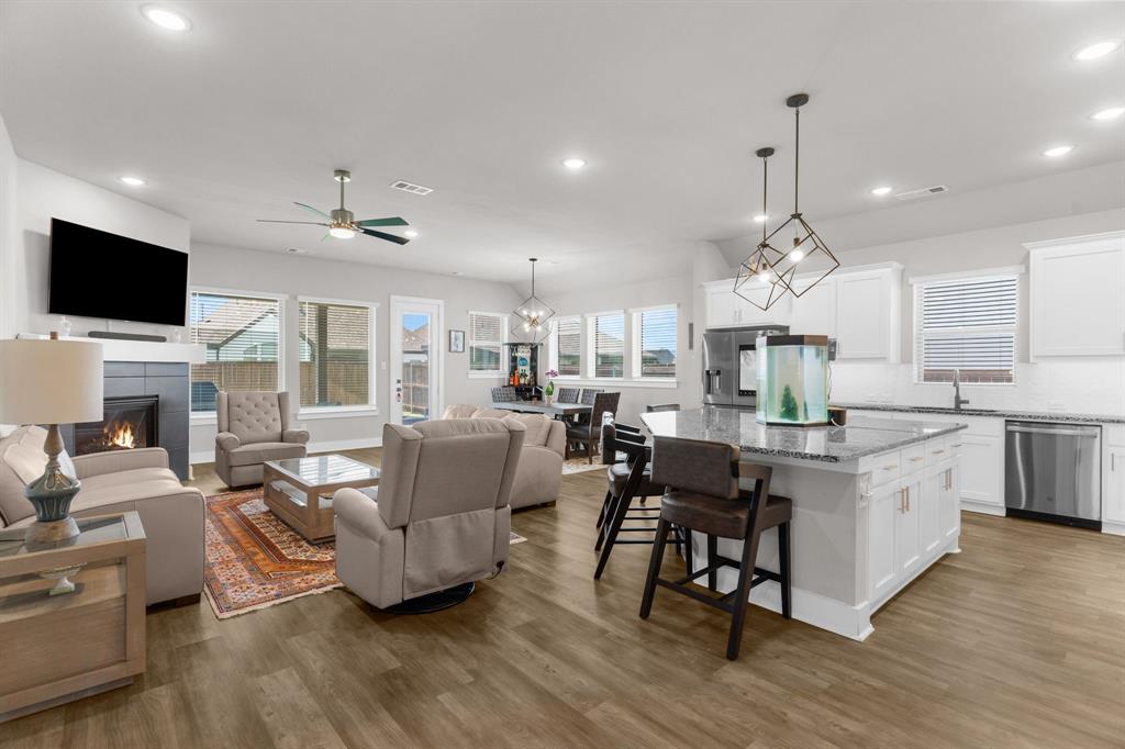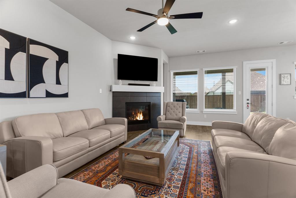 Roll out the red carpet—your dream home is ready for its close-up! This LIKE-NEW stunner shines with an OPEN FLOOR PLAN that's stylish & functional. The SPACIOUS LIVING ROOM is bathed in natural light thanks to an ABUNDANCE of WINDOWS & anchored by a cozy FIREPLACE perfect for movie nights or lazy Sundays. The kitchen has crisp WHITE CABINETS, GAS COOKTOP & an ISLAND that does double duty. You’ll appreciate the STORAGE below & plenty of SEATING up top for breakfast, homework or wine with friends. Enjoy a VERSATILE FLEX ROOM that adapts to your lifestyle! It’s ideal for entertaining or a DESIGNATED OFFICE! The primary suite is fit for a Hollywood star! It offers DUAL SINKS & a luxe WALK-IN SHOWER ! The COVERED PATIO & a BIG BACKYARD are begging for BBQs & playtime. The COMMUNITY AMENITIES are next level! Resort-style pool, splash pad, playground, fitness center, dog park, stocked fishing lakes & miles of walk & bike trails. Plus it’s a quick stroll to the elementary school! It’s everything you need for a vibrant, active lifestyle. Ready to say “That’s a wrap!” on your home search? Let’s get you in the door TODAY!